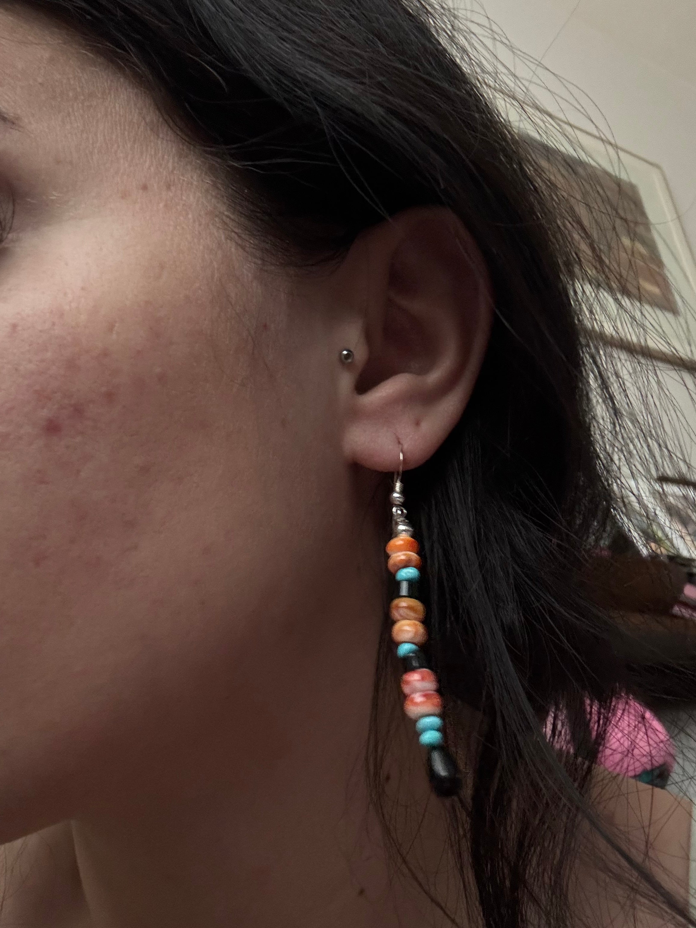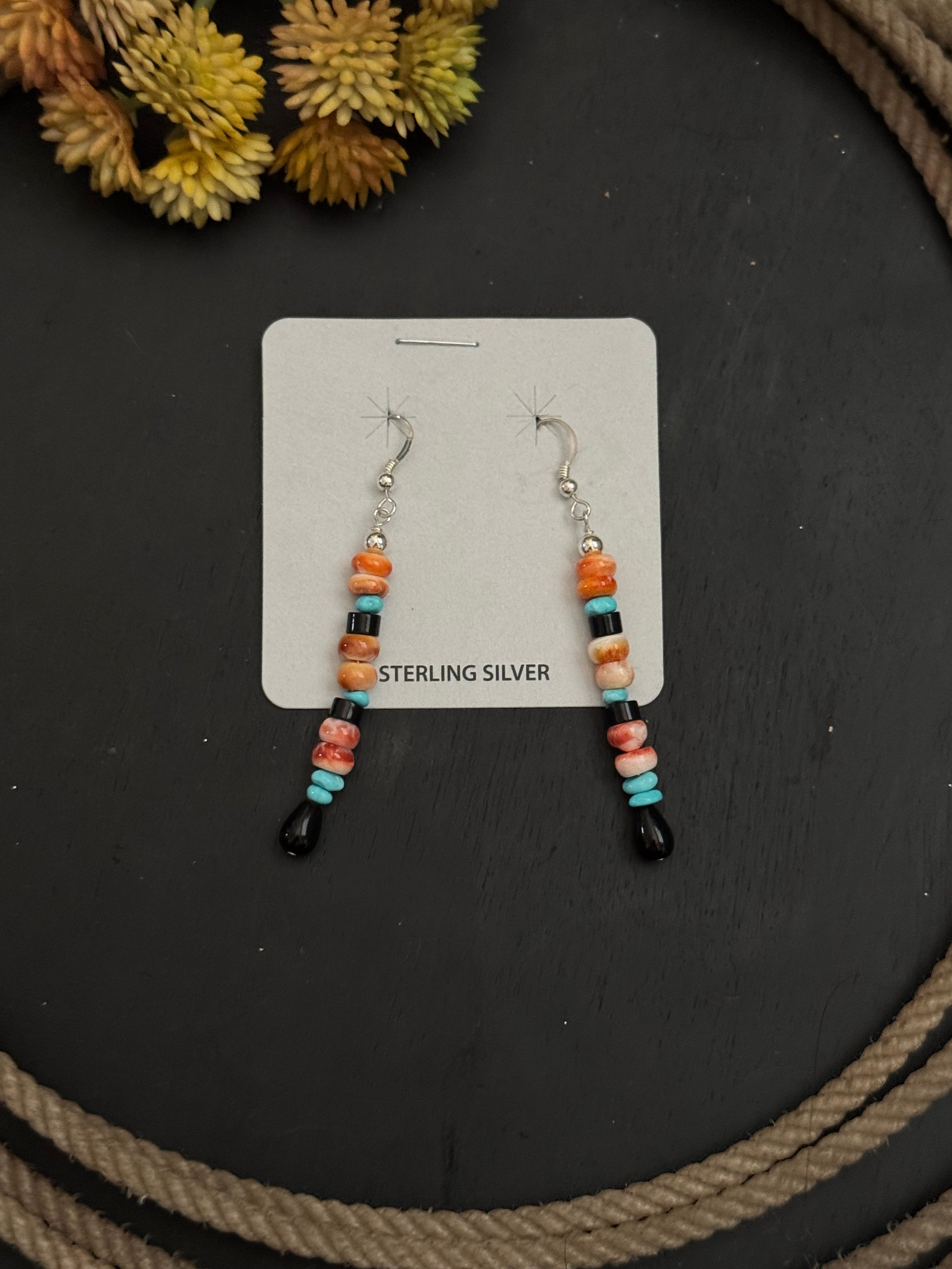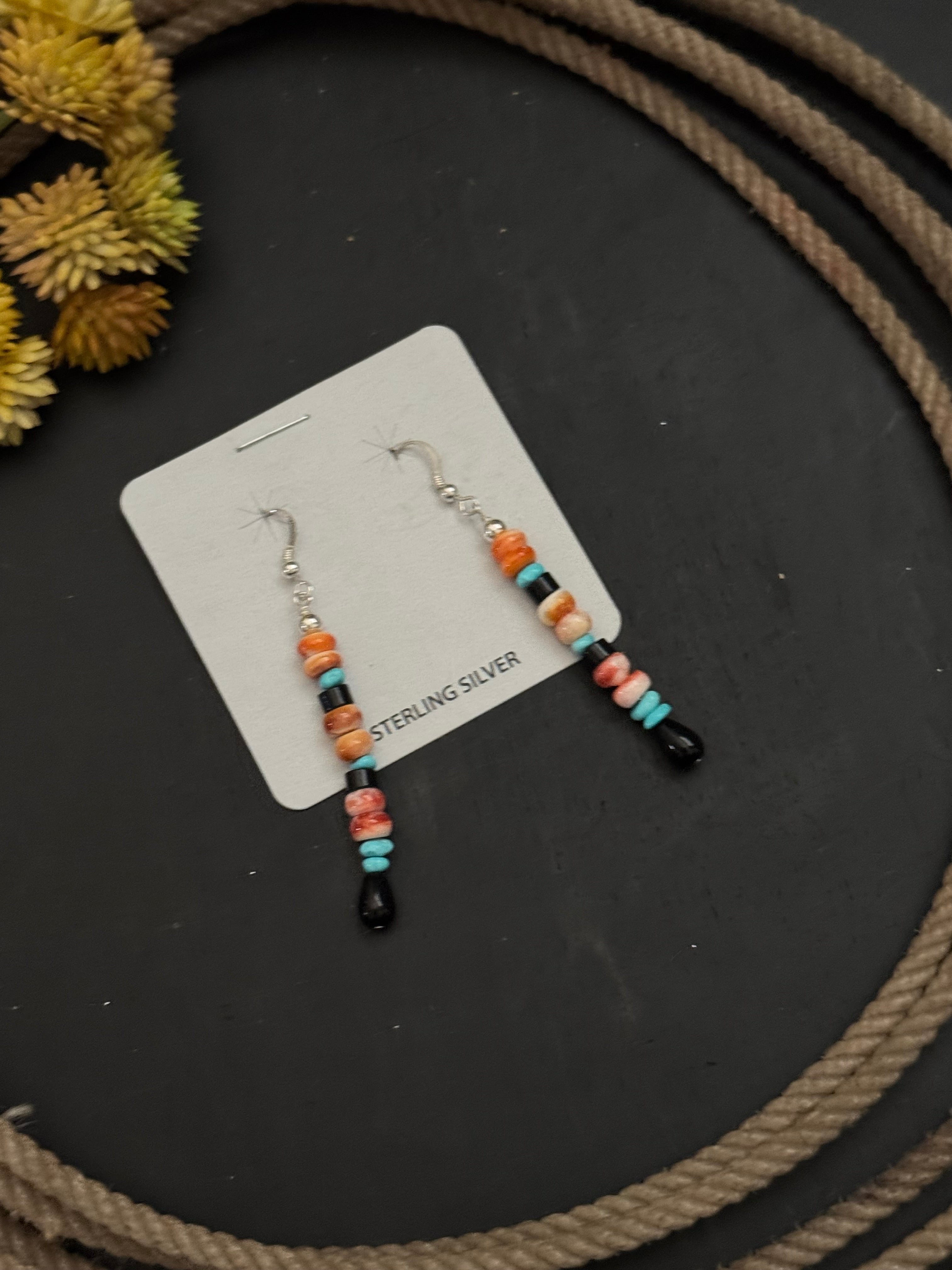 Navajo Strung Multi Stone & Sterling Silver Beaded Dangle Earrings