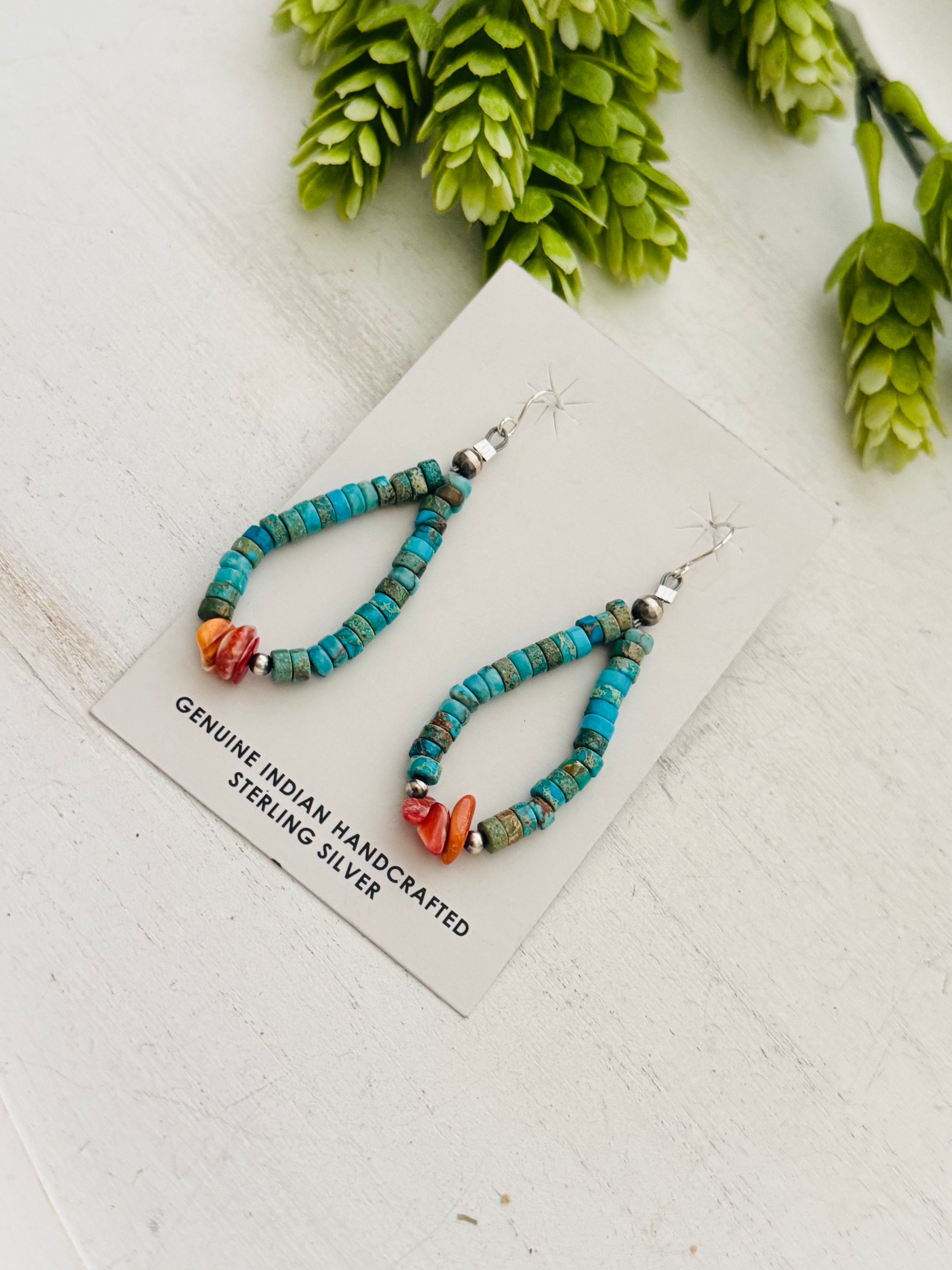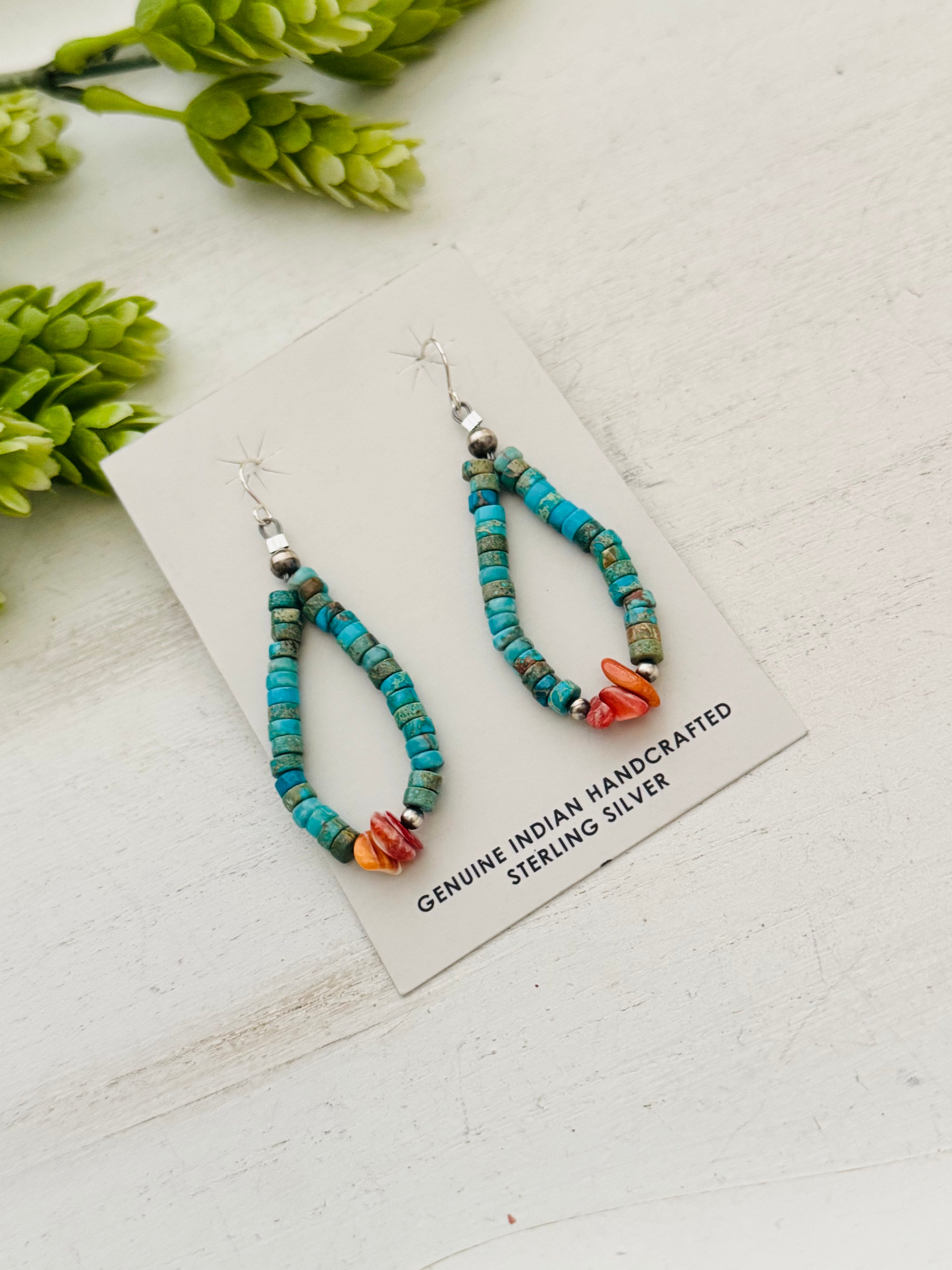 Navajo Strung Multi Stone & Sterling Silver Beaded Dangle Earrings