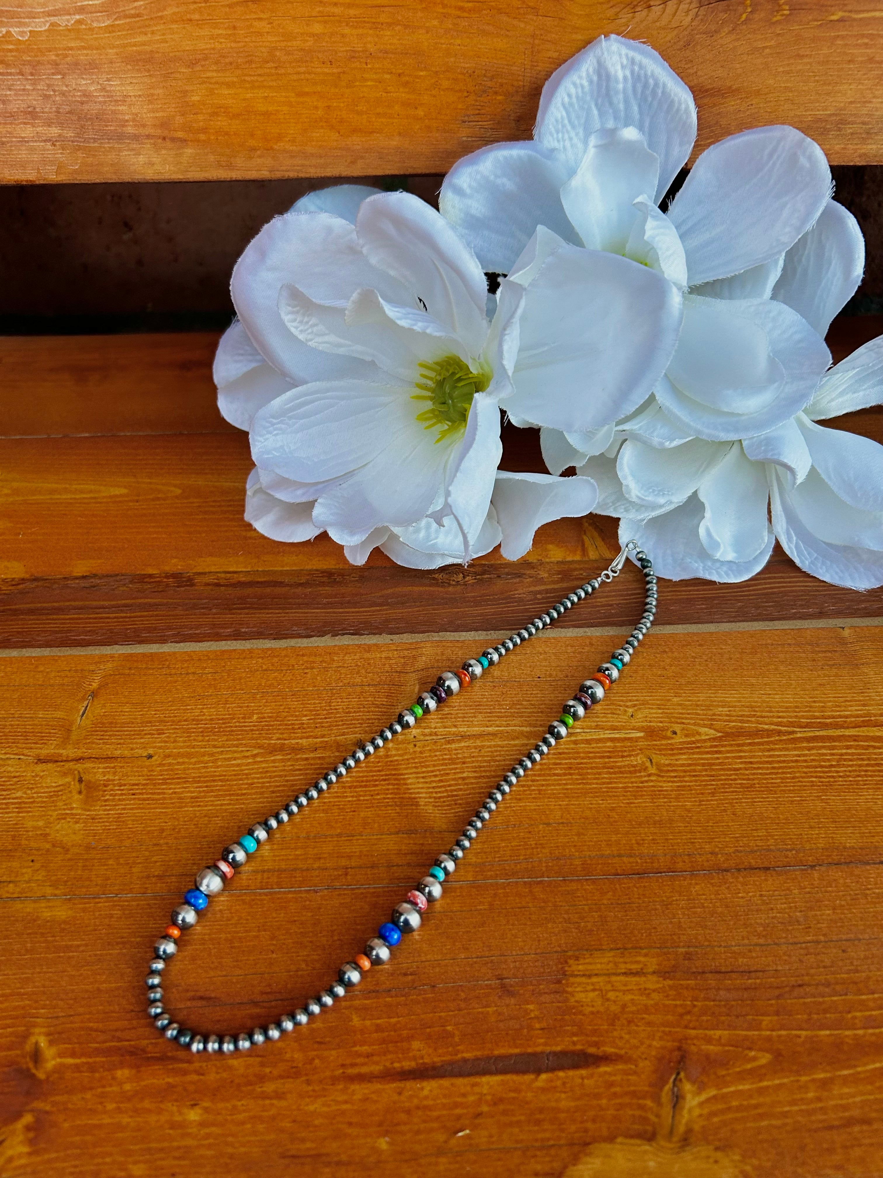 Navajo Strung Multi Stone & Sterling Silver Cluster Necklace