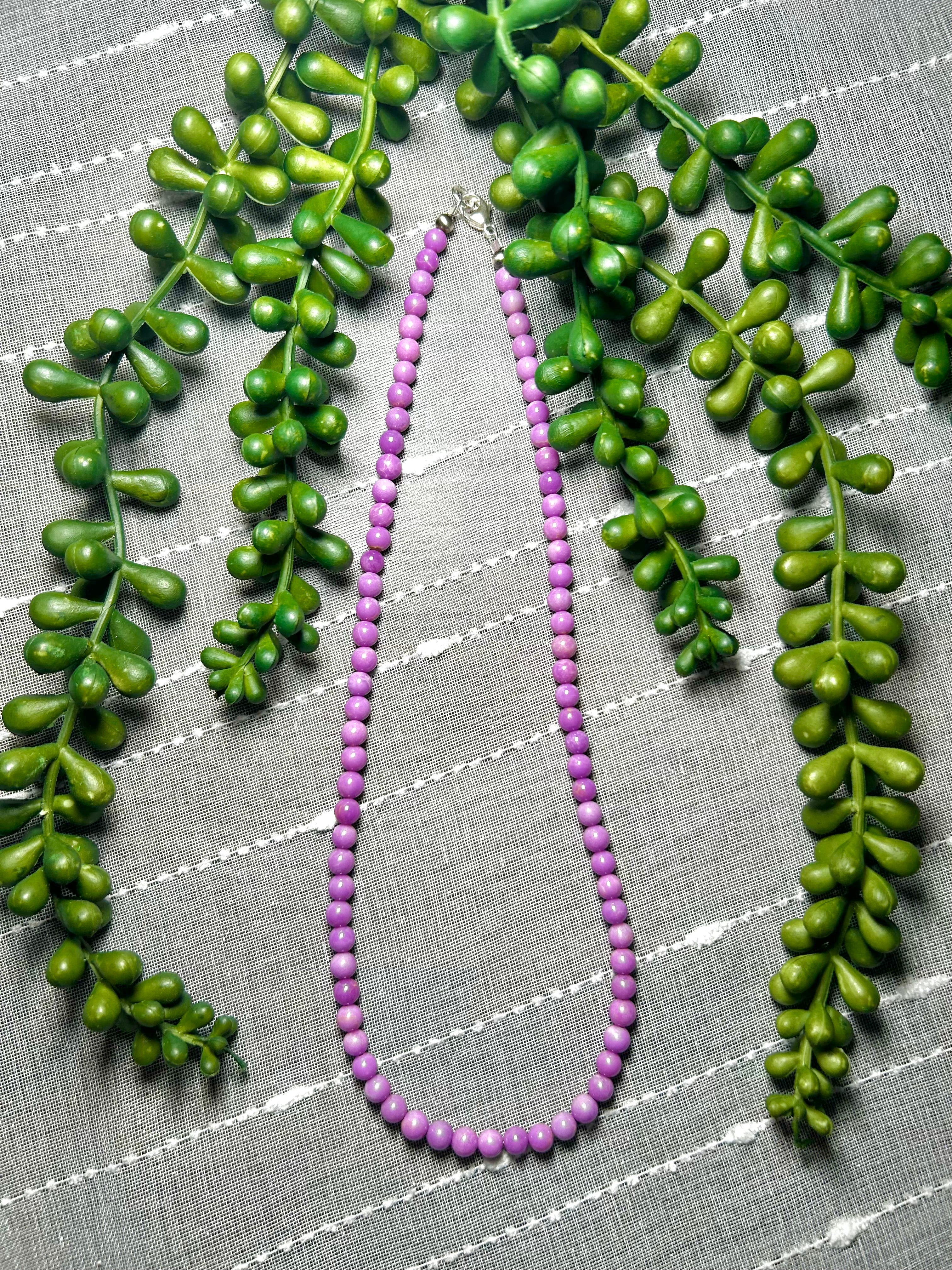 Navajo Strung Phosphosidenite & Sterling Silver Necklace. It measures 17 inches long.