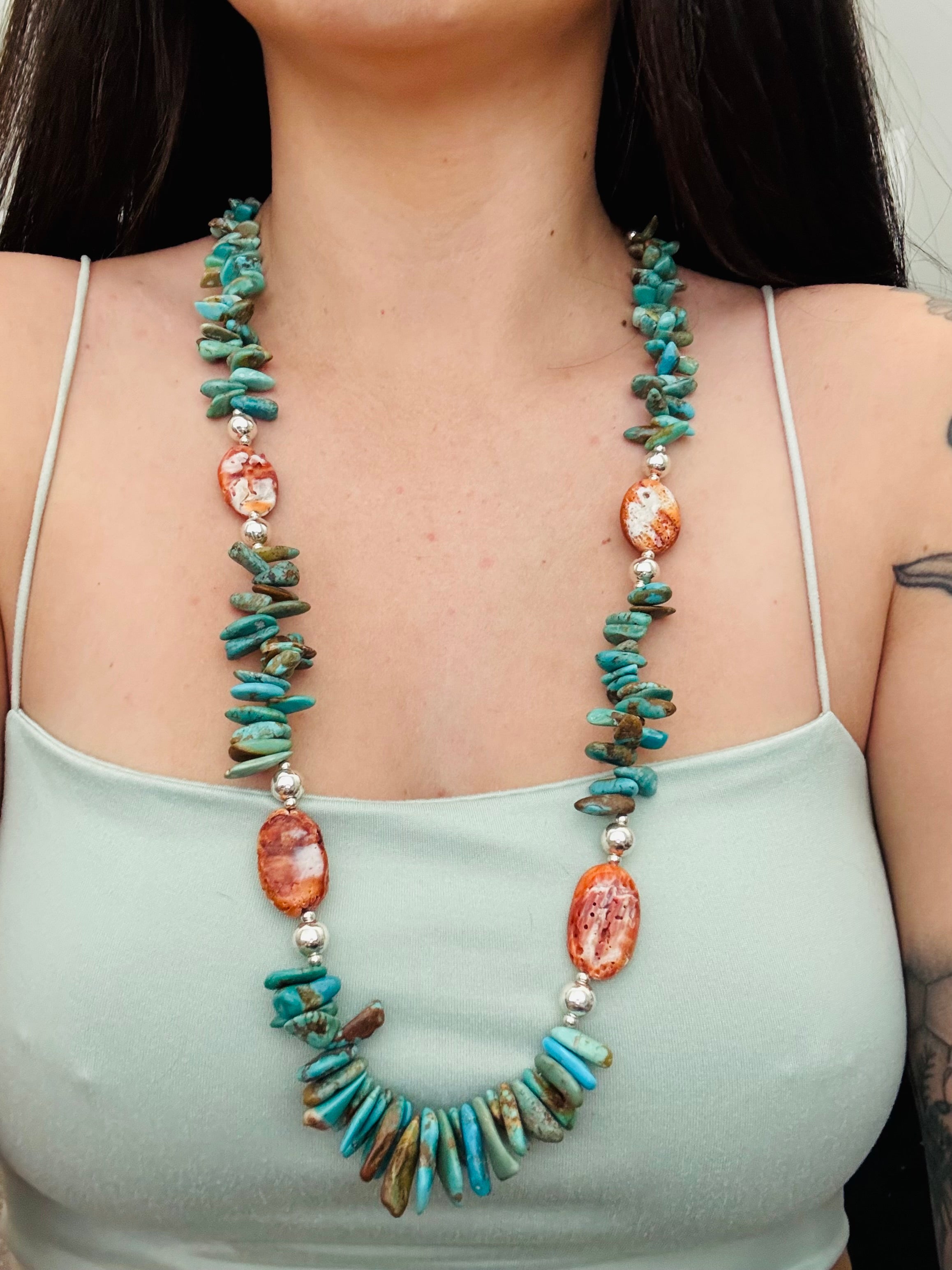 Santo Domingo Multi Stone & Sterling Silver Graduated Pearl Necklace. They measure 30 inches long. Single Stranded Necklace.