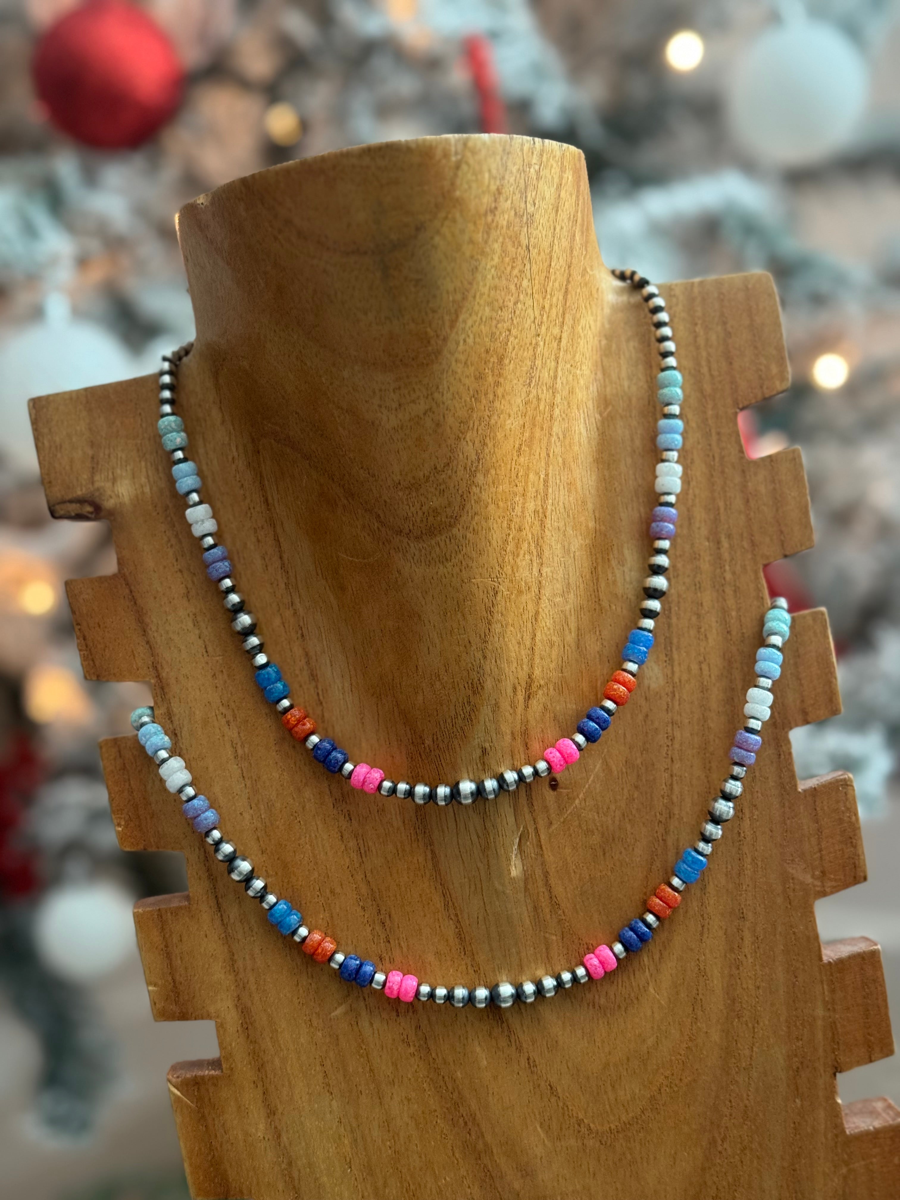 Navajo Strung Opal (Man Made) & Sterling Silver Beaded Pearl Necklace. It measures 16 inches long.