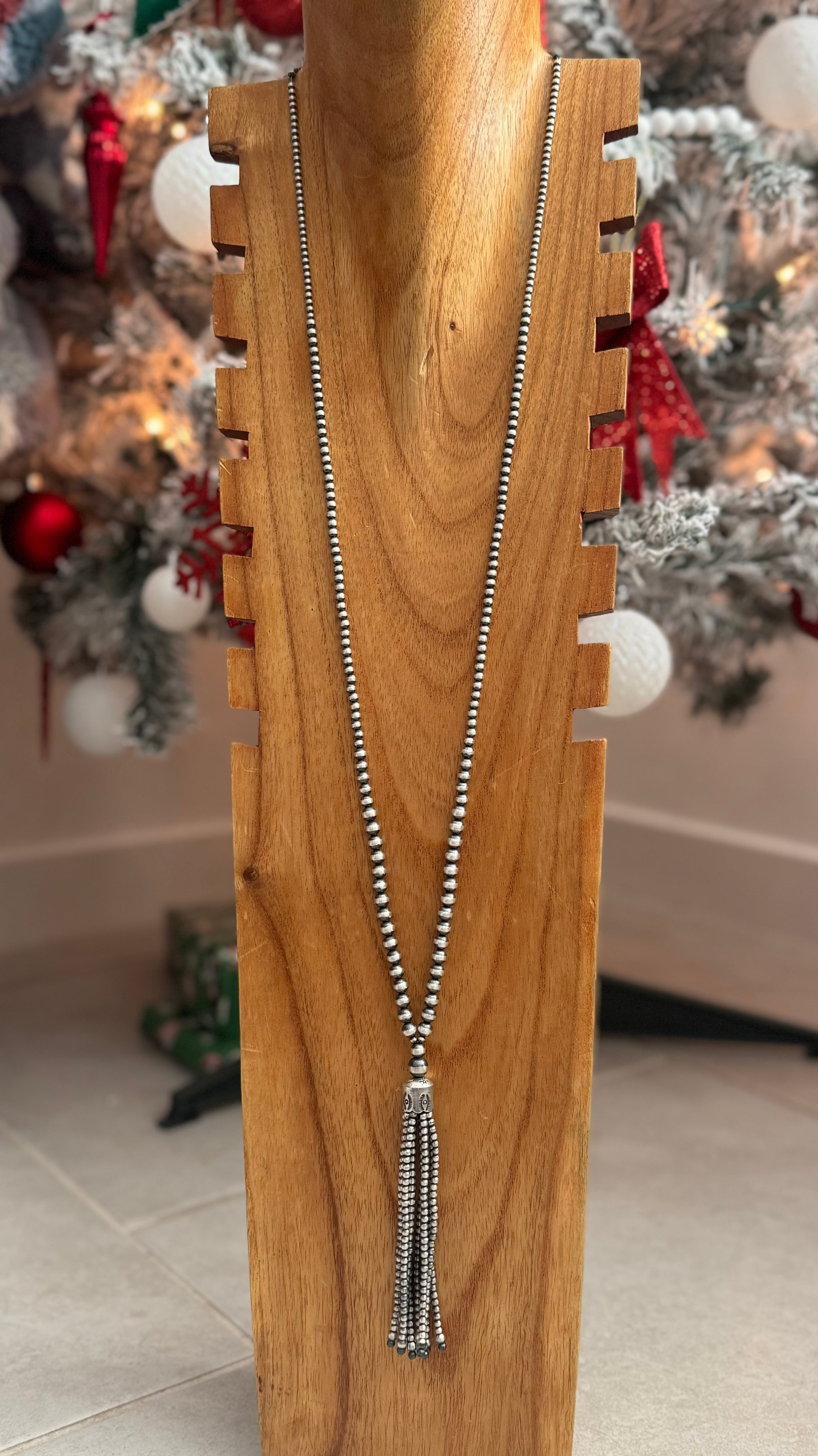 Navajo Strung Sterling Silver Graduated Beaded Pearl Necklace. It measures 37 inches long.
