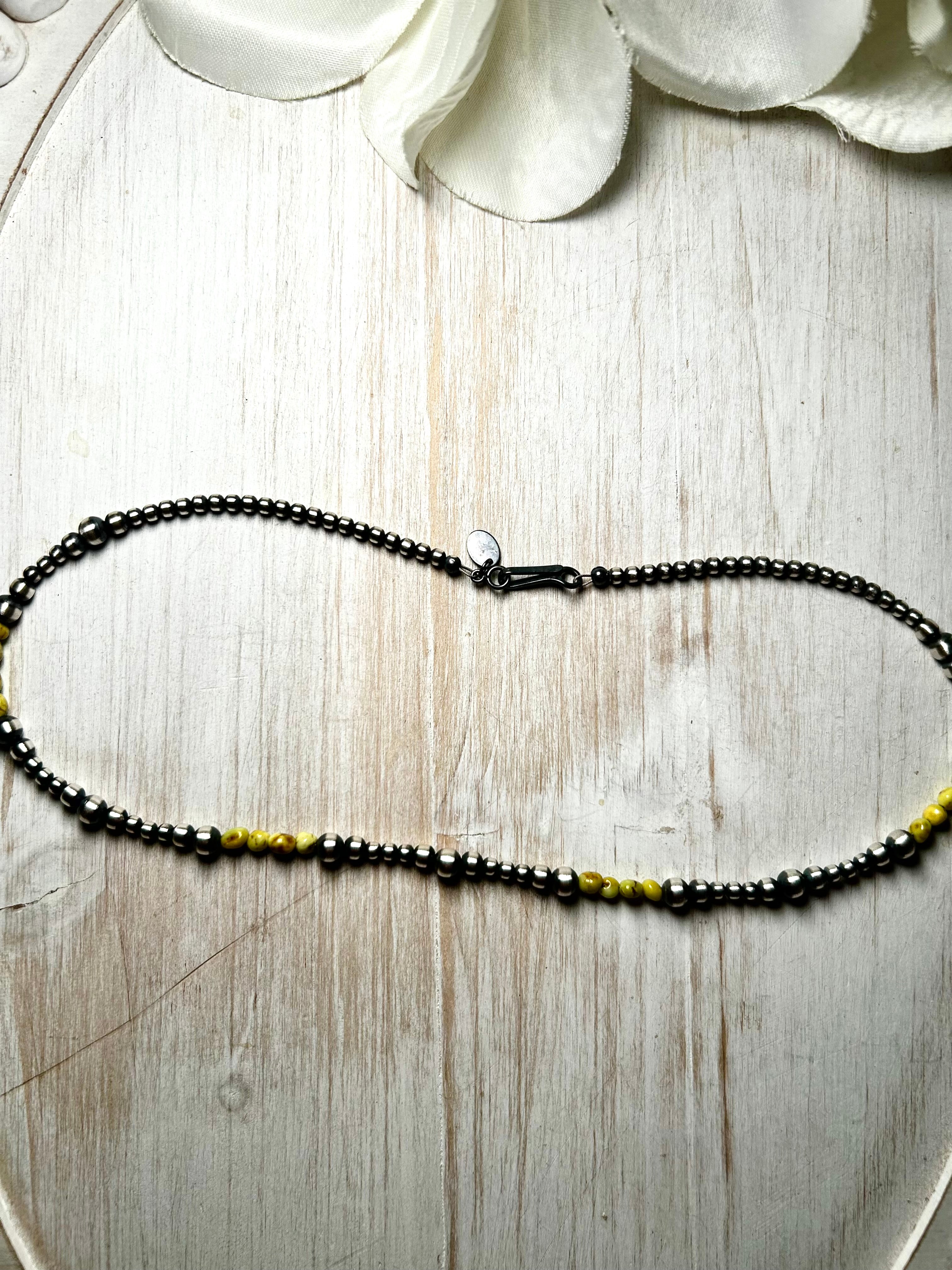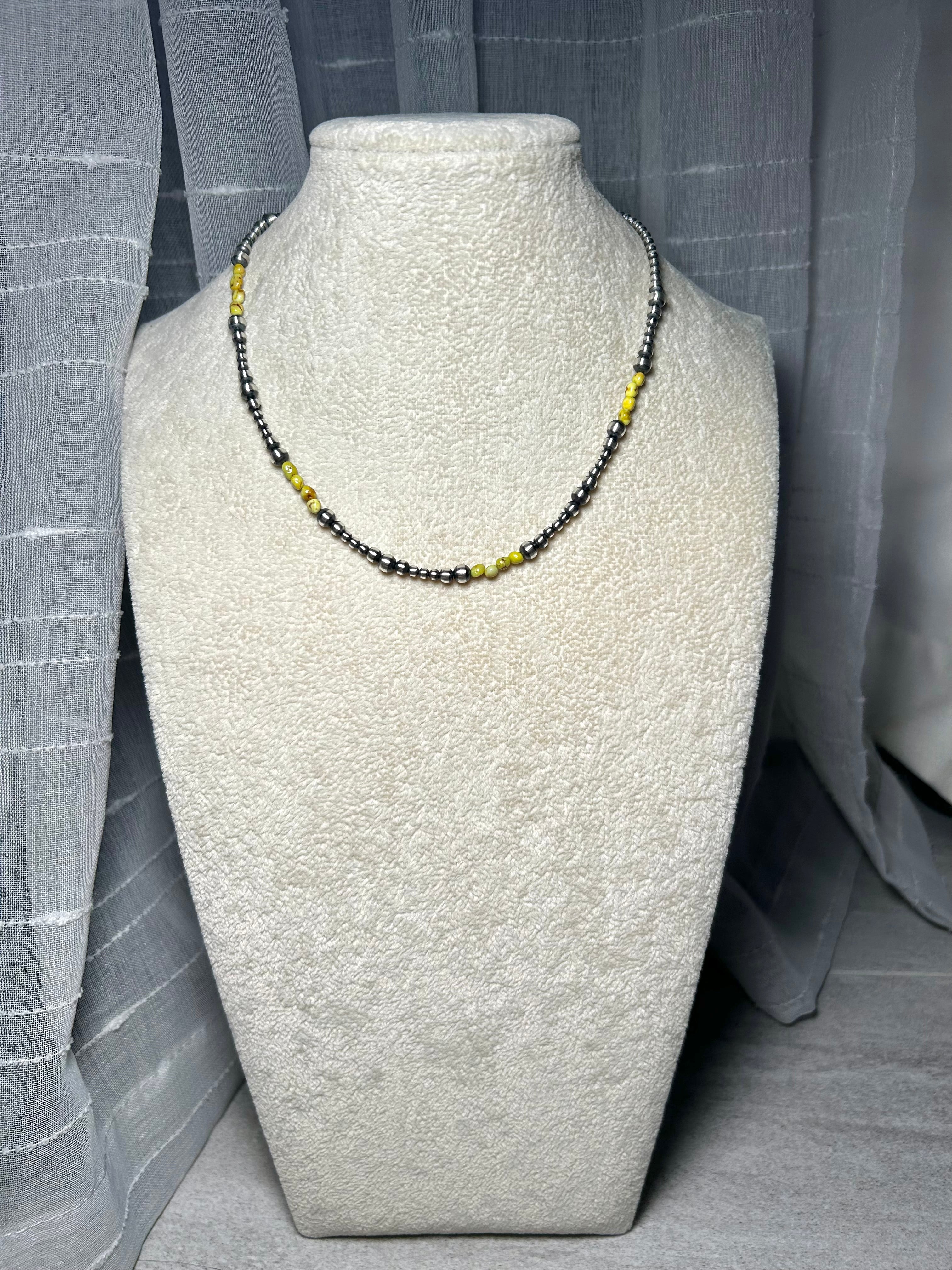 Navajo Strung Palomino Variscite & Sterling Silver Necklace
