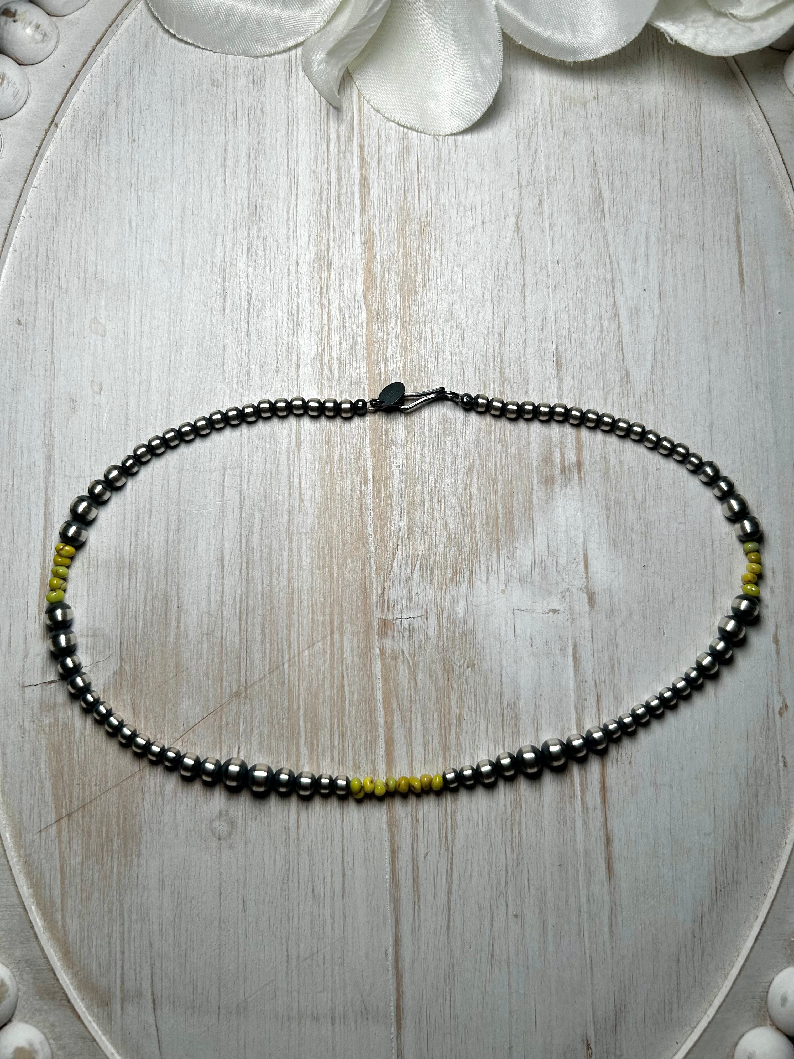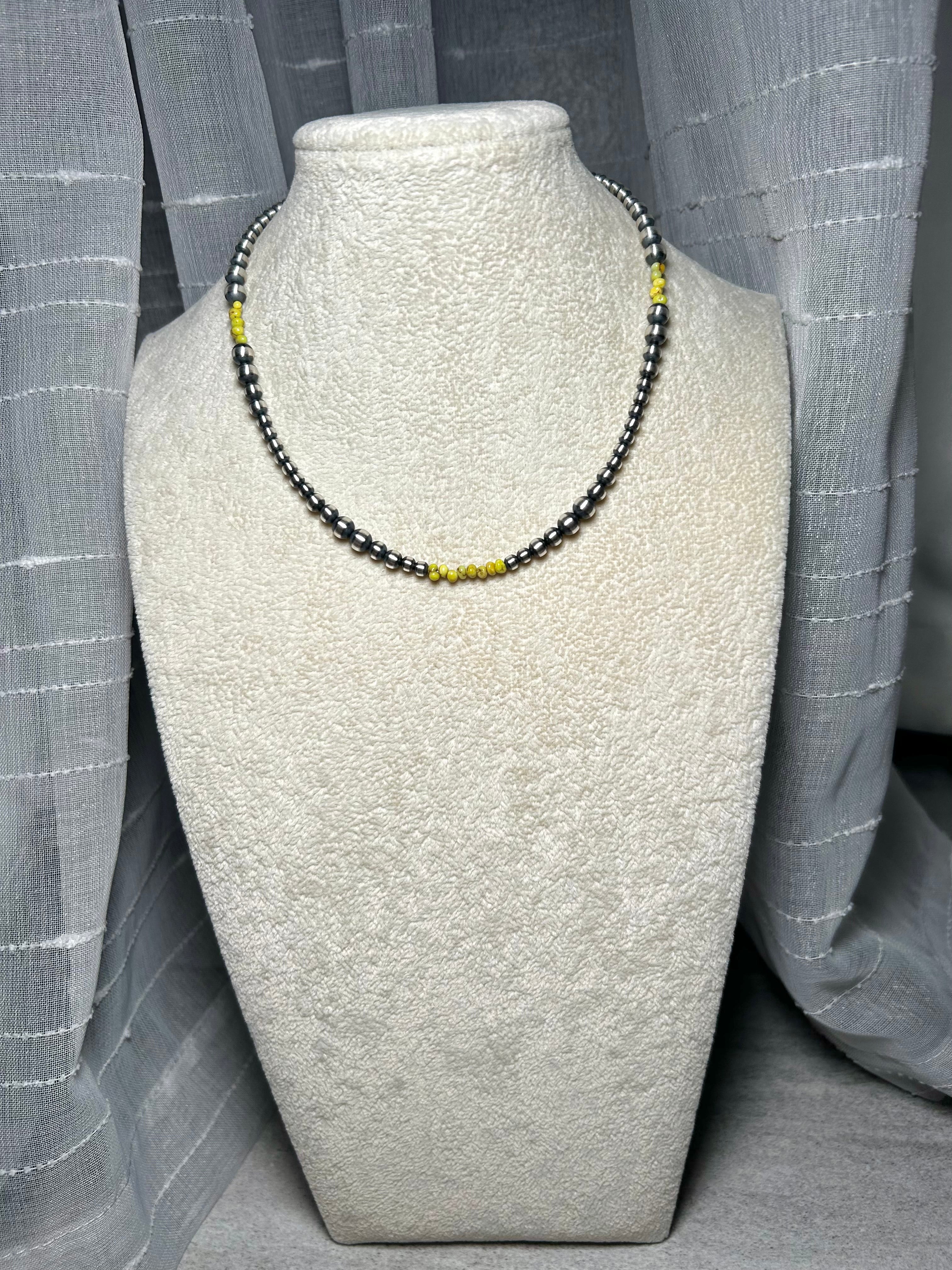 Navajo Strung Palomino Variscite & Sterling Silver Necklace