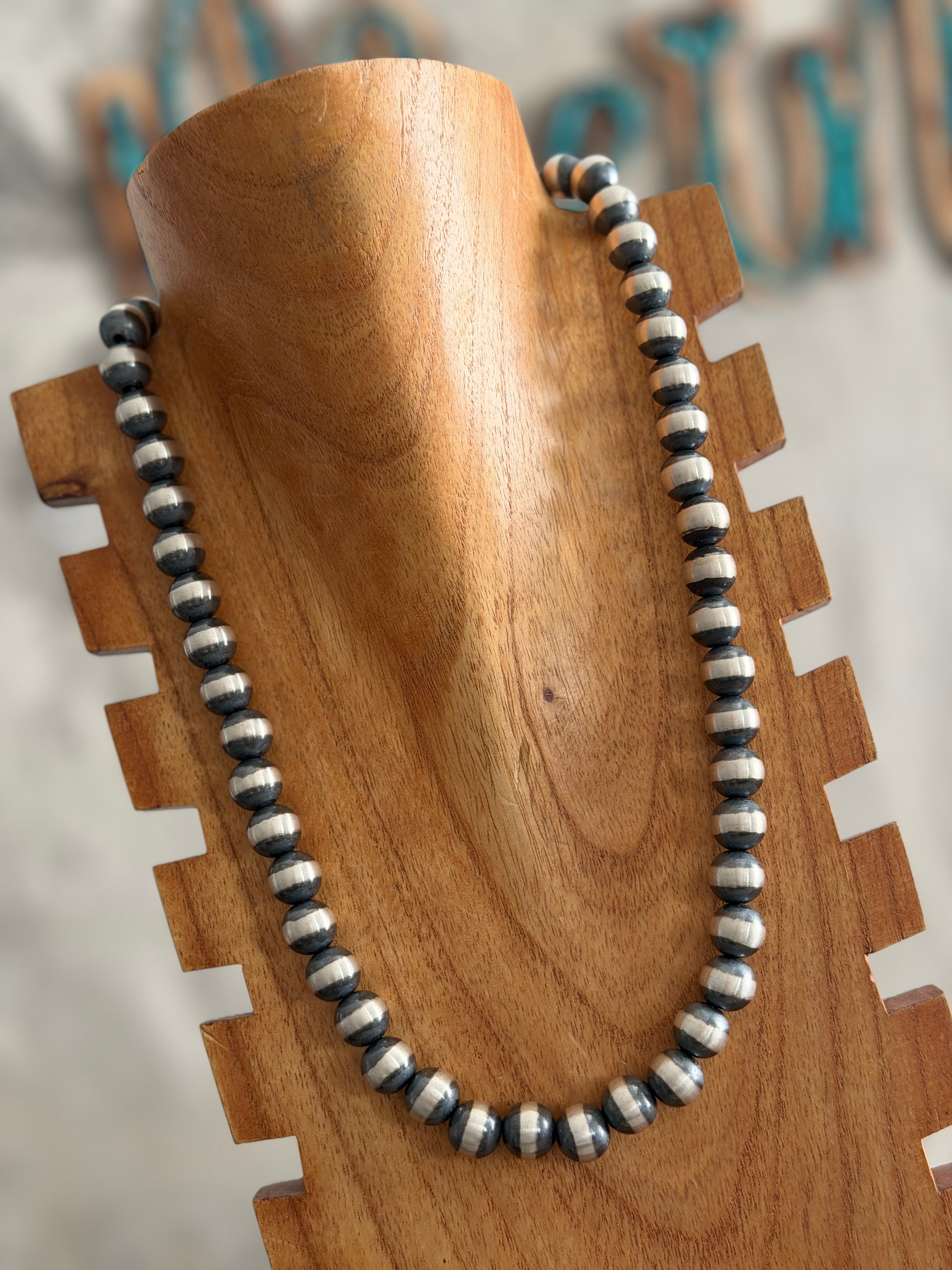 Navajo Strung Sterling Silver 12 MM 24 inch Machine Made Pearl Necklace.
