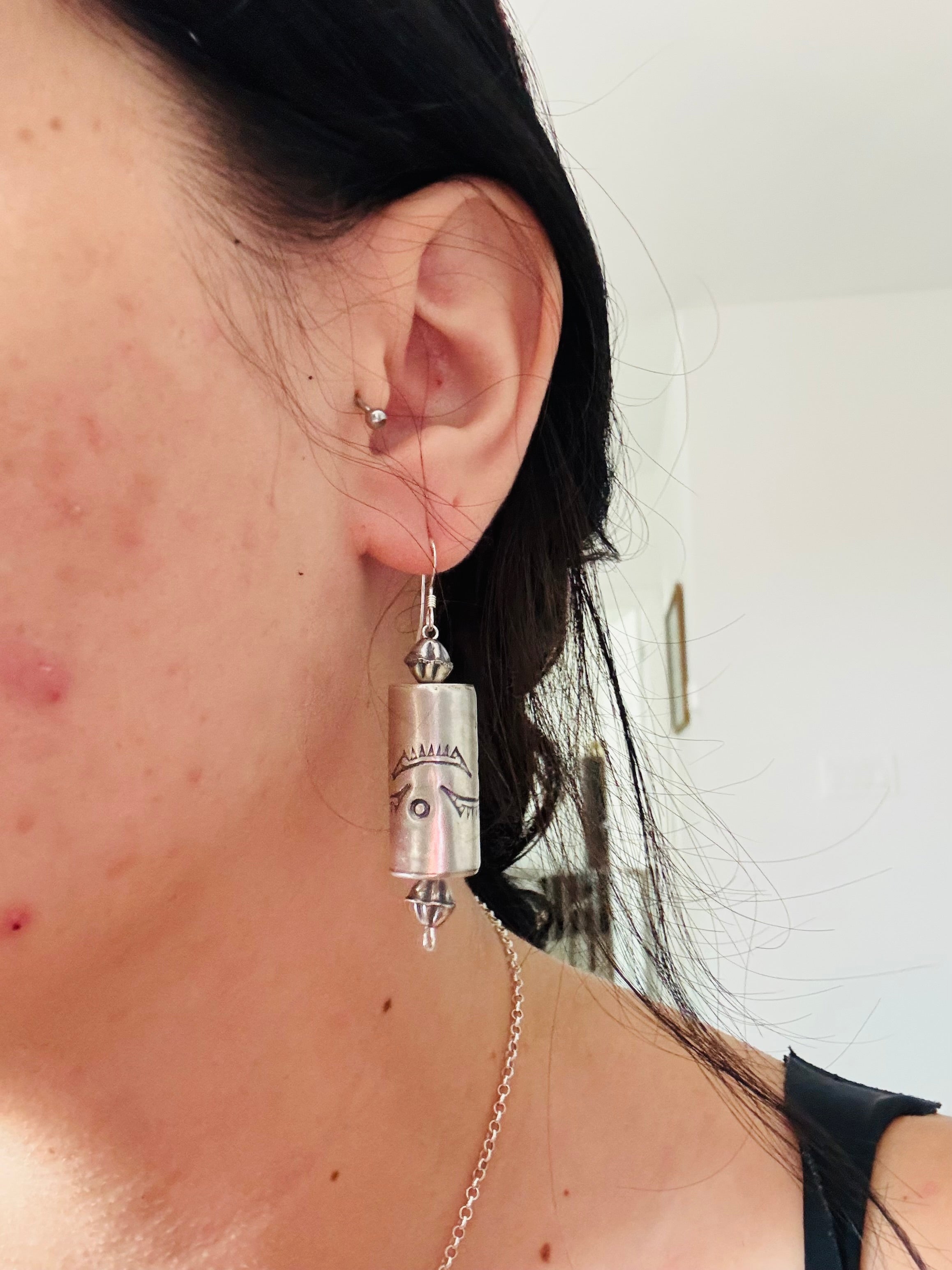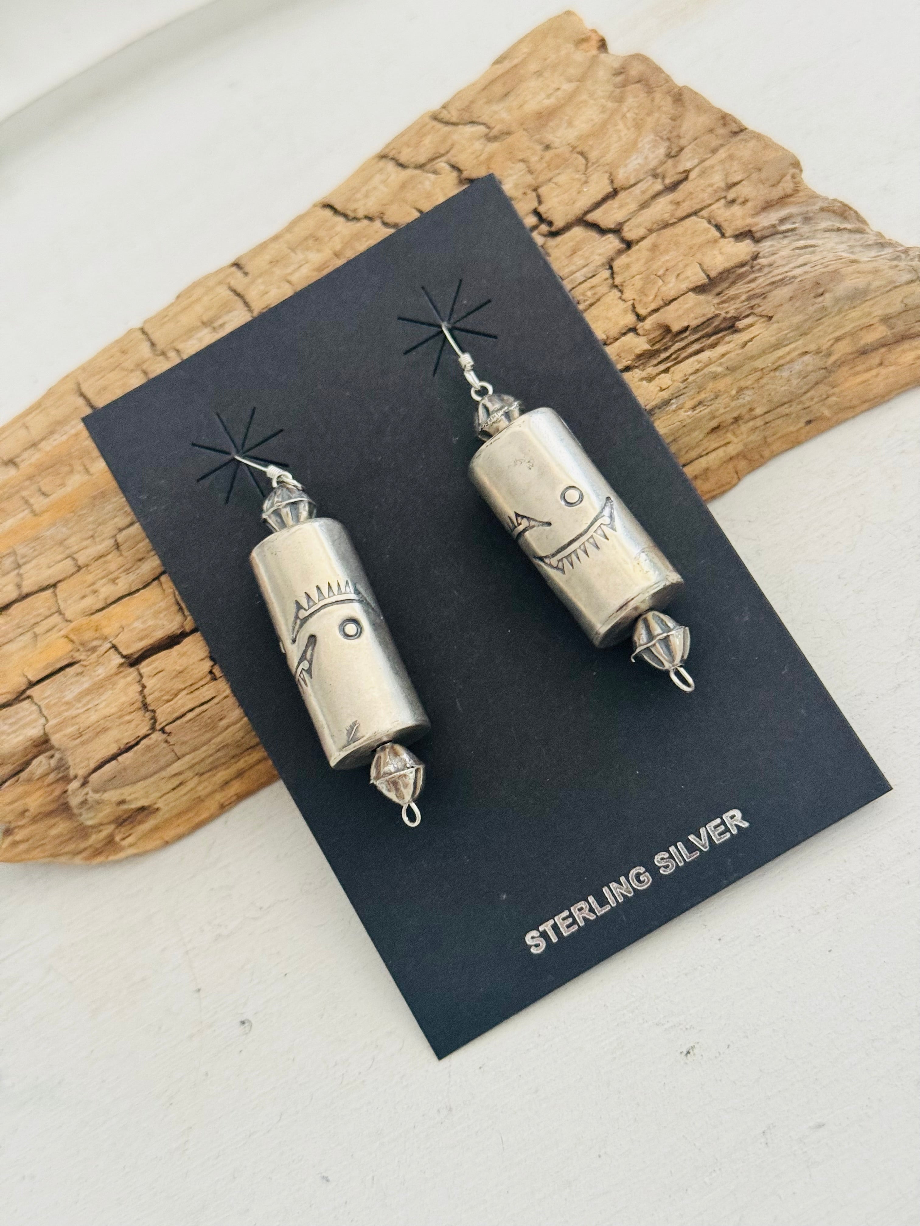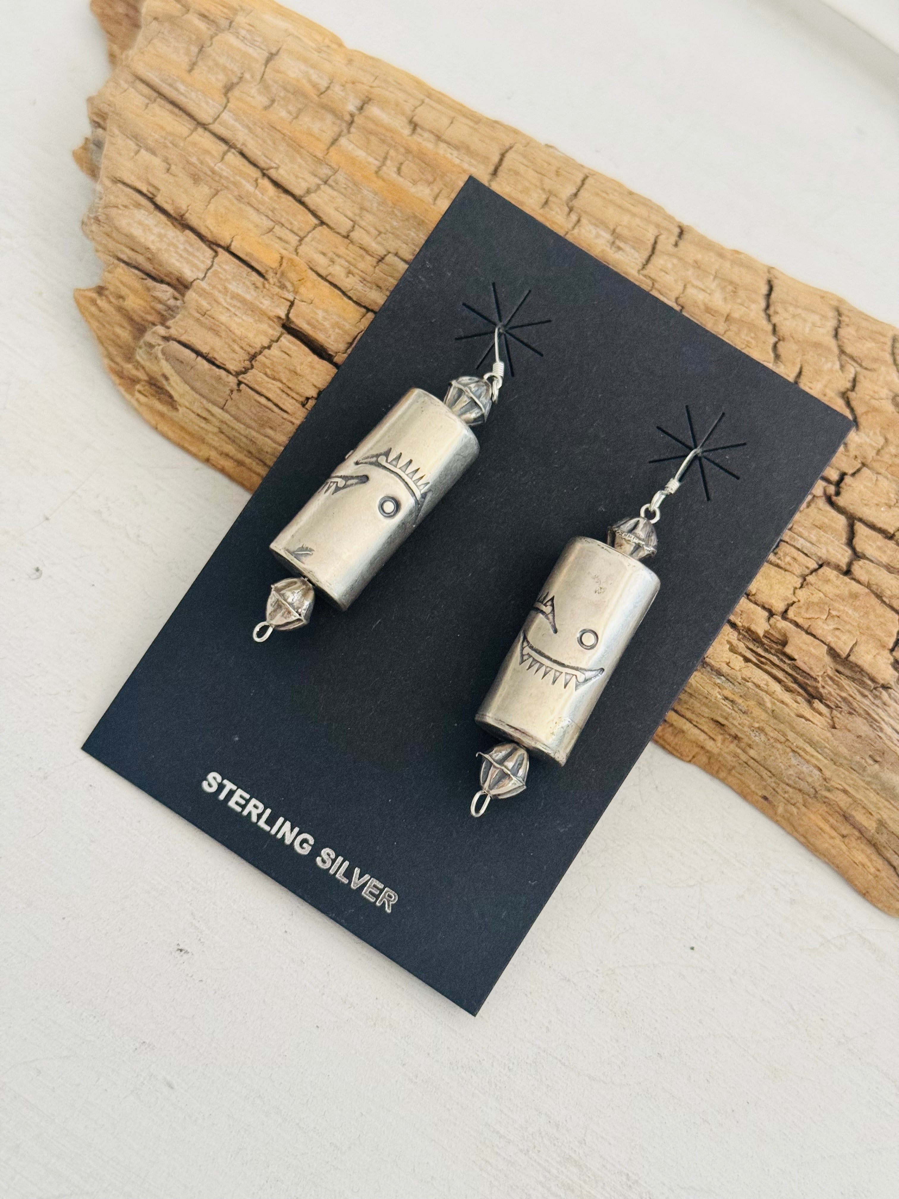 Have a spice in your everyday. Navajo Strung Sterling Silver Barrel Pearls Dangle Earrings. It measures 2 3/8 inches long