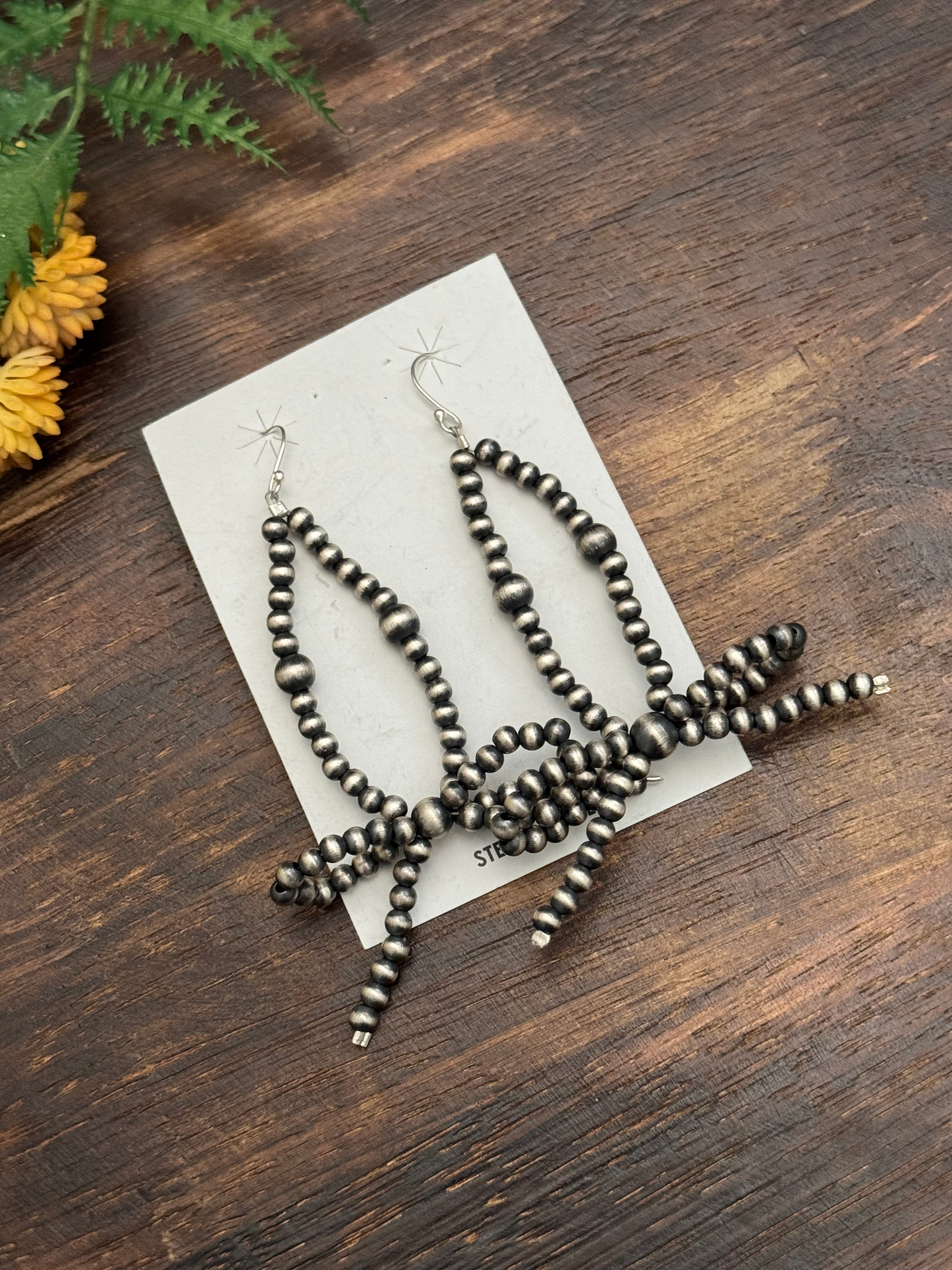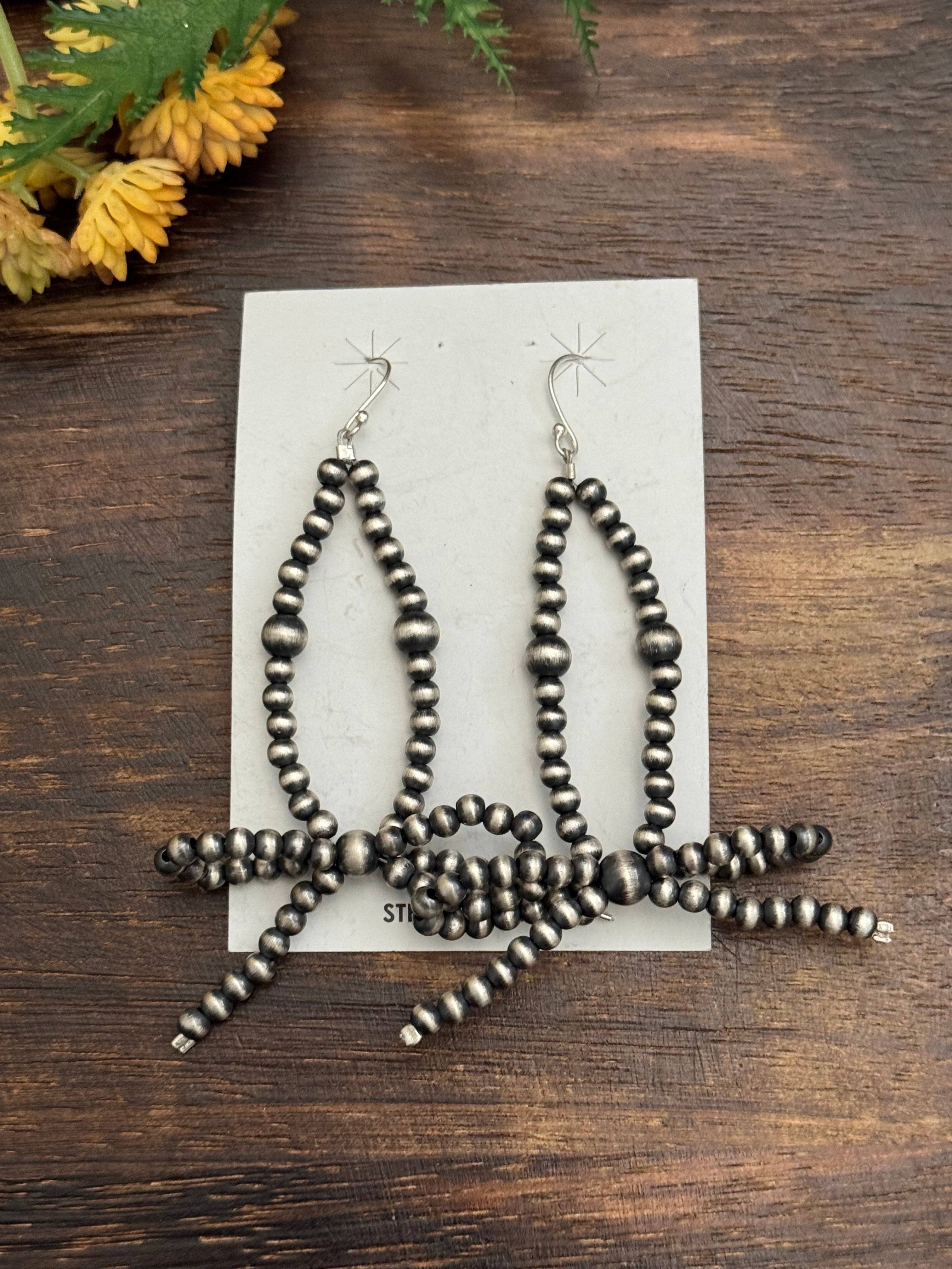 Navajo Strung Sterling Silver Graduated Pearls Dangle Bow Earrings