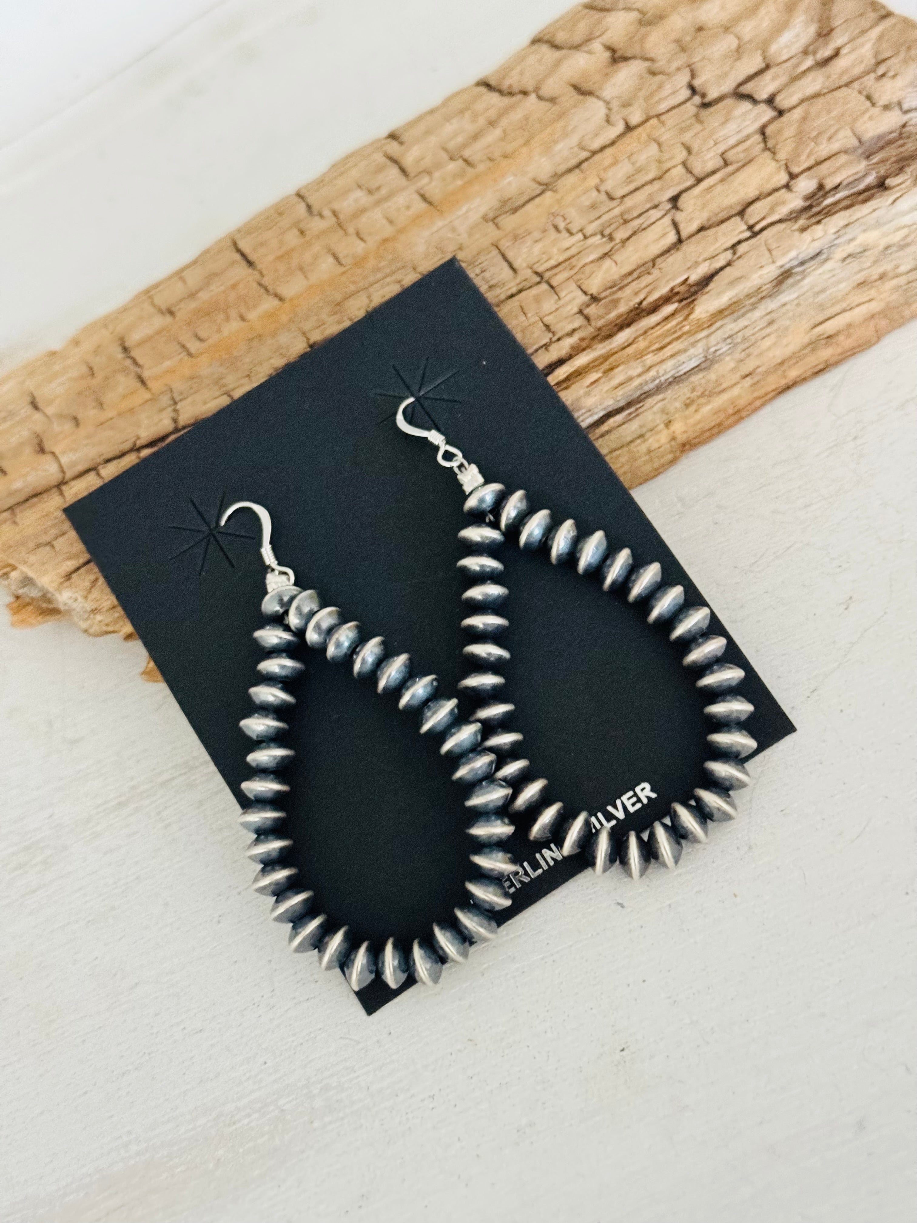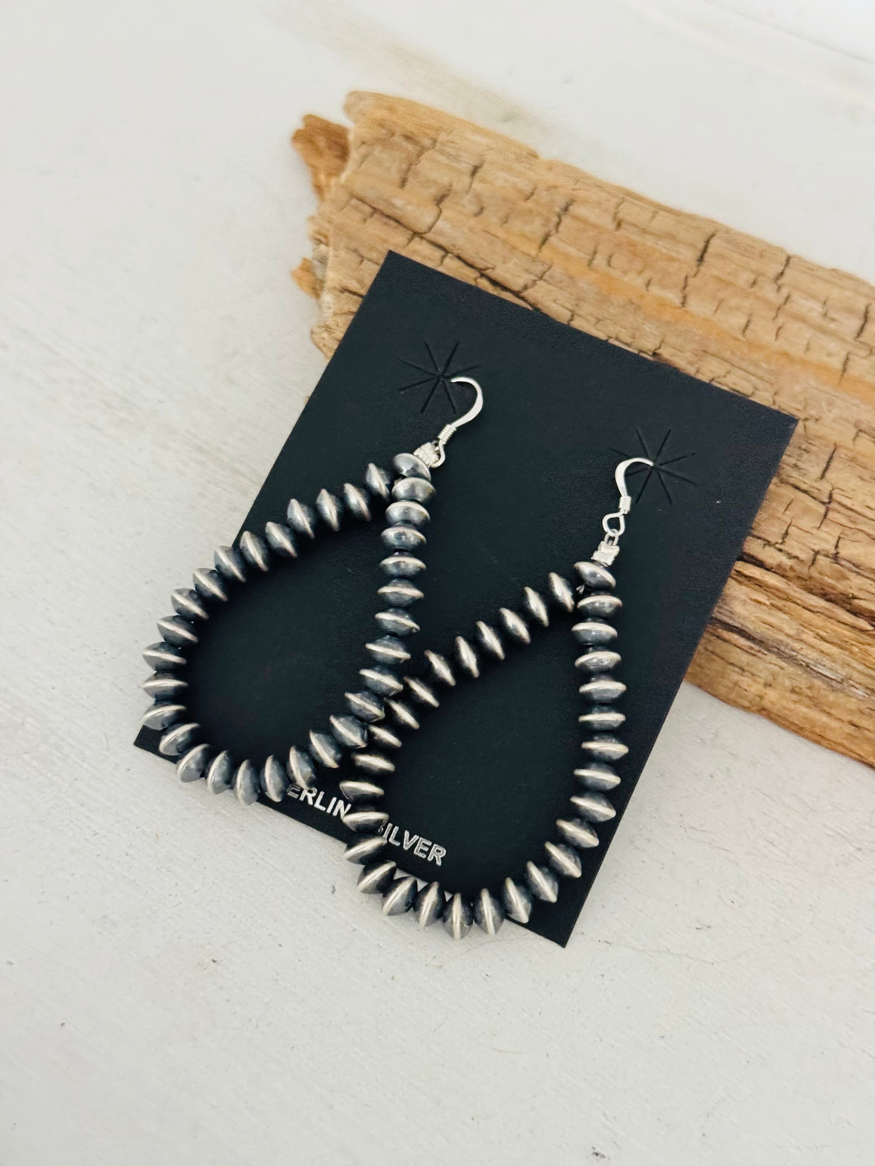 Have a spice in your everyday. Navajo Strung Sterling Silver Pearls Dangle Earrings. It measures 2 3/4 inches long.