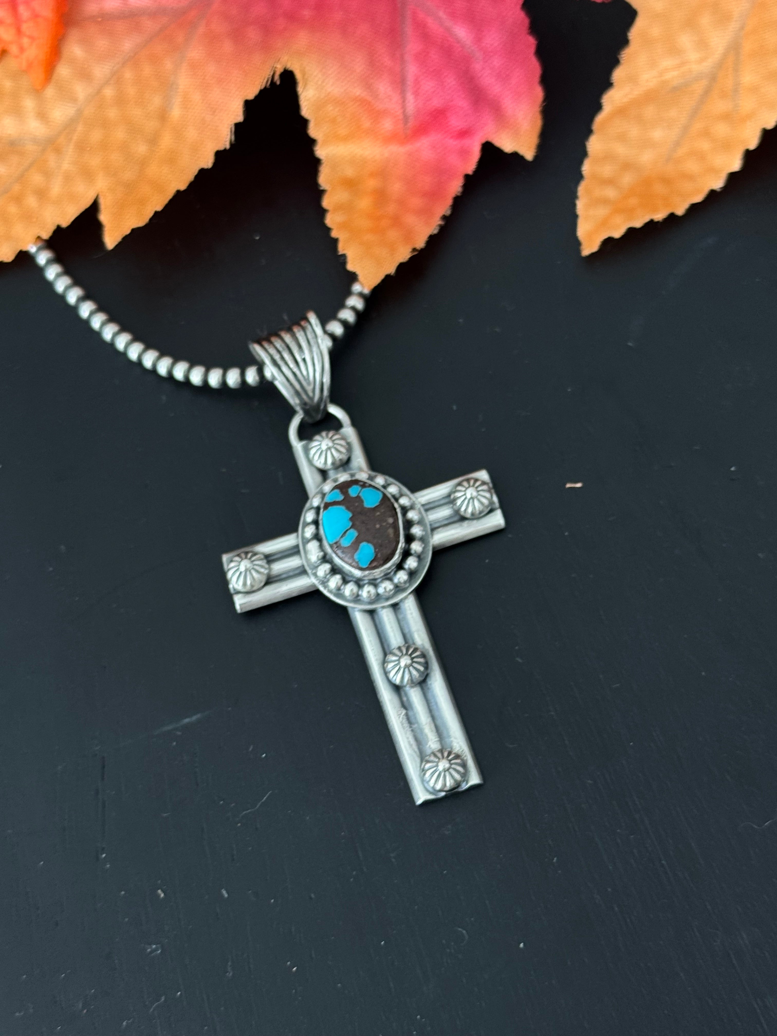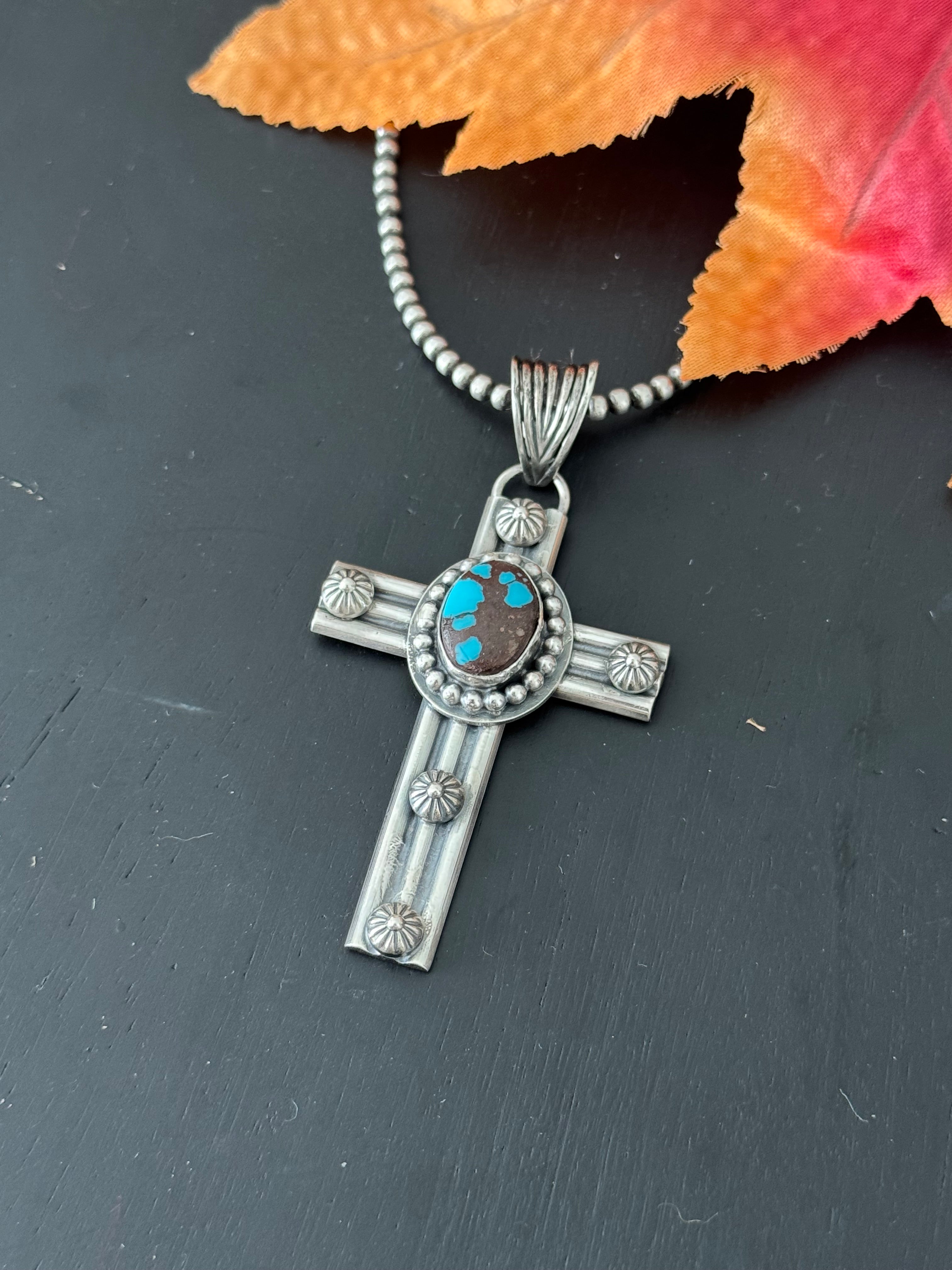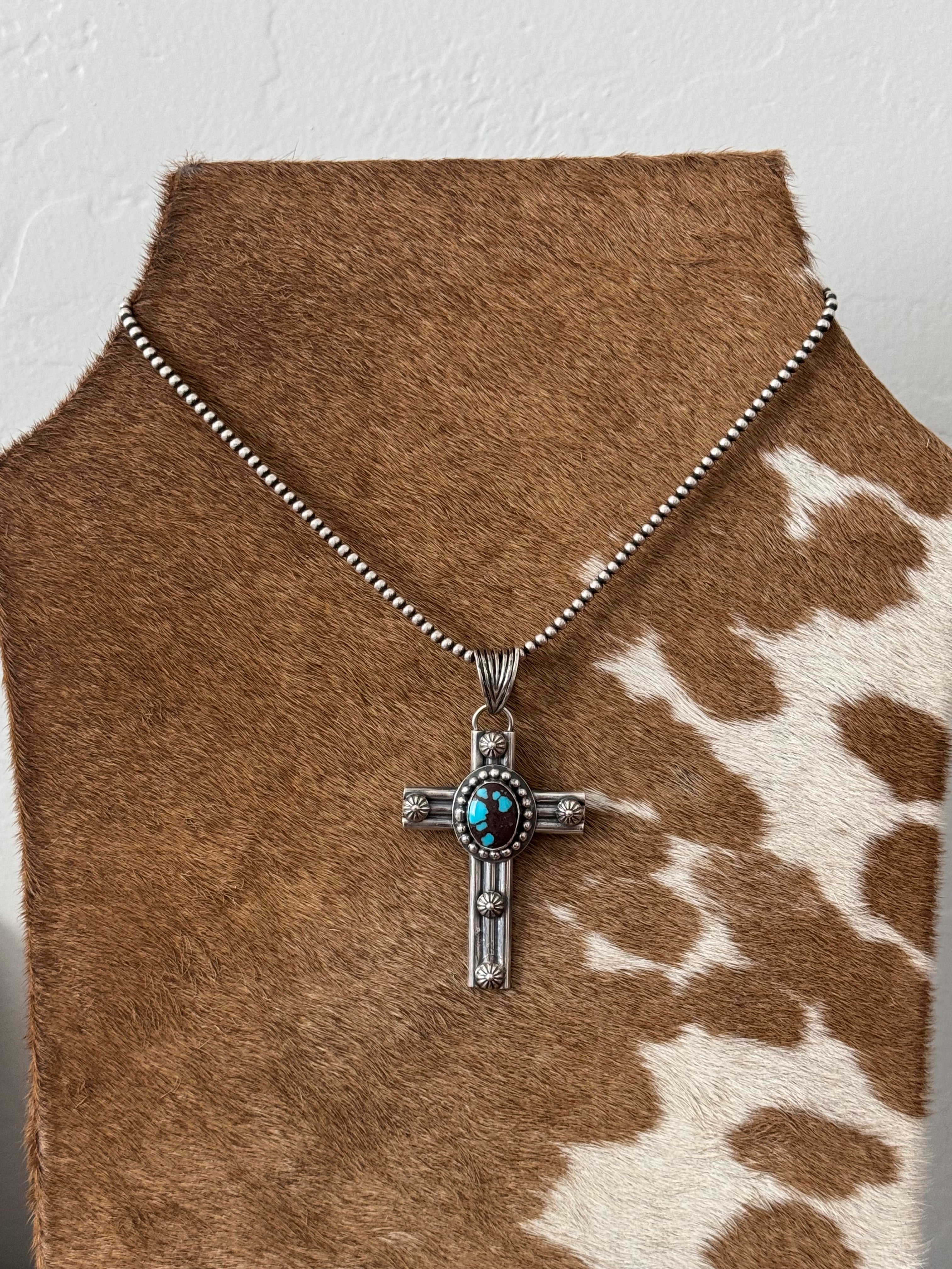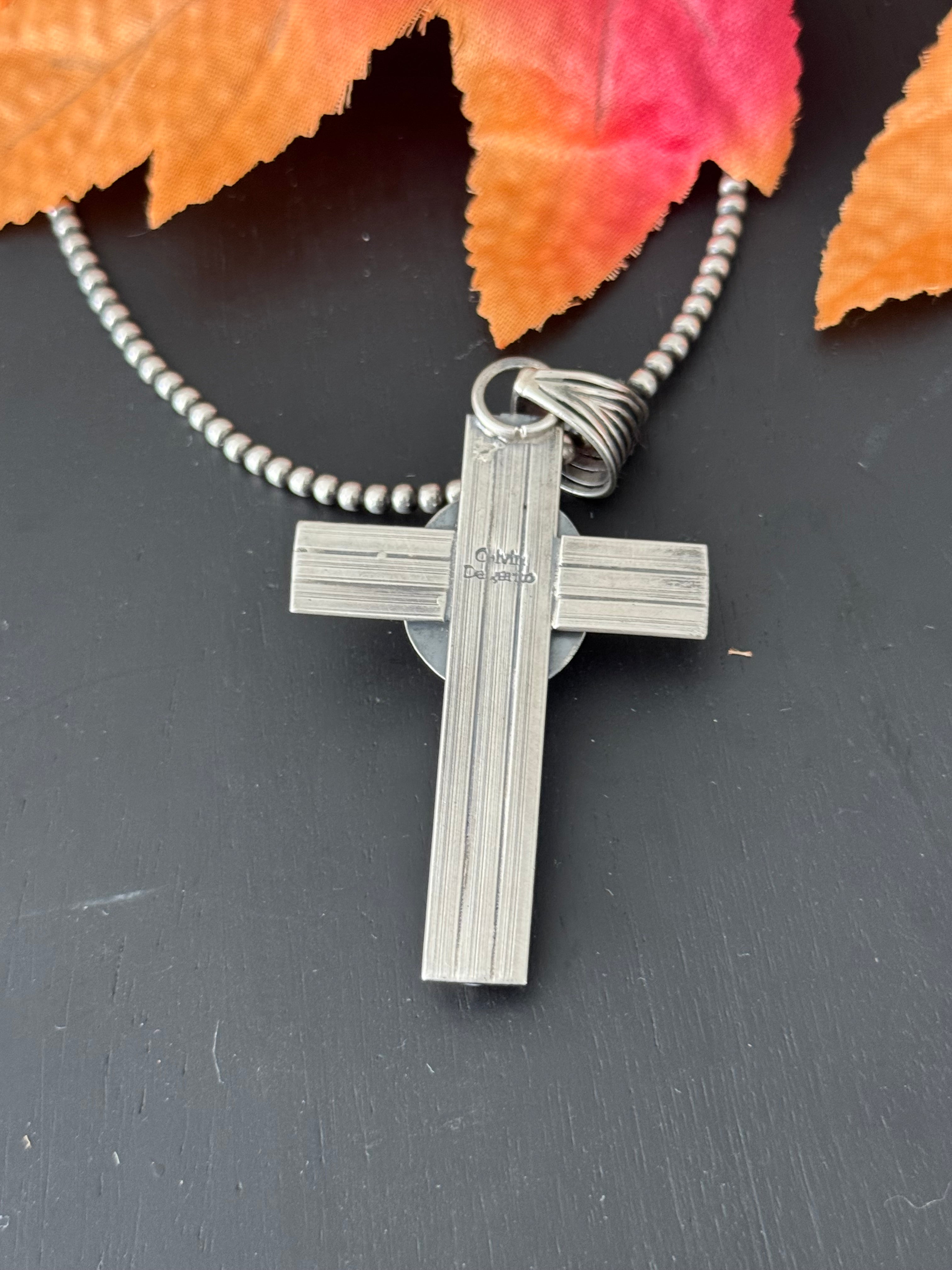 Calvin Delgarito Egyptian Turquoise & Sterling Silver Cross Pendant