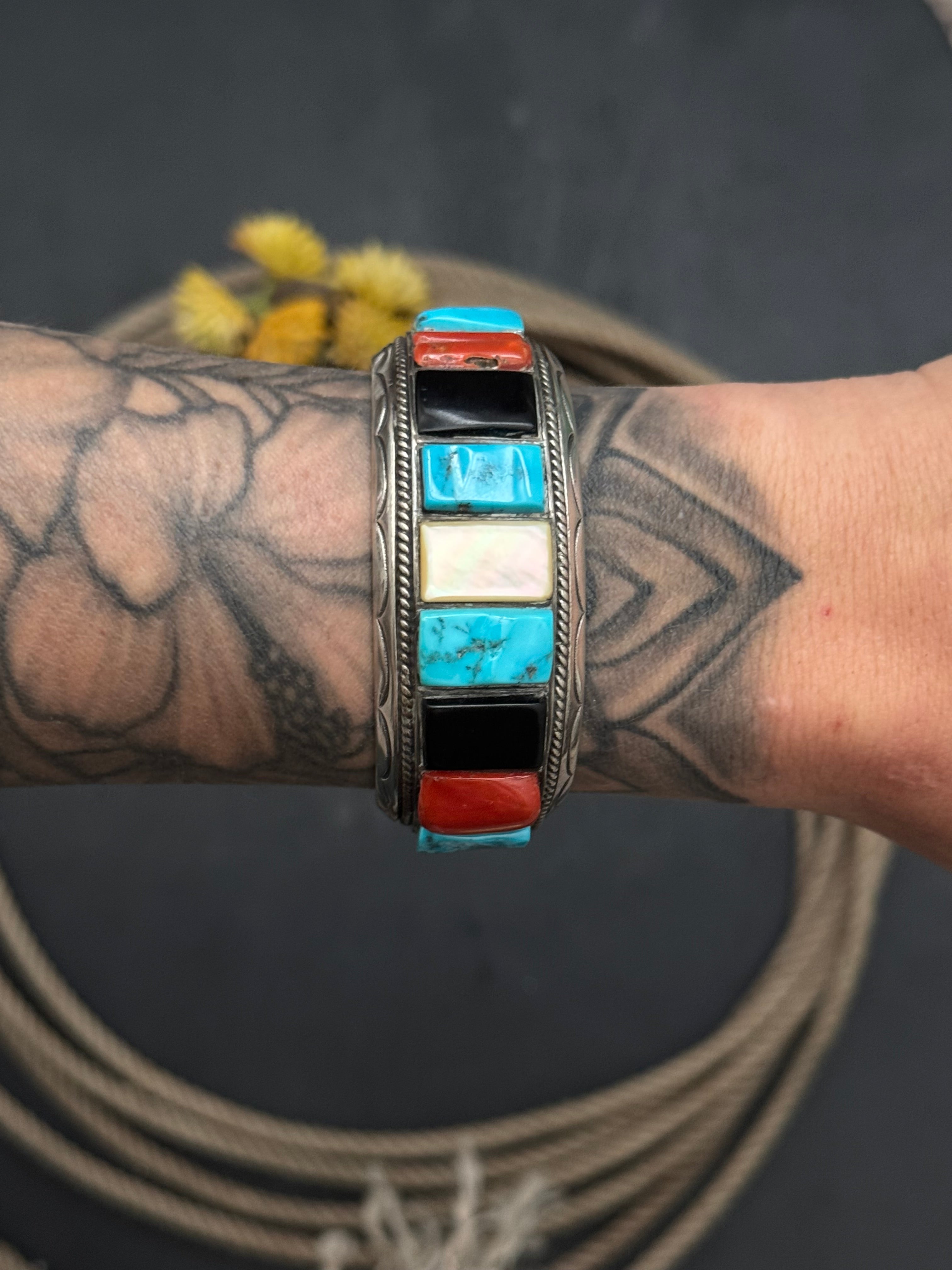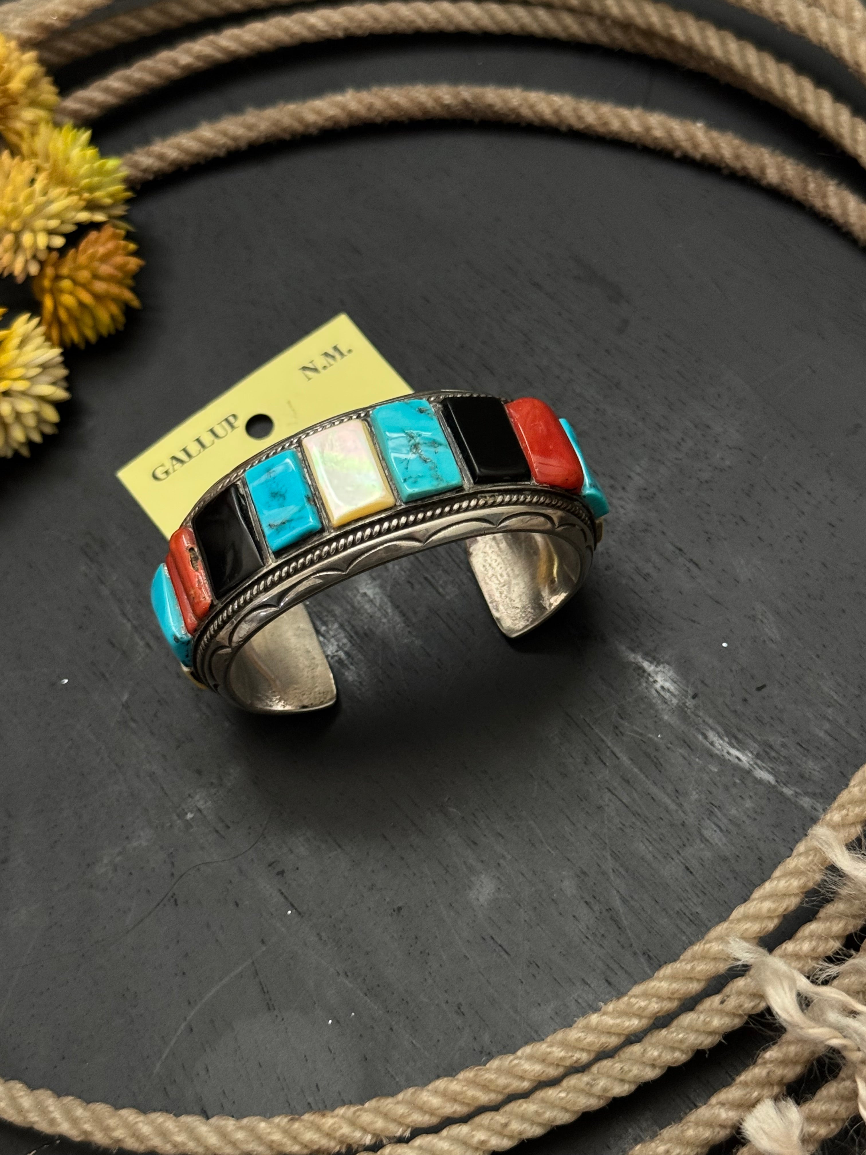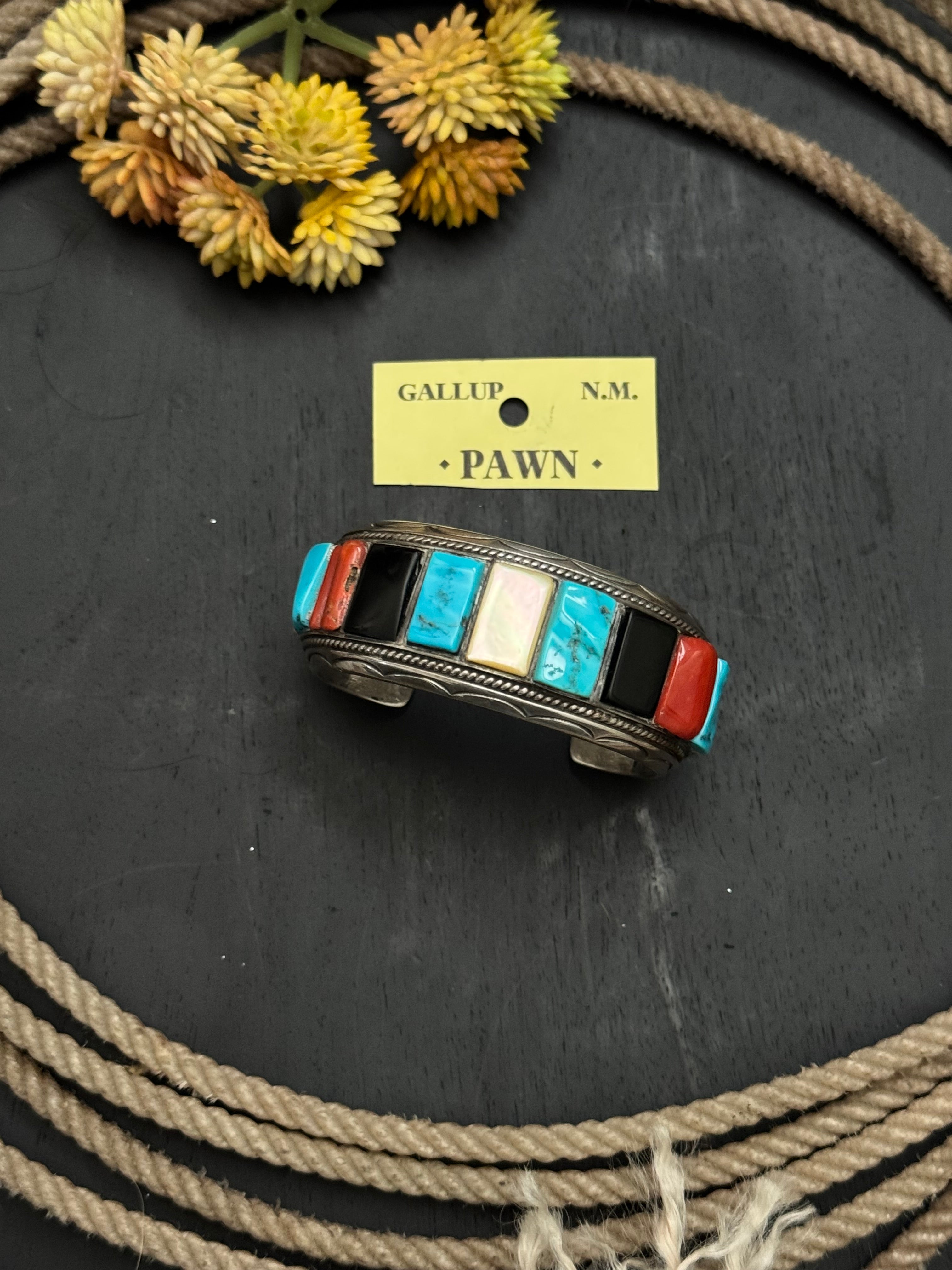 OLD PAWN Navajo Made Multi Stone & Sterling Silver Cuff Bracelet
