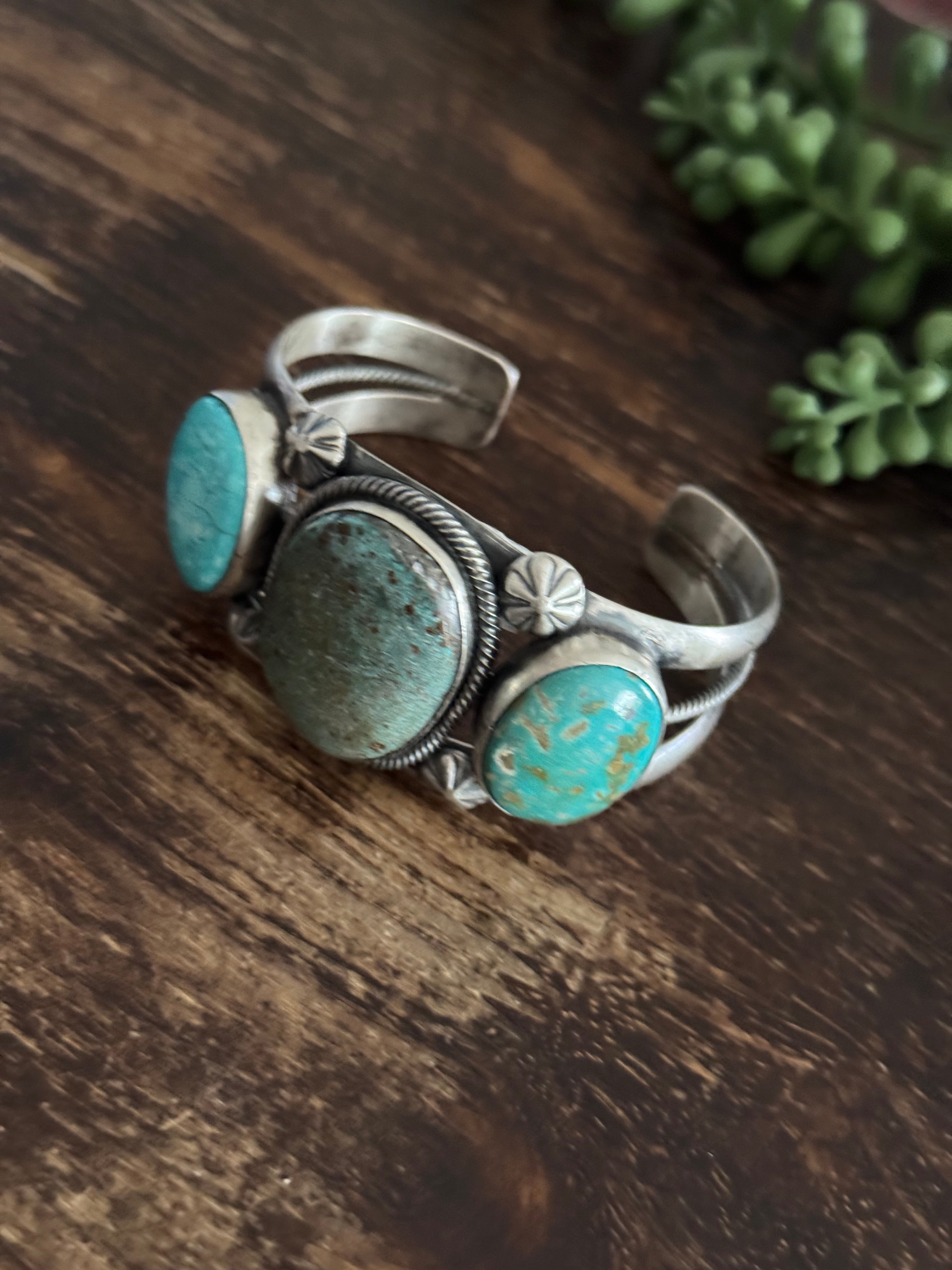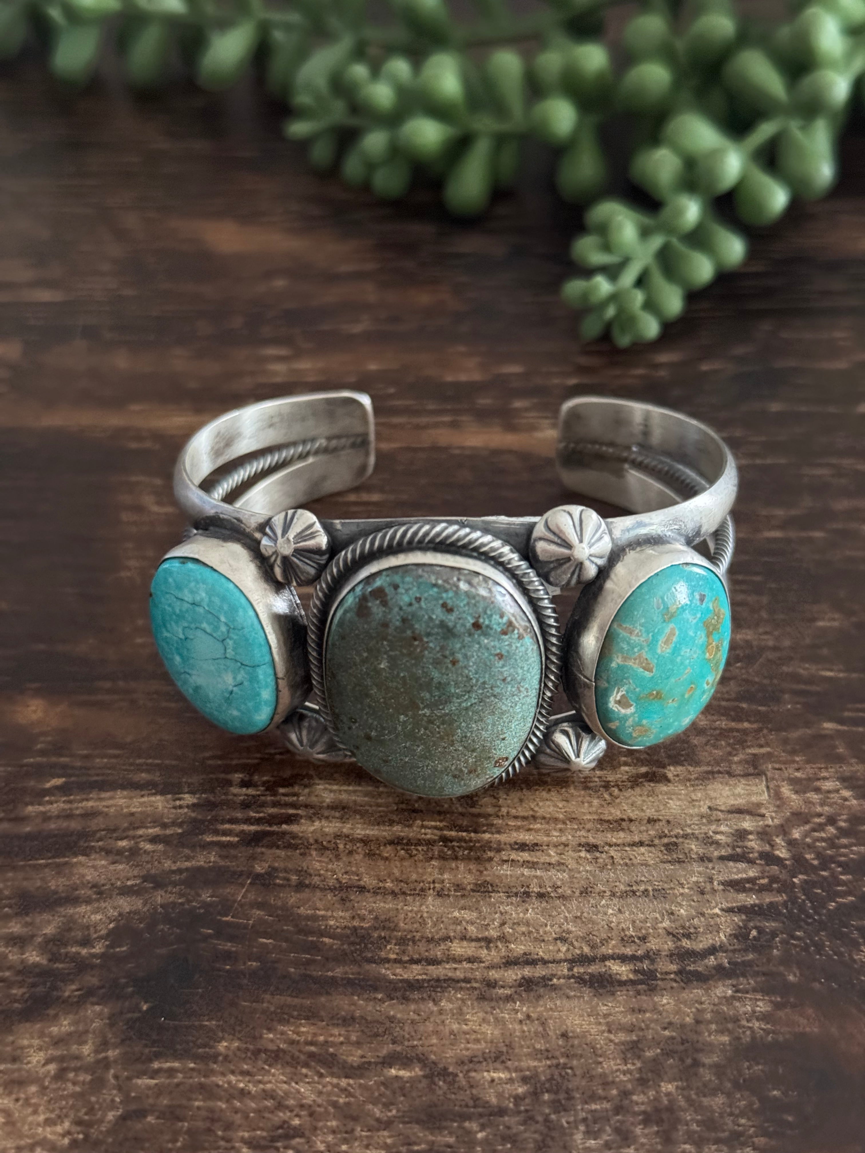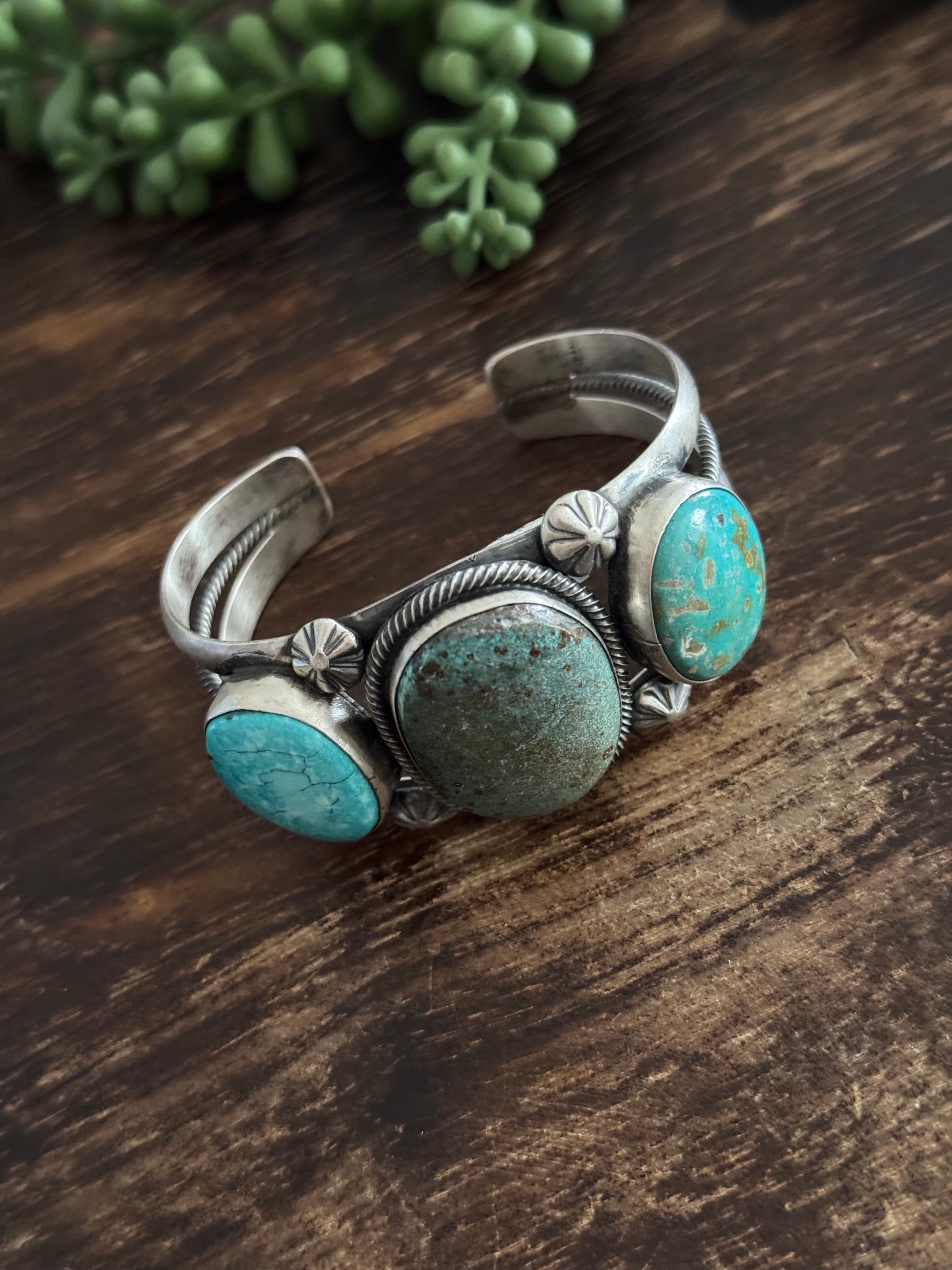 Paul Livingston Mixed Turquoise & Sterling Silver Cuff Bracelet