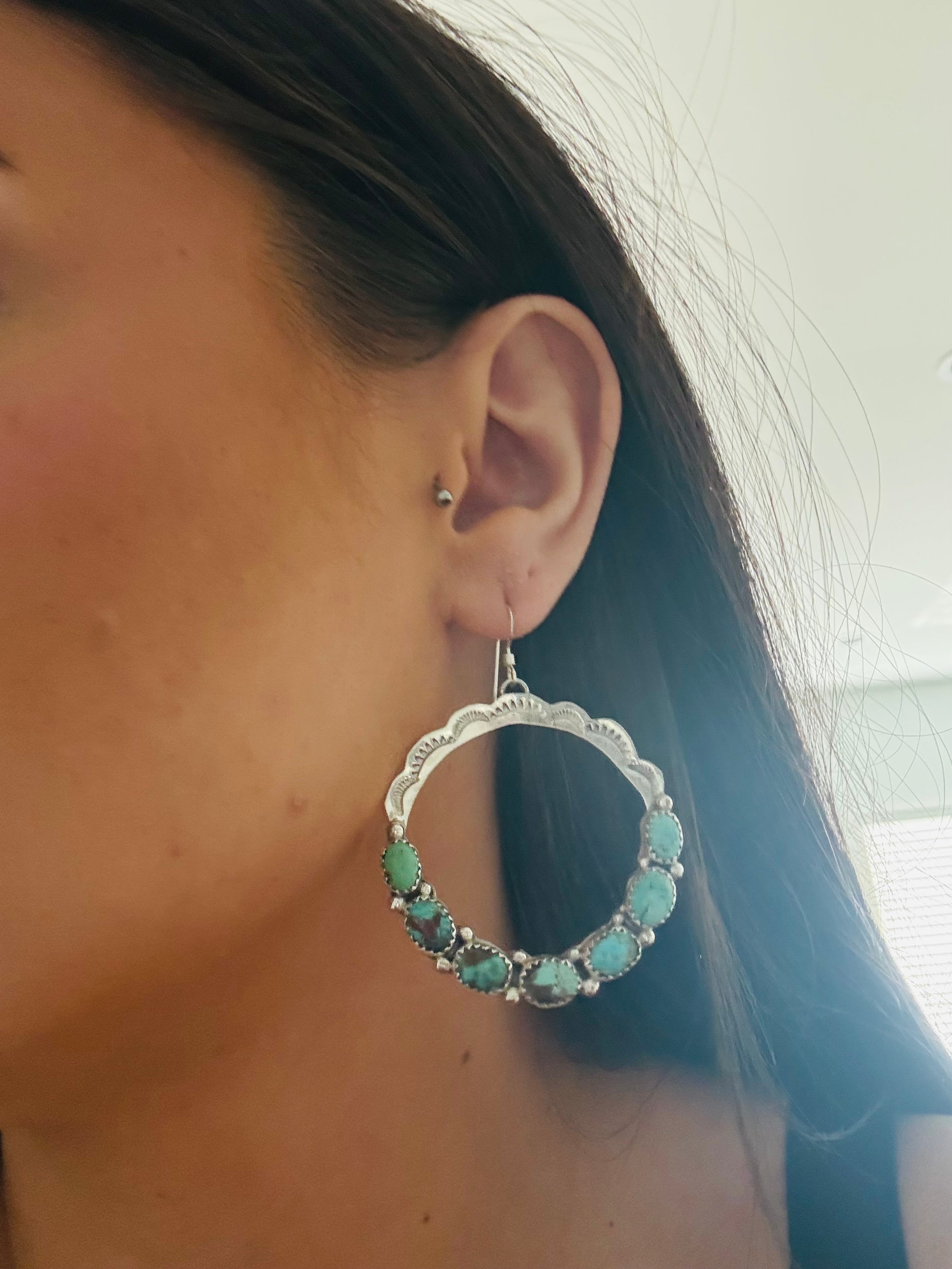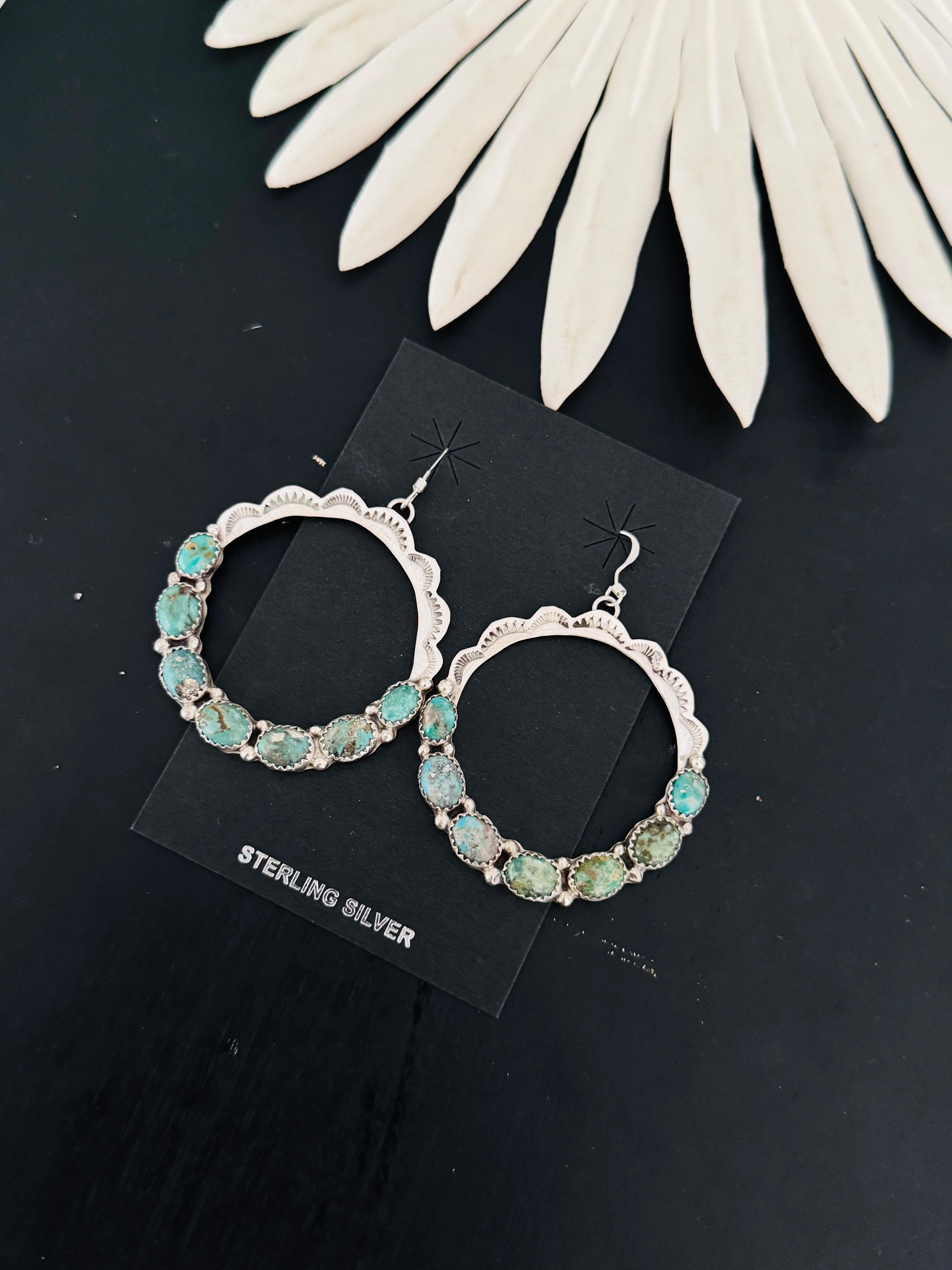 Pearline Spencer Kingman Turquoise & Sterling Silver Dangle Hoop Earrings