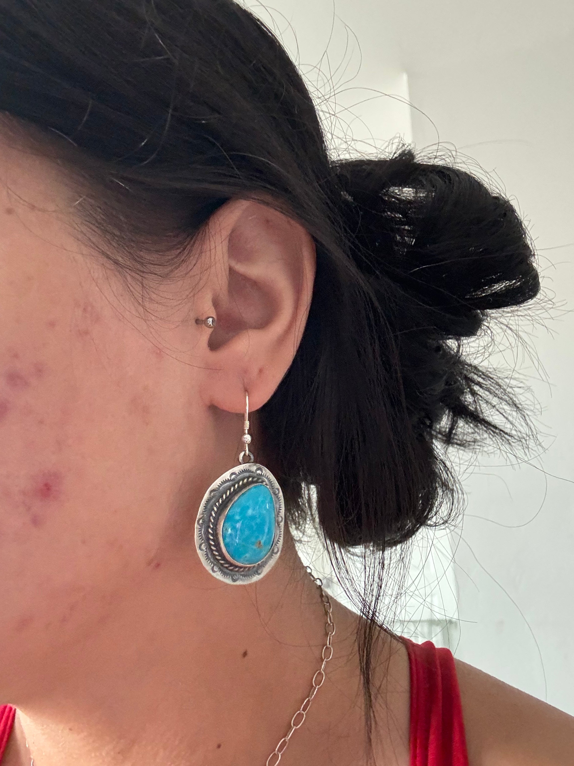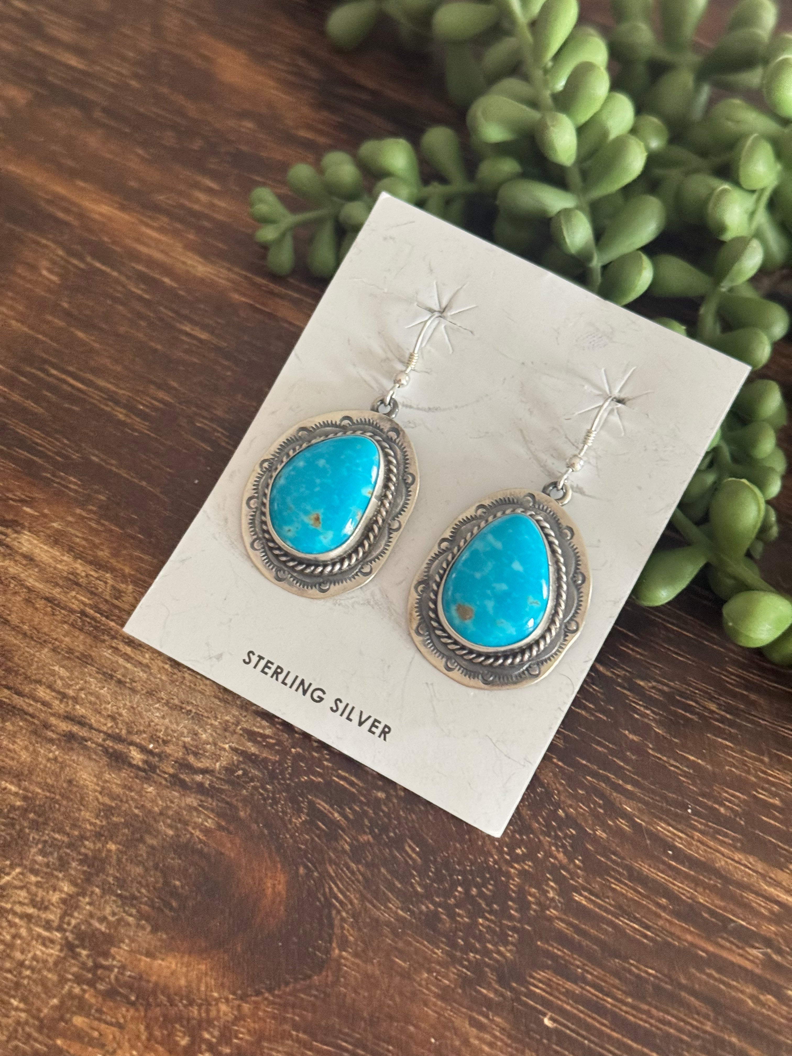 Peggy Skeets Kingman Turquoise & Sterling Silver Dangle Earrings