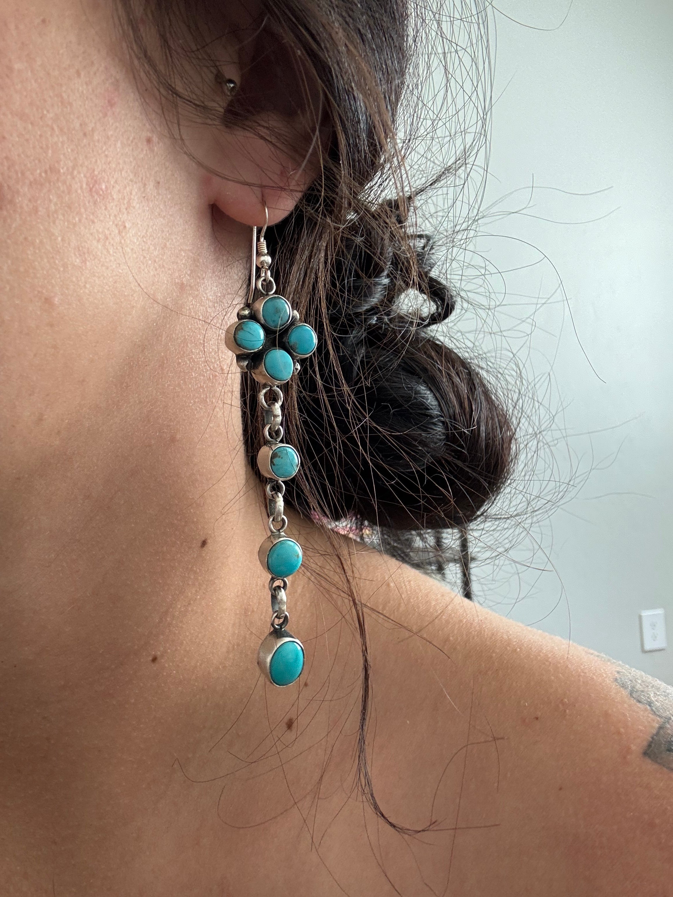 Randy Boyd Kingman Turquoise & Sterling Silver Dangle Earrings
