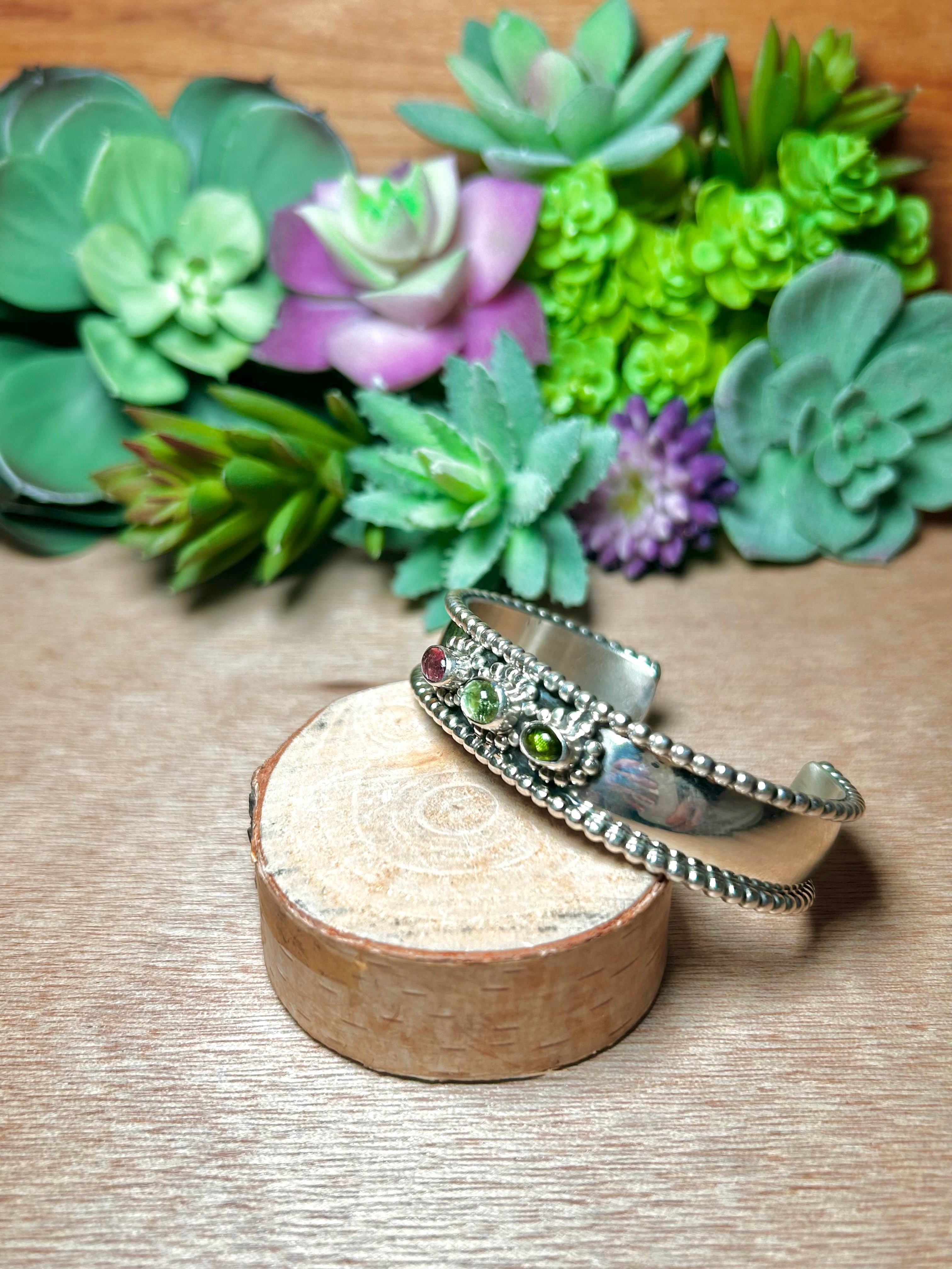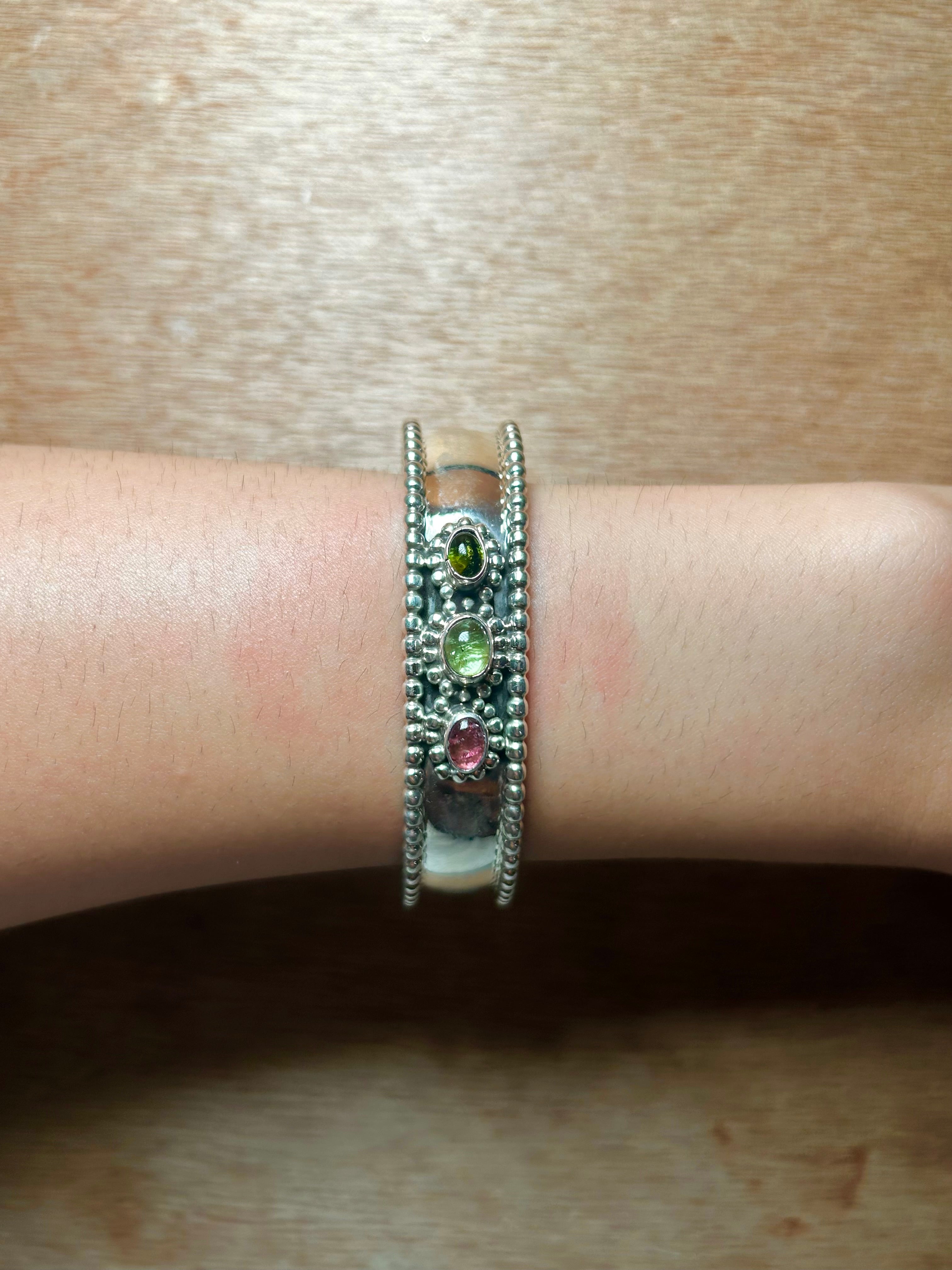 Richard Long Multi Stone & Sterling Silver Cuff Bracelet
