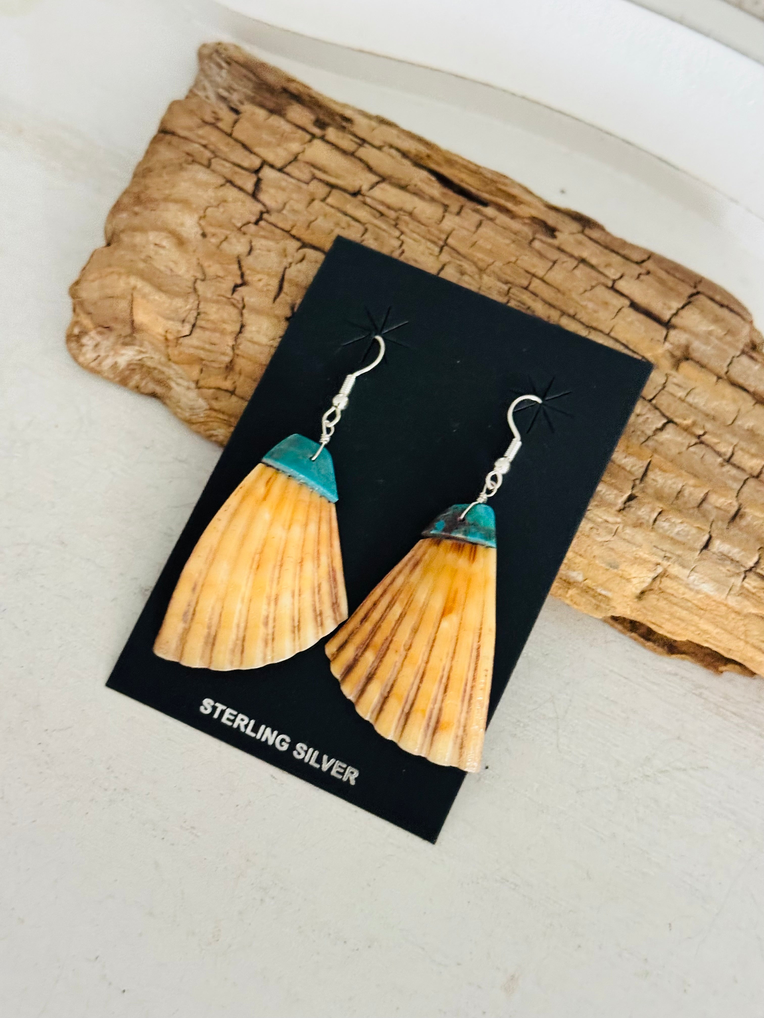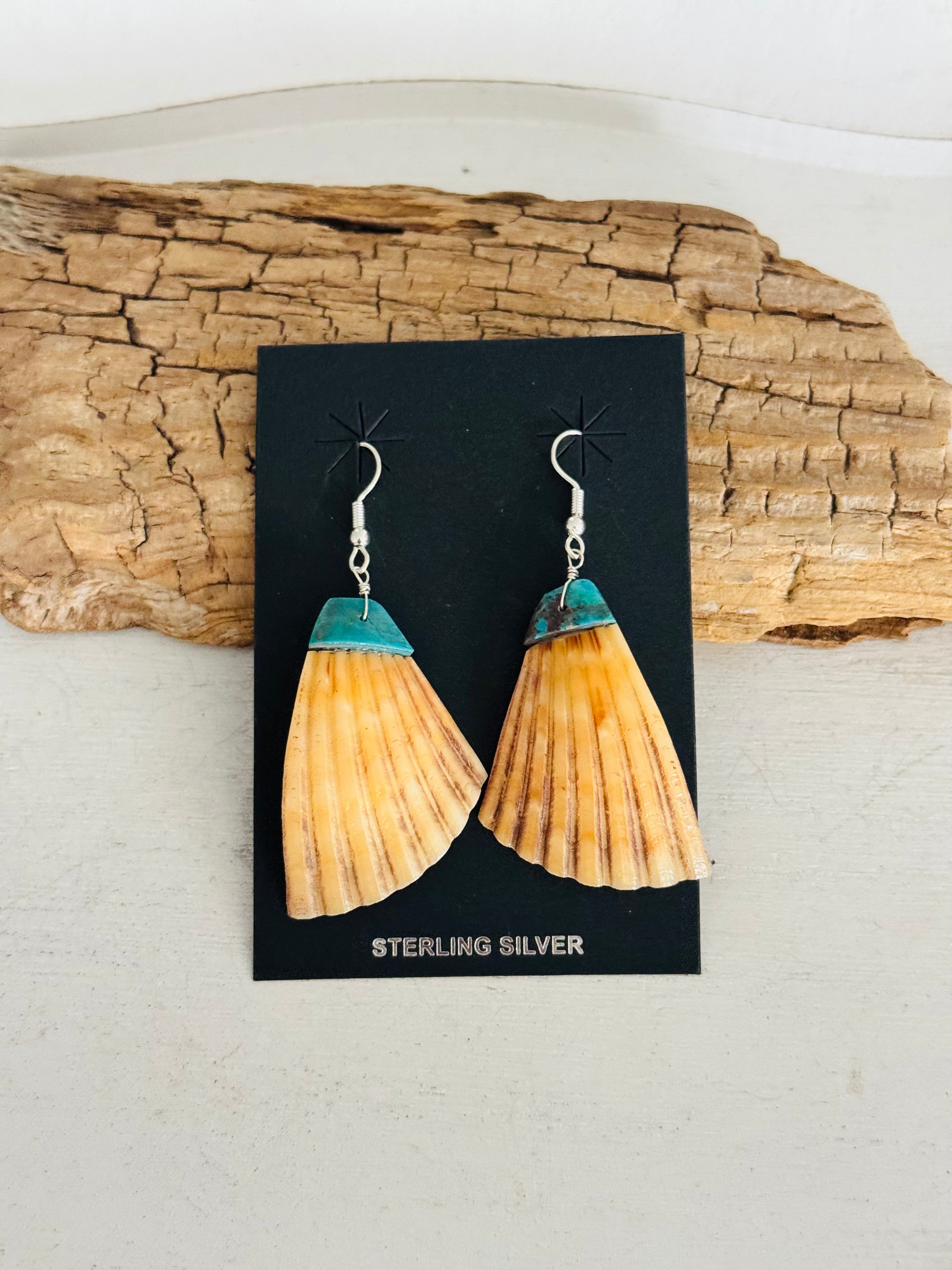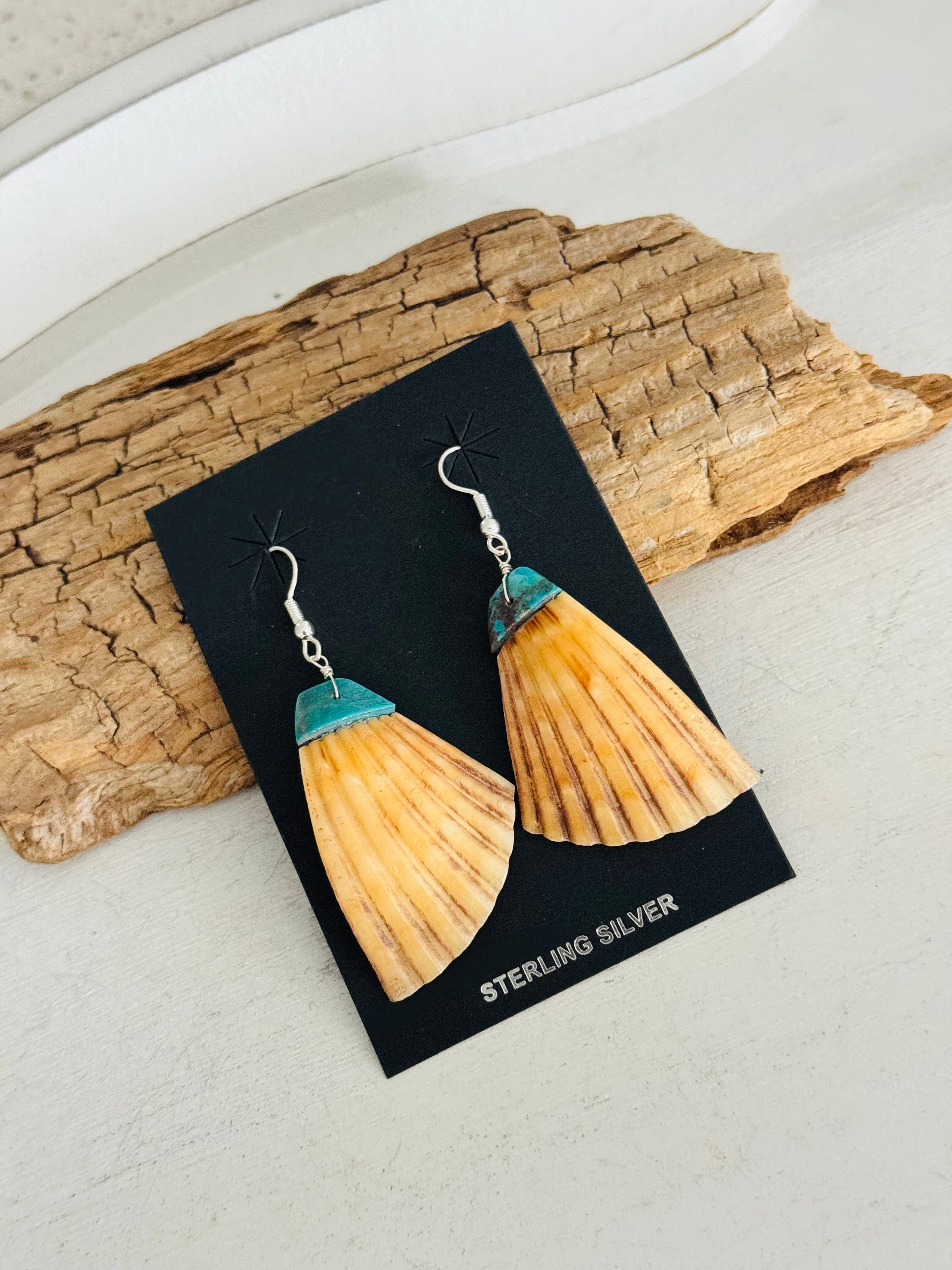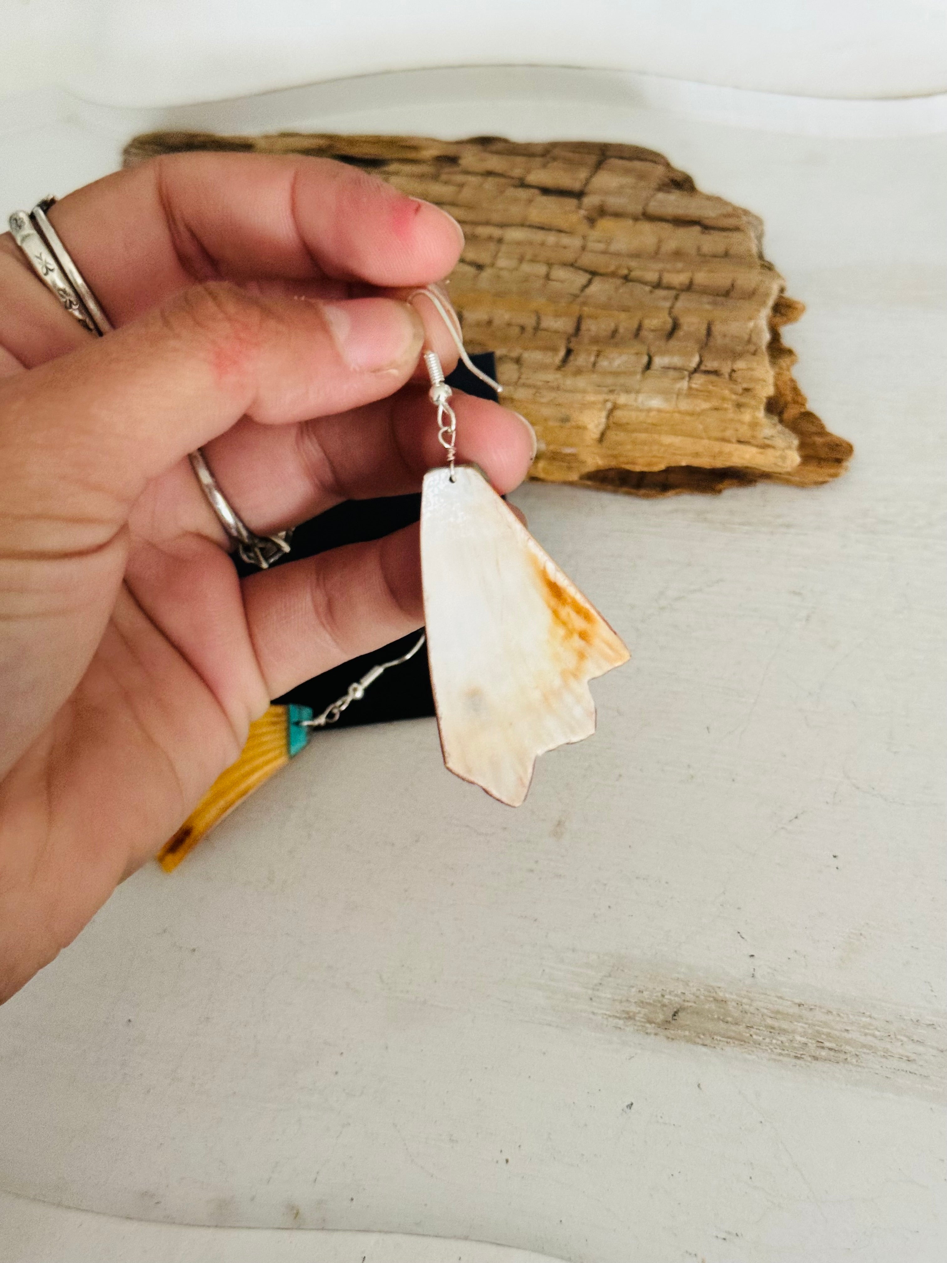 Santo Damingo Multi Stone & Sterling Silver Dangle Shell Earrings. They measure 2 3/4 inches long and 1 1/8 inches wide.