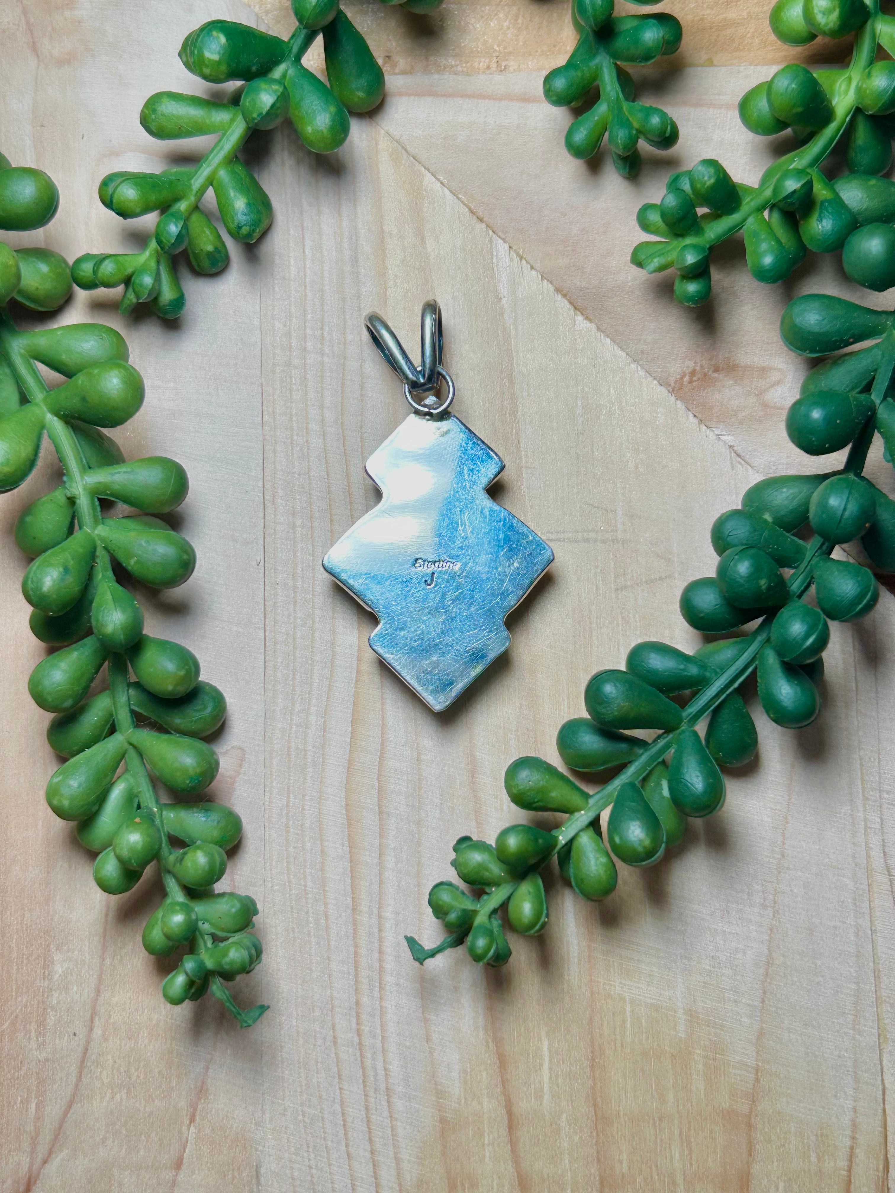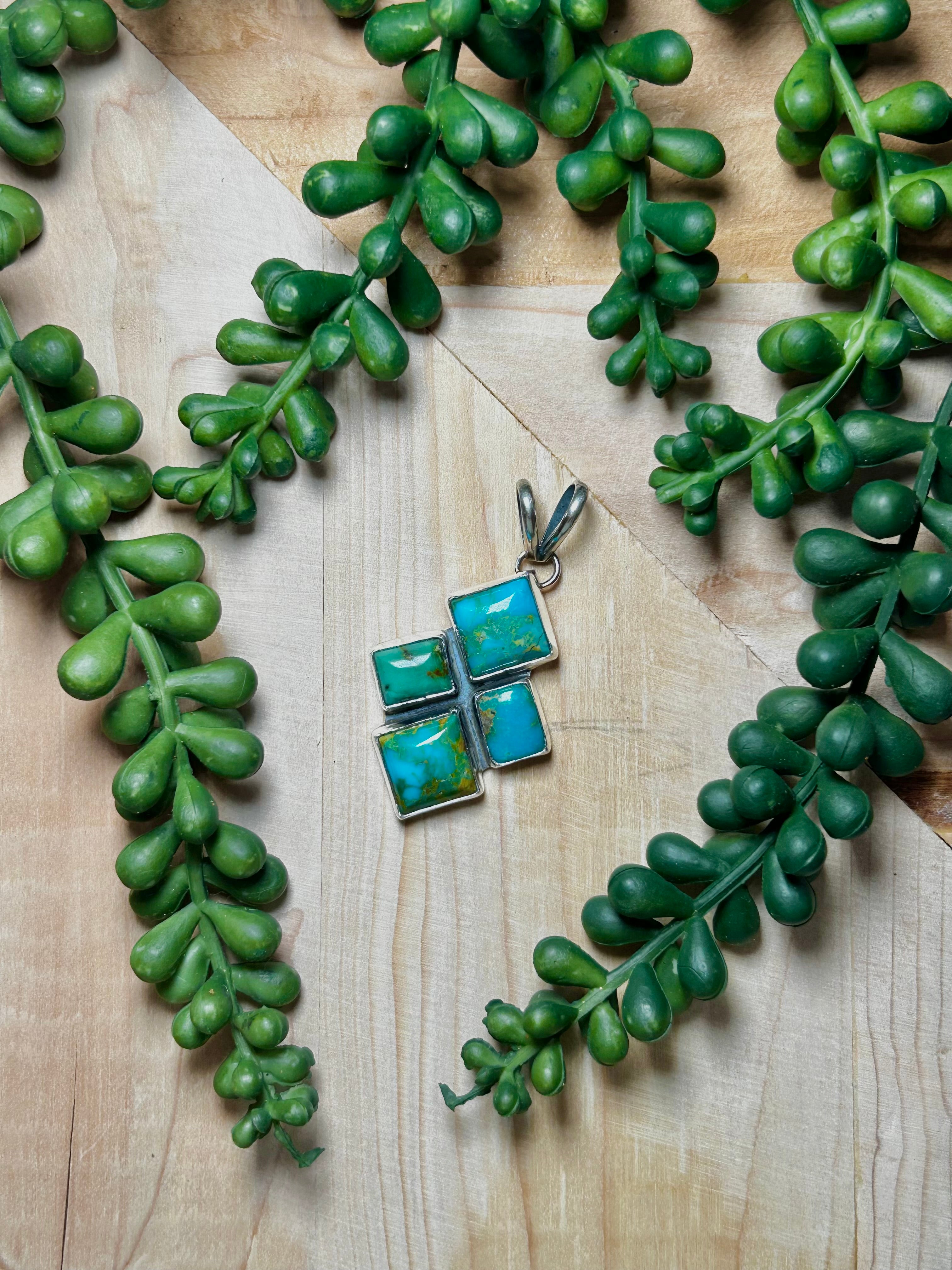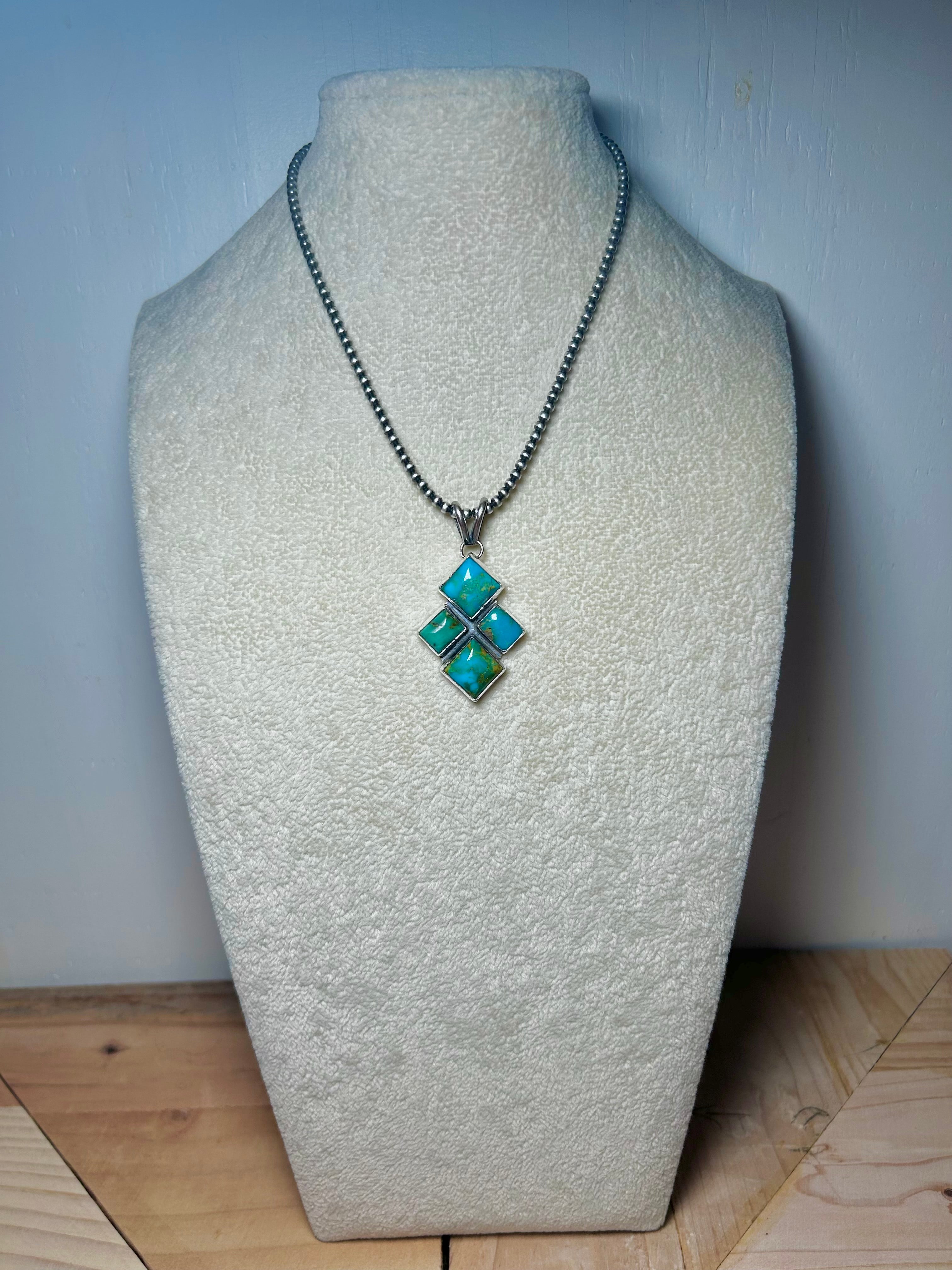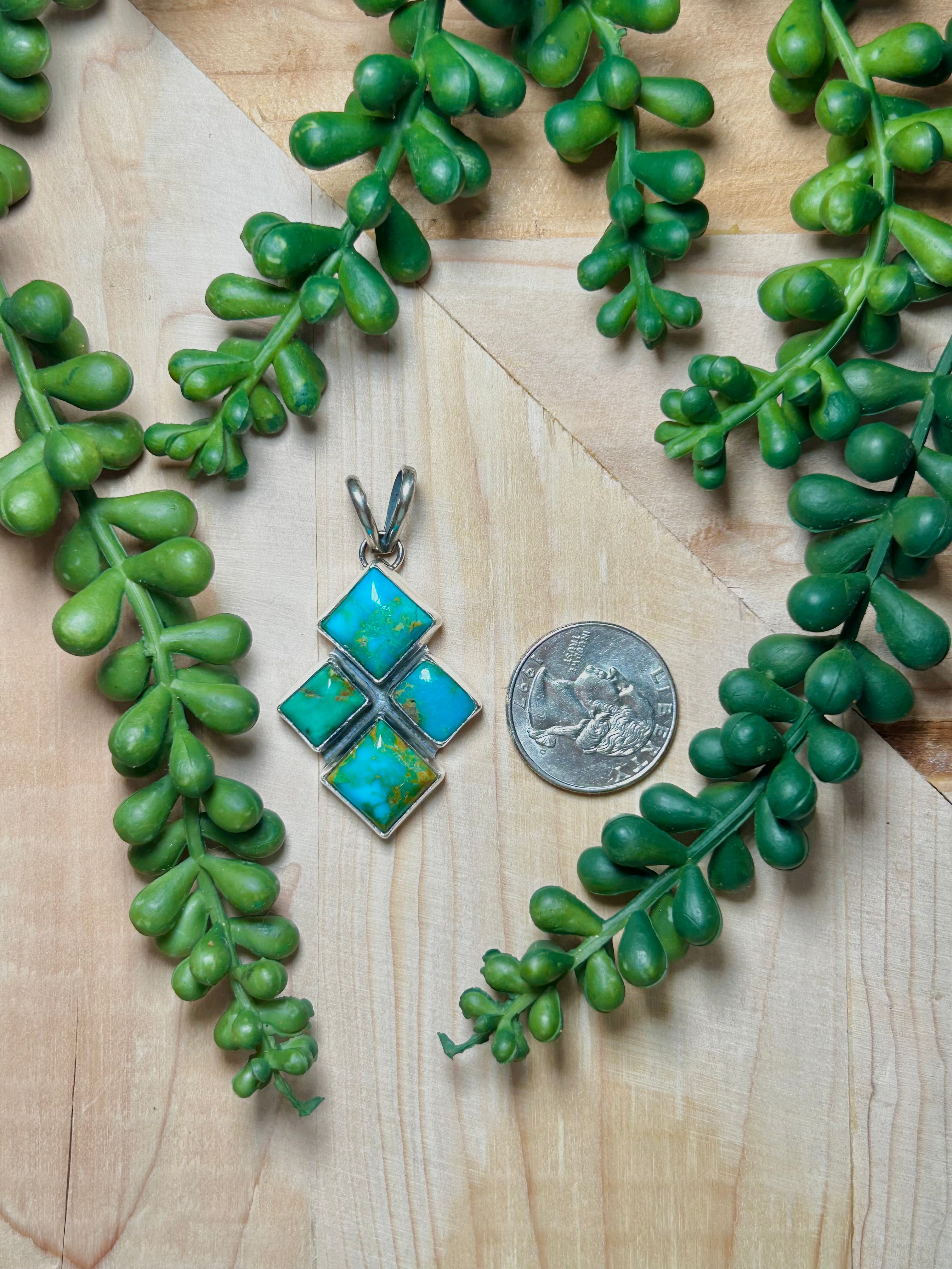 Navajo Made Kingman Turquoise & Sterling Silver Cluster Pendant