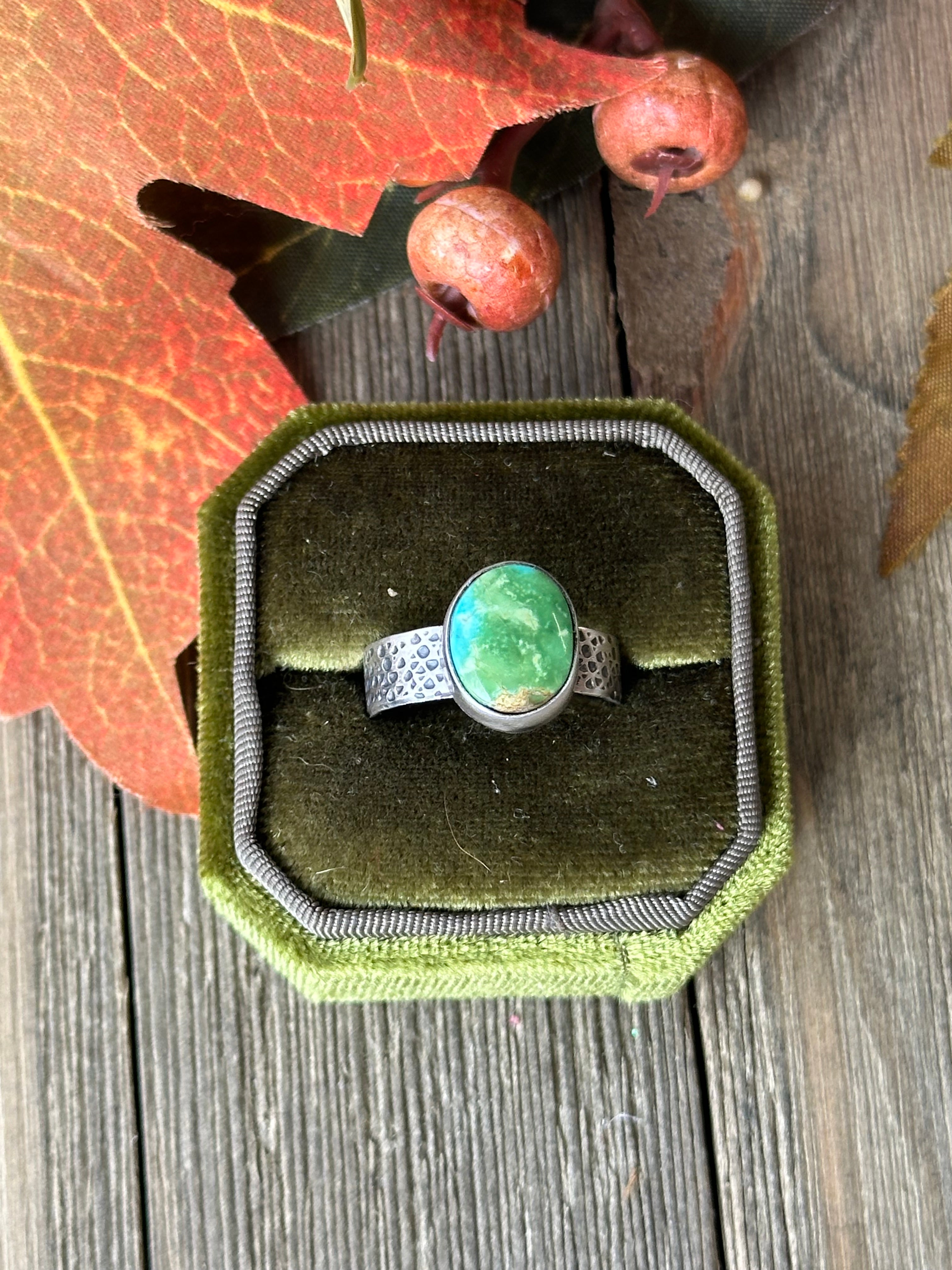 Beautiful ring. Scott Skeets Sonoran Gold Turquoise & Sterling Silver Ring. It measure 1/2 of an inch round. Signed by the artist and stamped sterling silver.