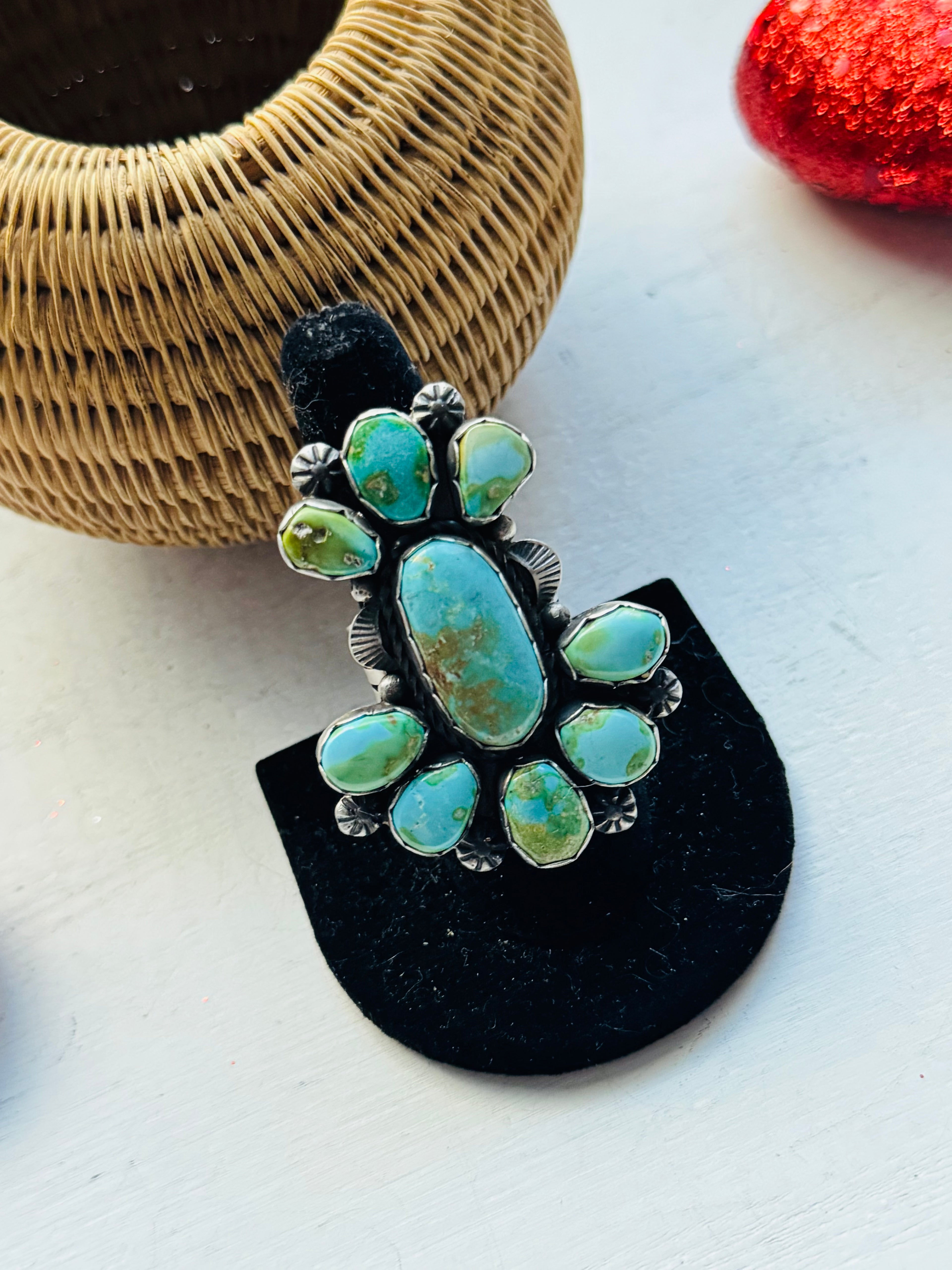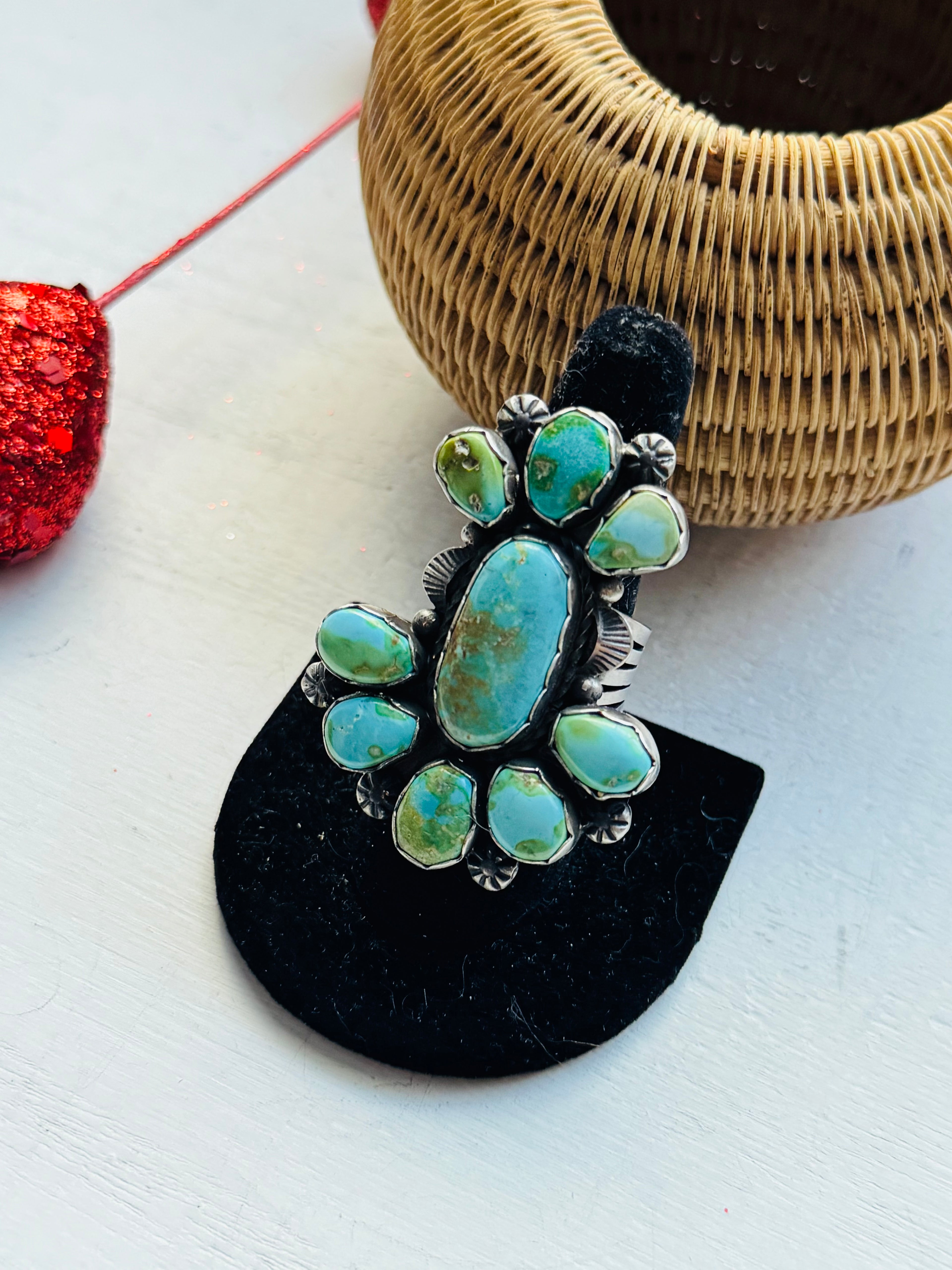 Scott Skeets Sonoran Mountain Turquoise & Sterling Silver Cluster Ring Size 8.25