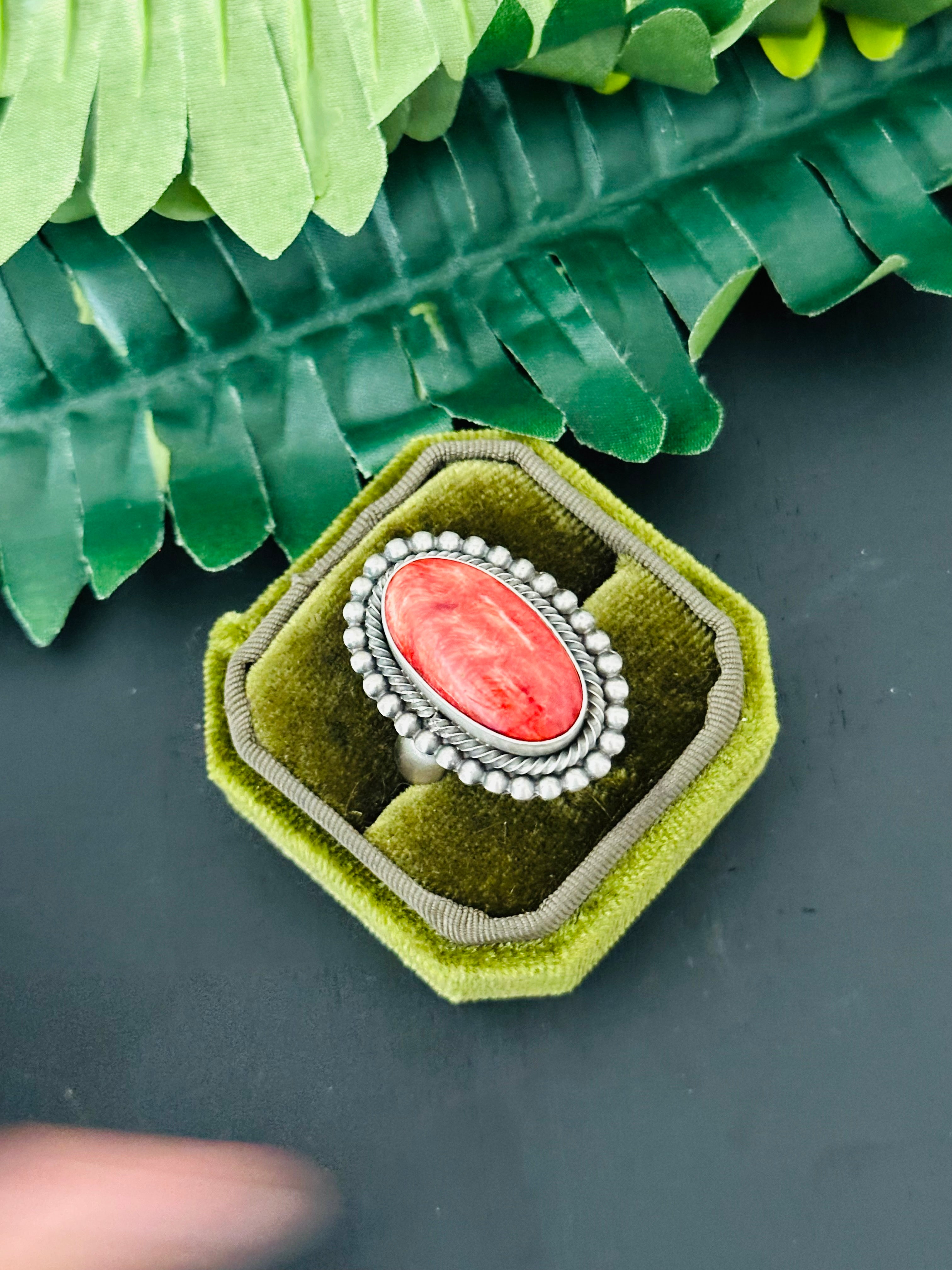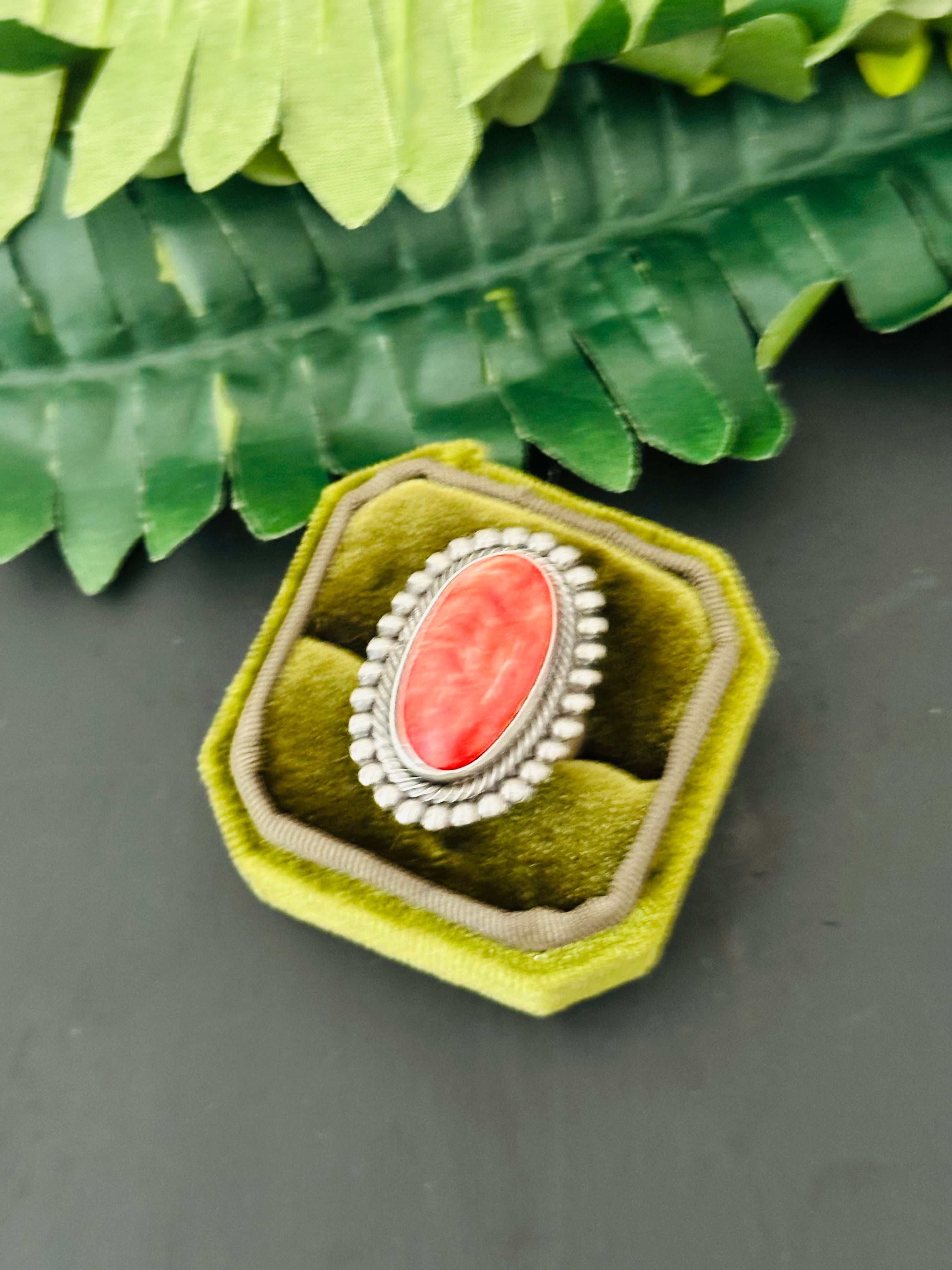 Scott Skeets Spiny Oyster & Sterling Silver Ring Size 10