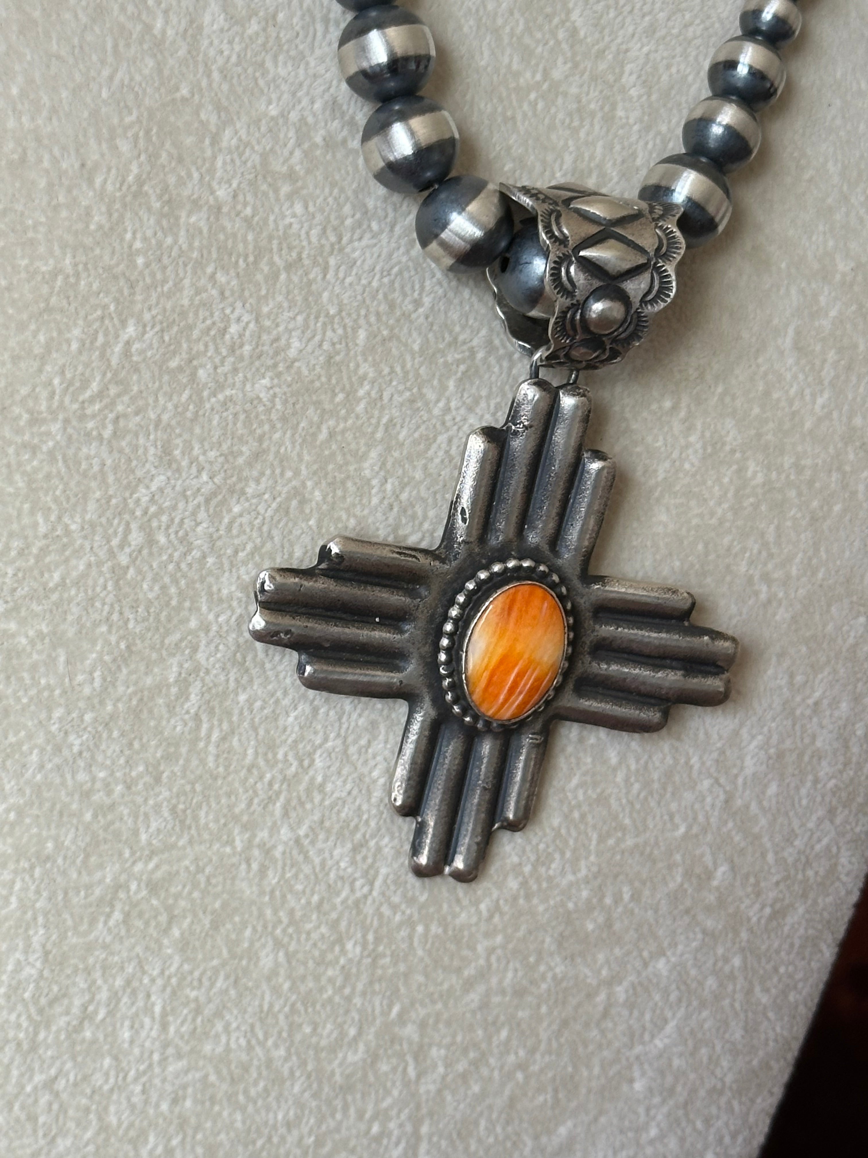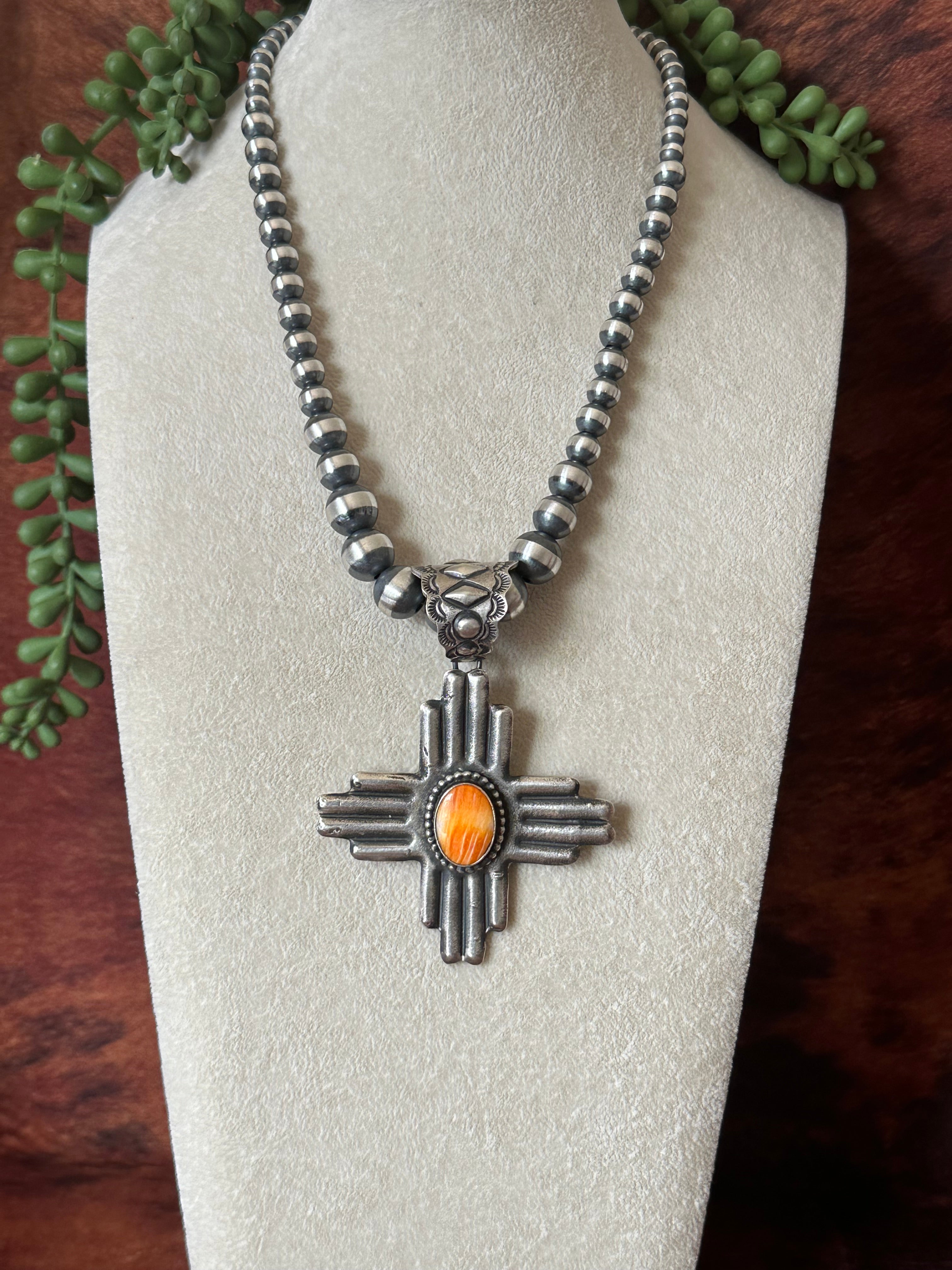 Shawn Cayatineto Spiny Oyster & Sterling Silver Zia Pendant