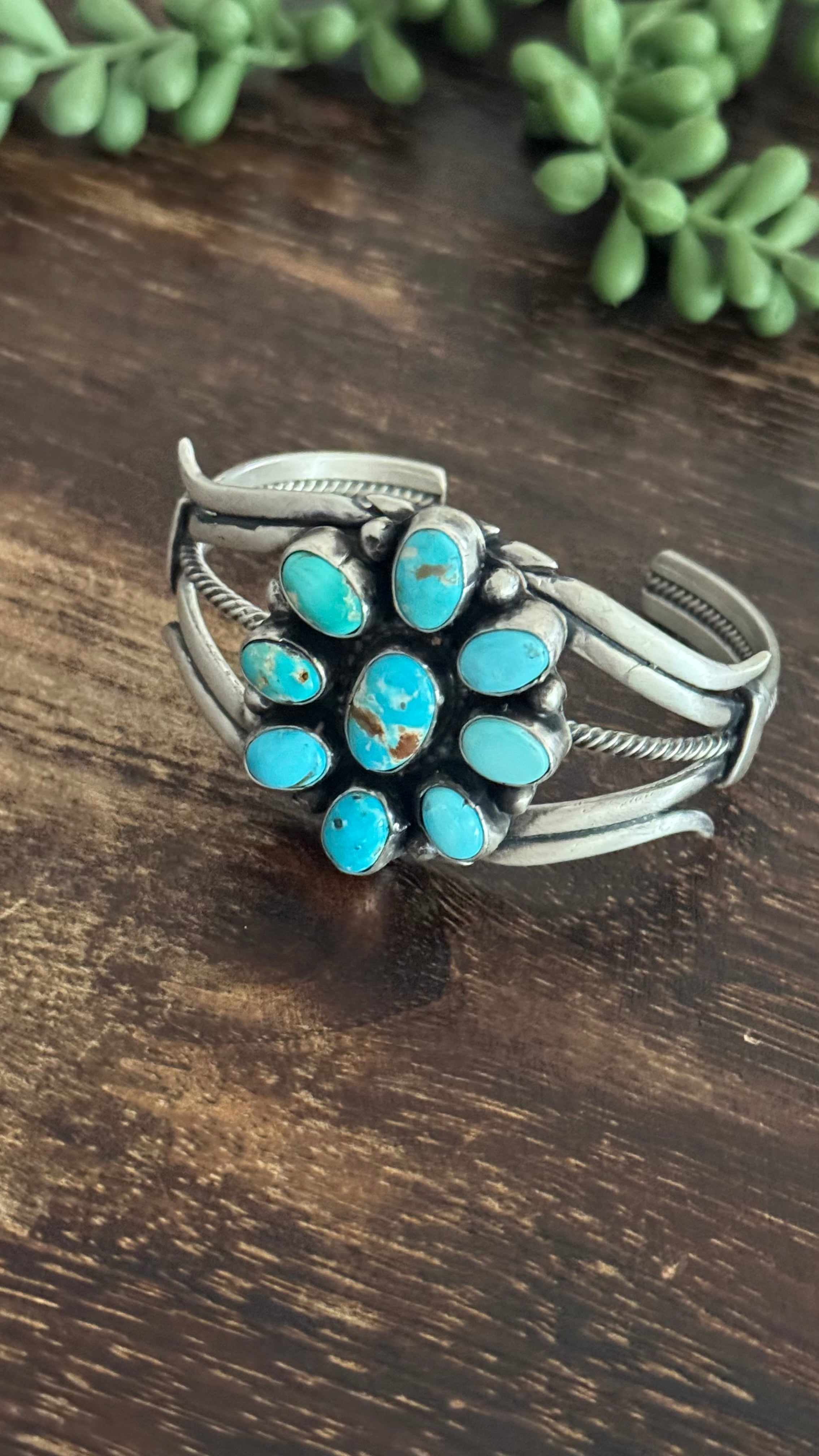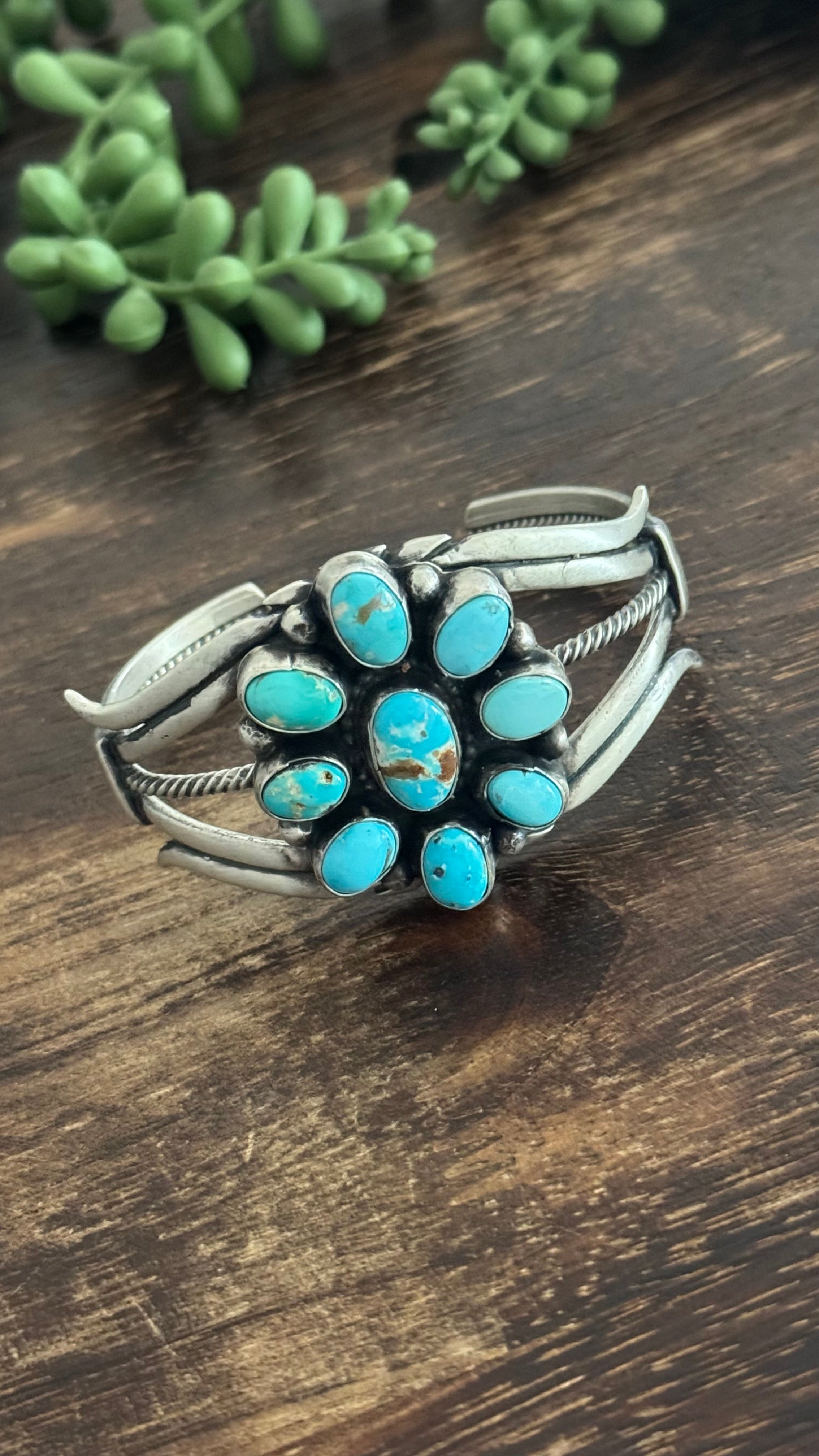 Sheila Becenti Royston Turquoise & Sterling Silver Cluster Cuff Bracelet