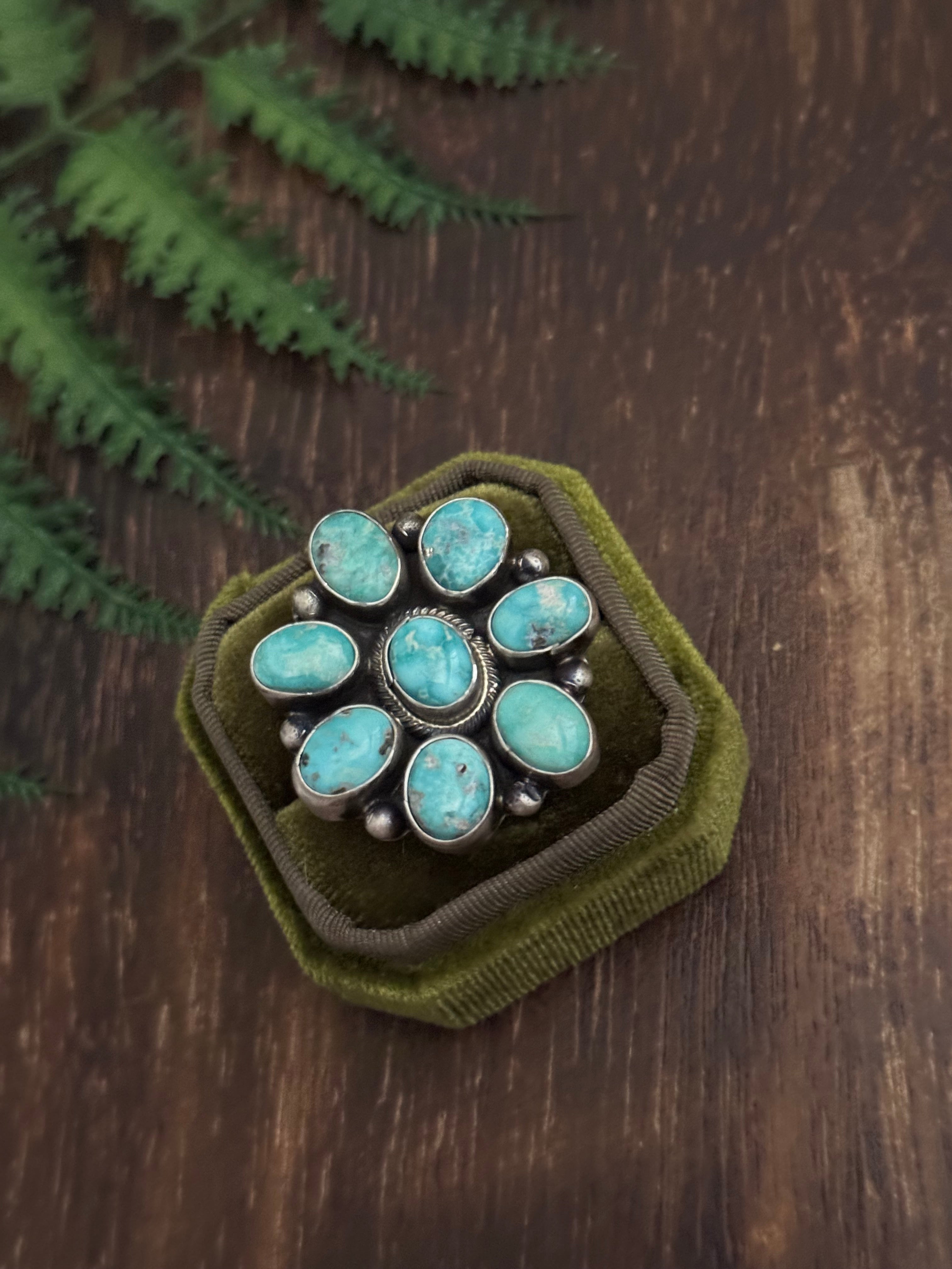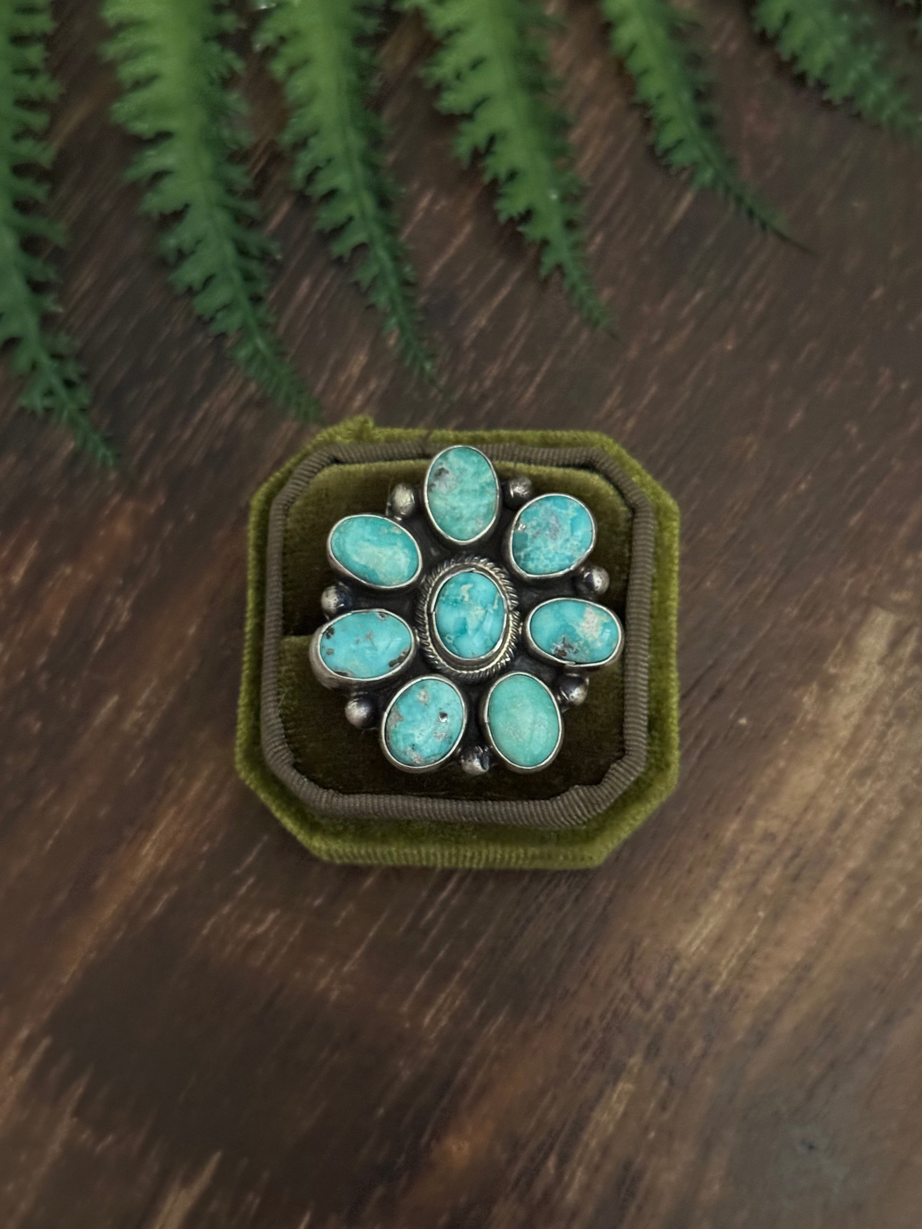 Ella Peters Made White Water Turquoise & Sterling Sliver Cluster Ring Size 8