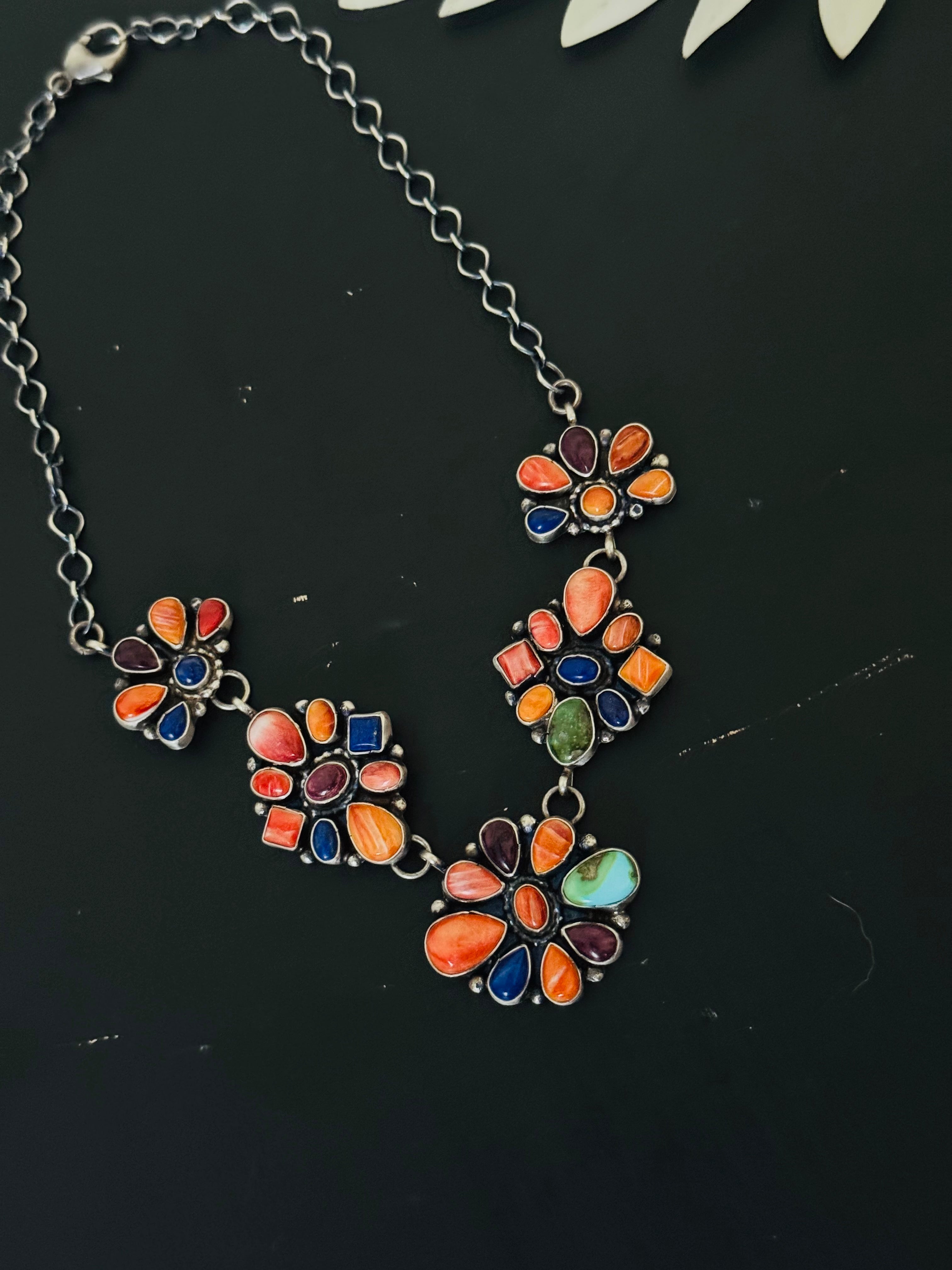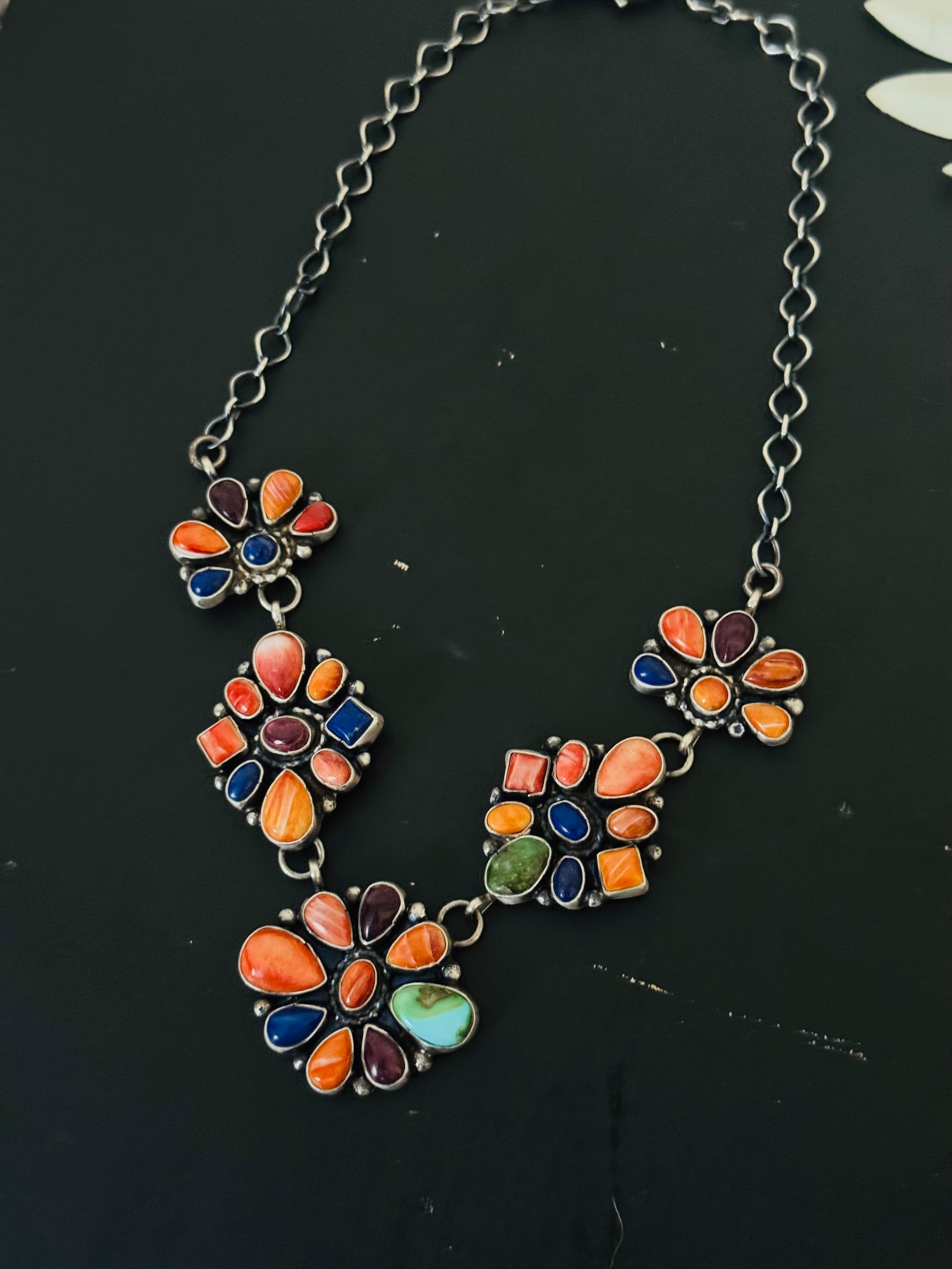 Sheila Becenti Multi Stone & Sterling Silver Cluster Necklace