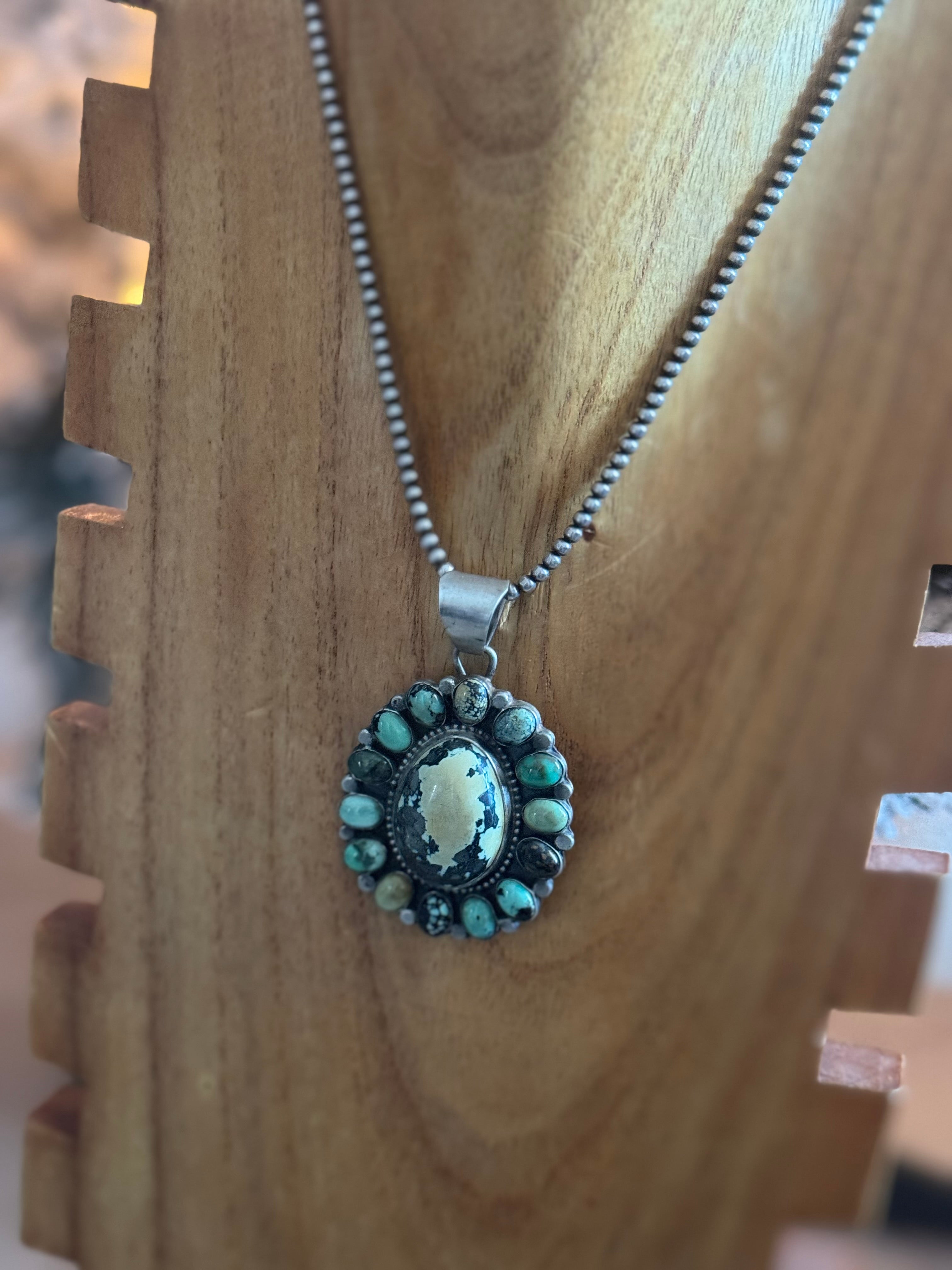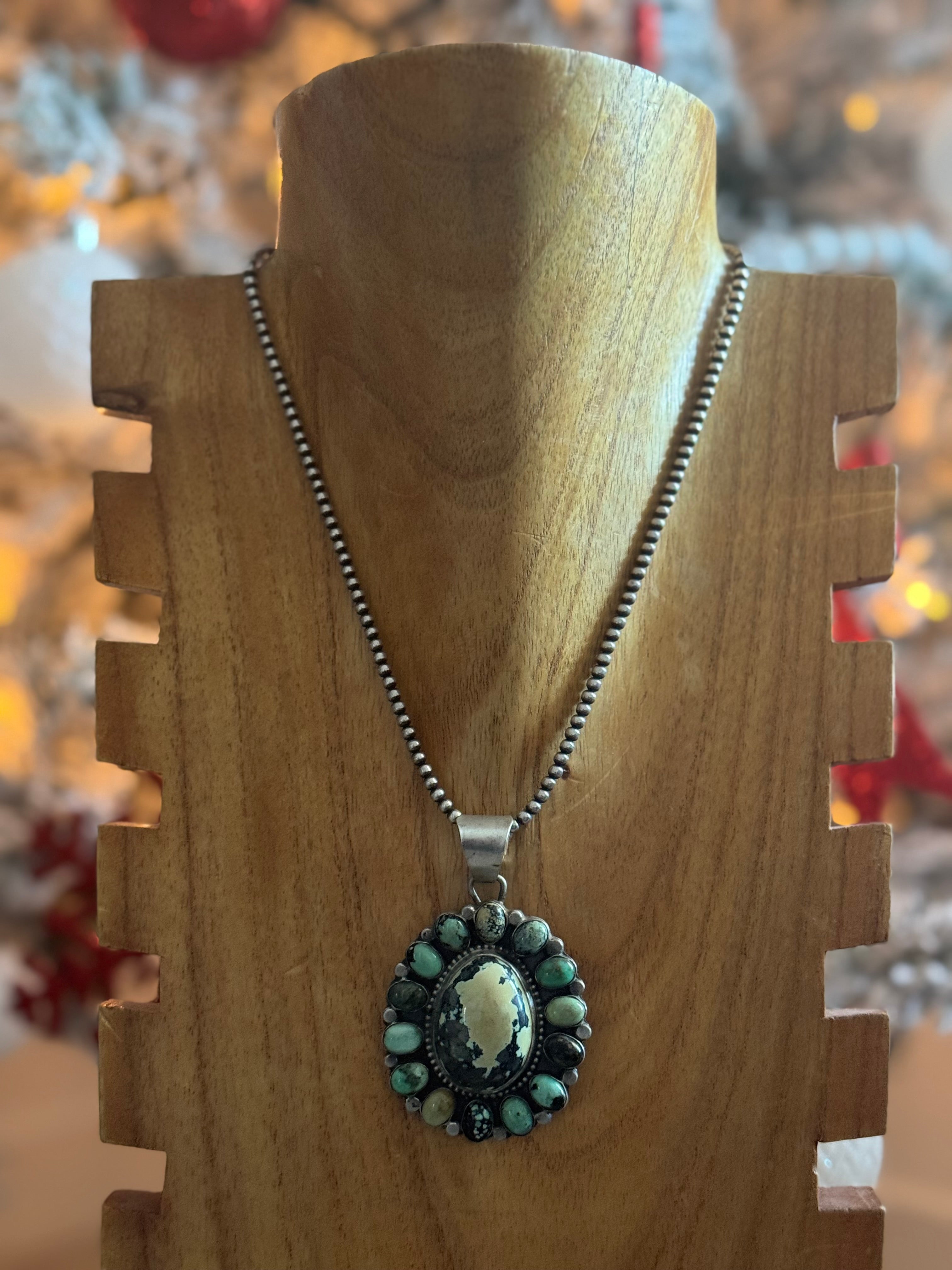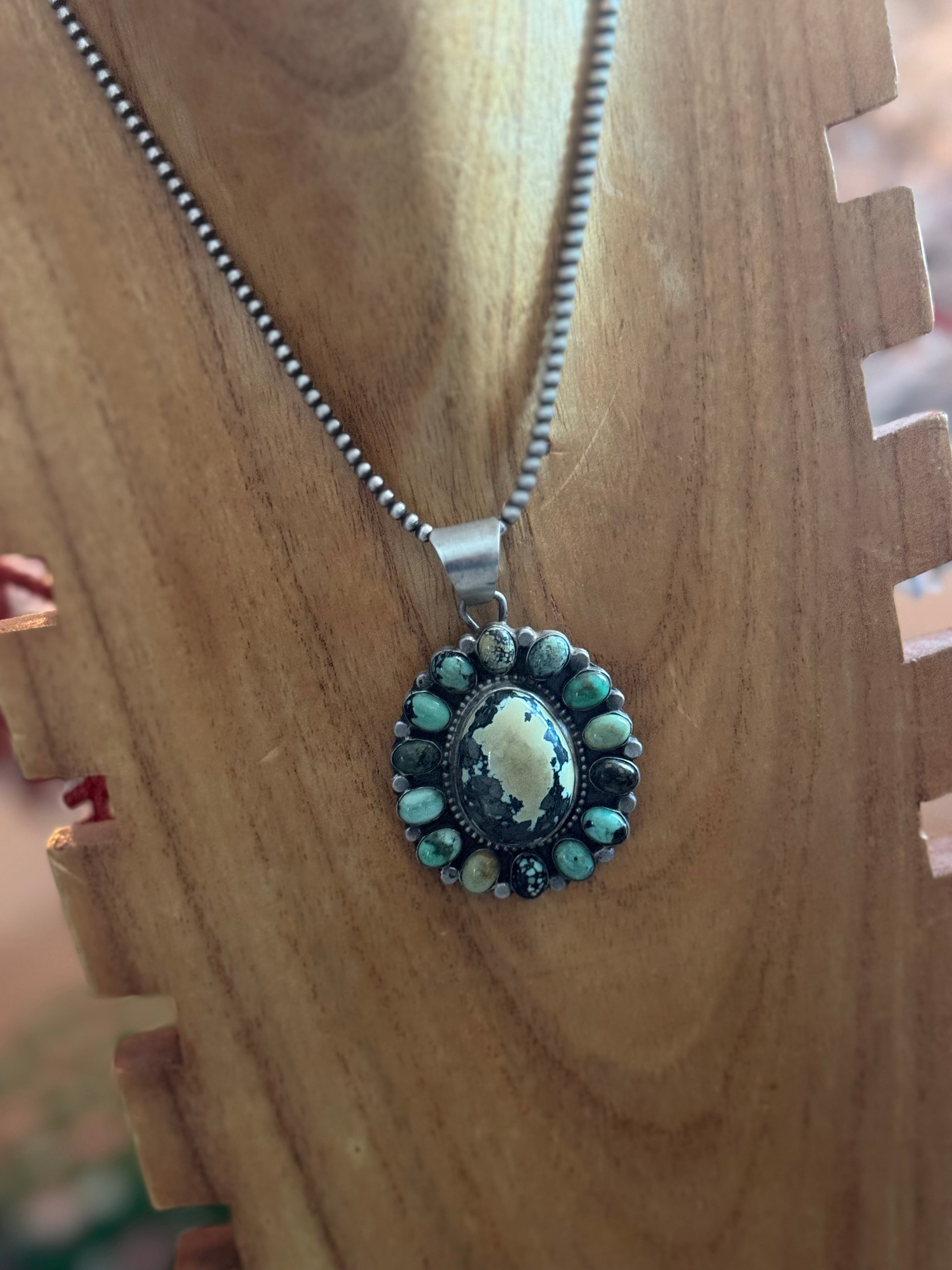 Sheila Becenti New Lander Variscite & Sterling Silver Cluster Pendant