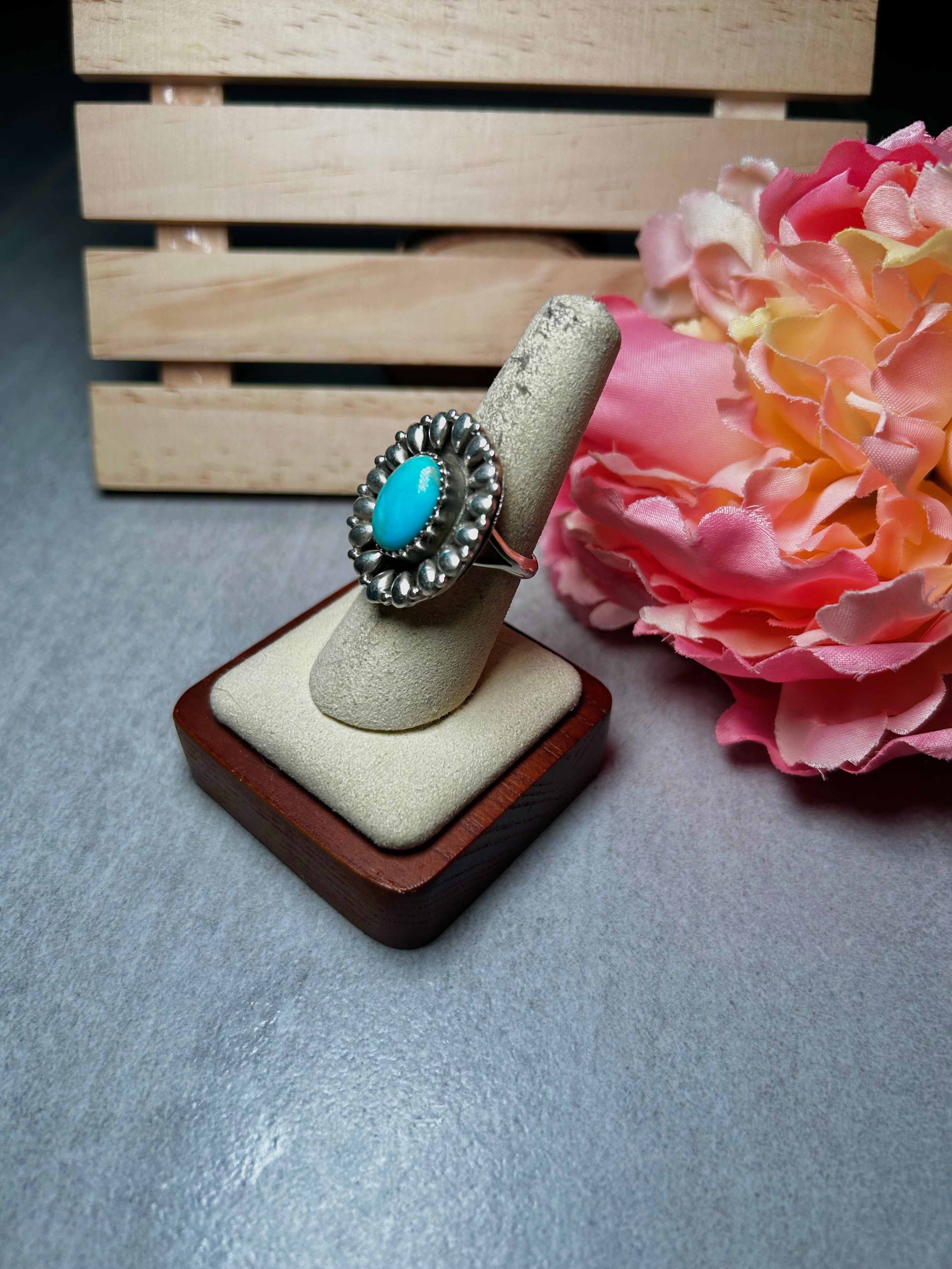 Navajo Made Kingman Turquoise & Sterling Silver Adjustable Ring