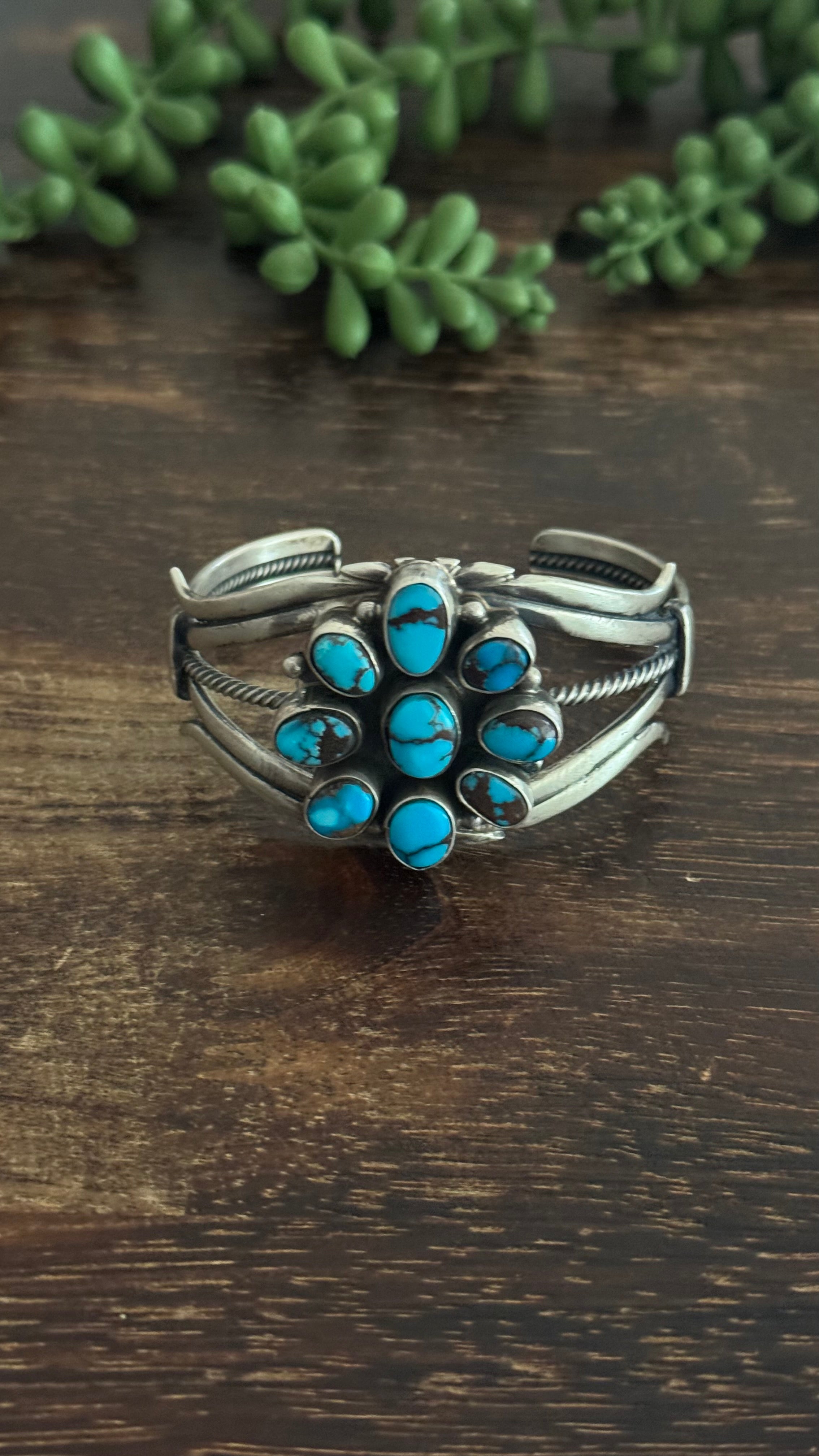 Mark Yazzie Egyptian Turquoise & Sterling Silver Cluster Cuff Bracelet