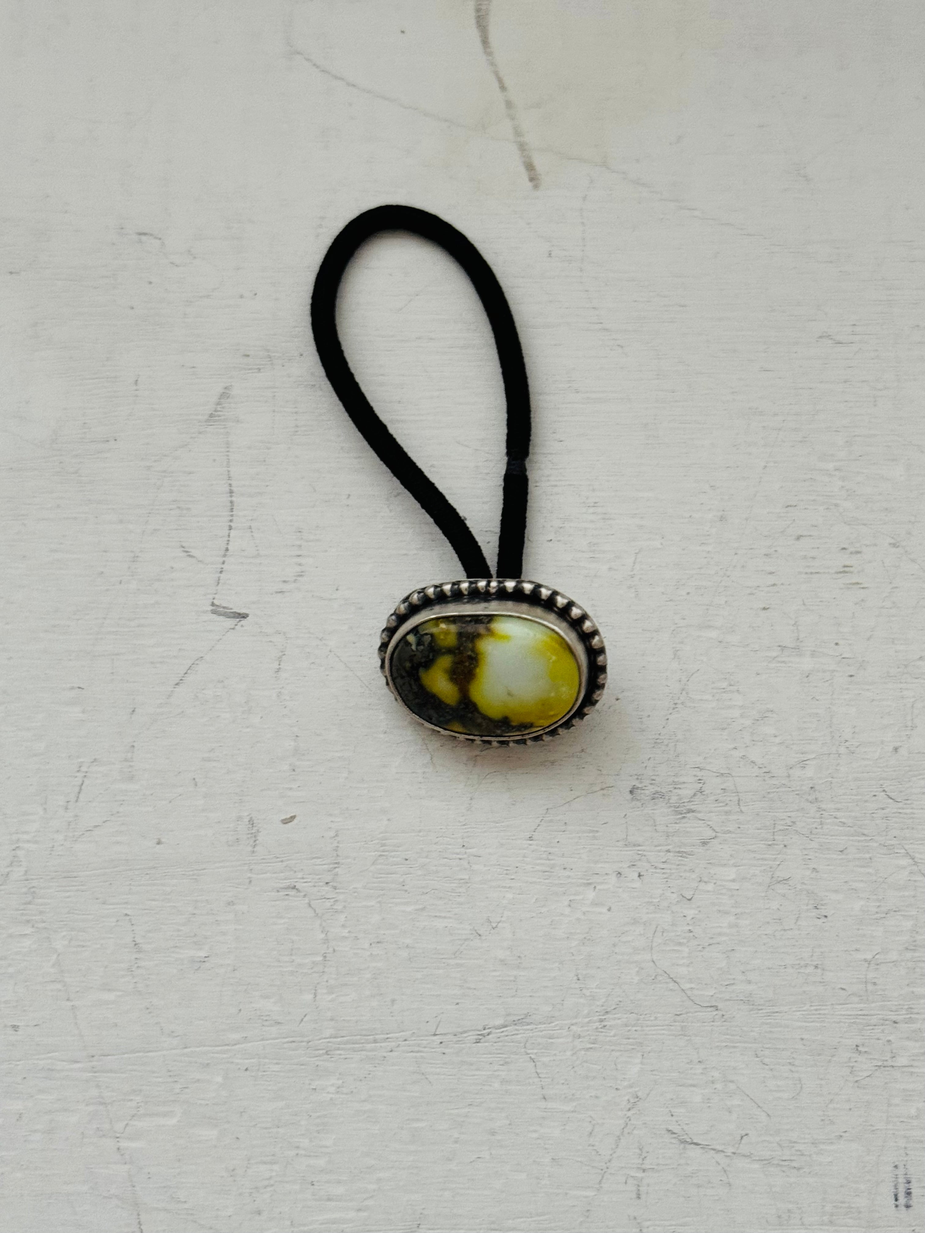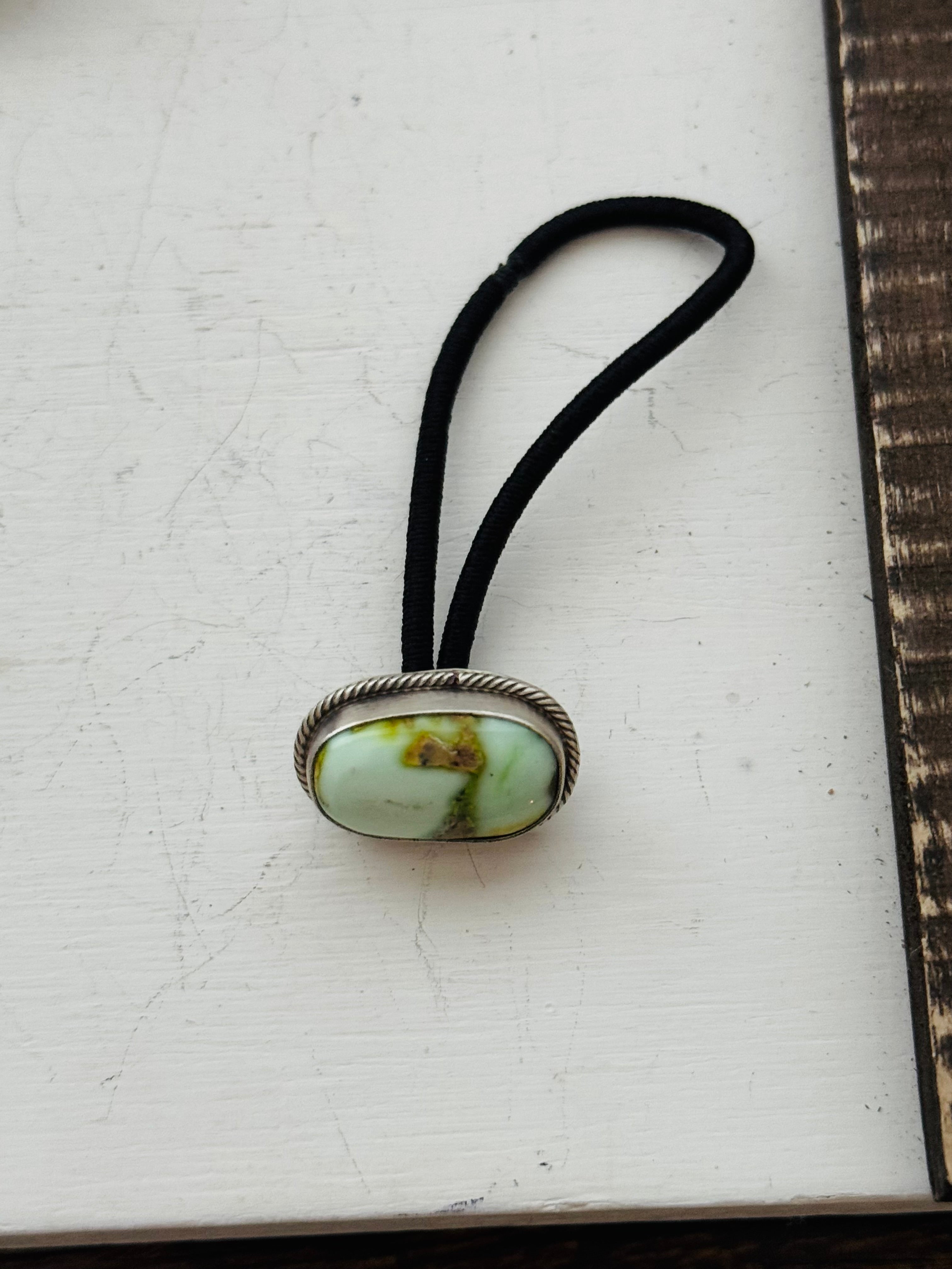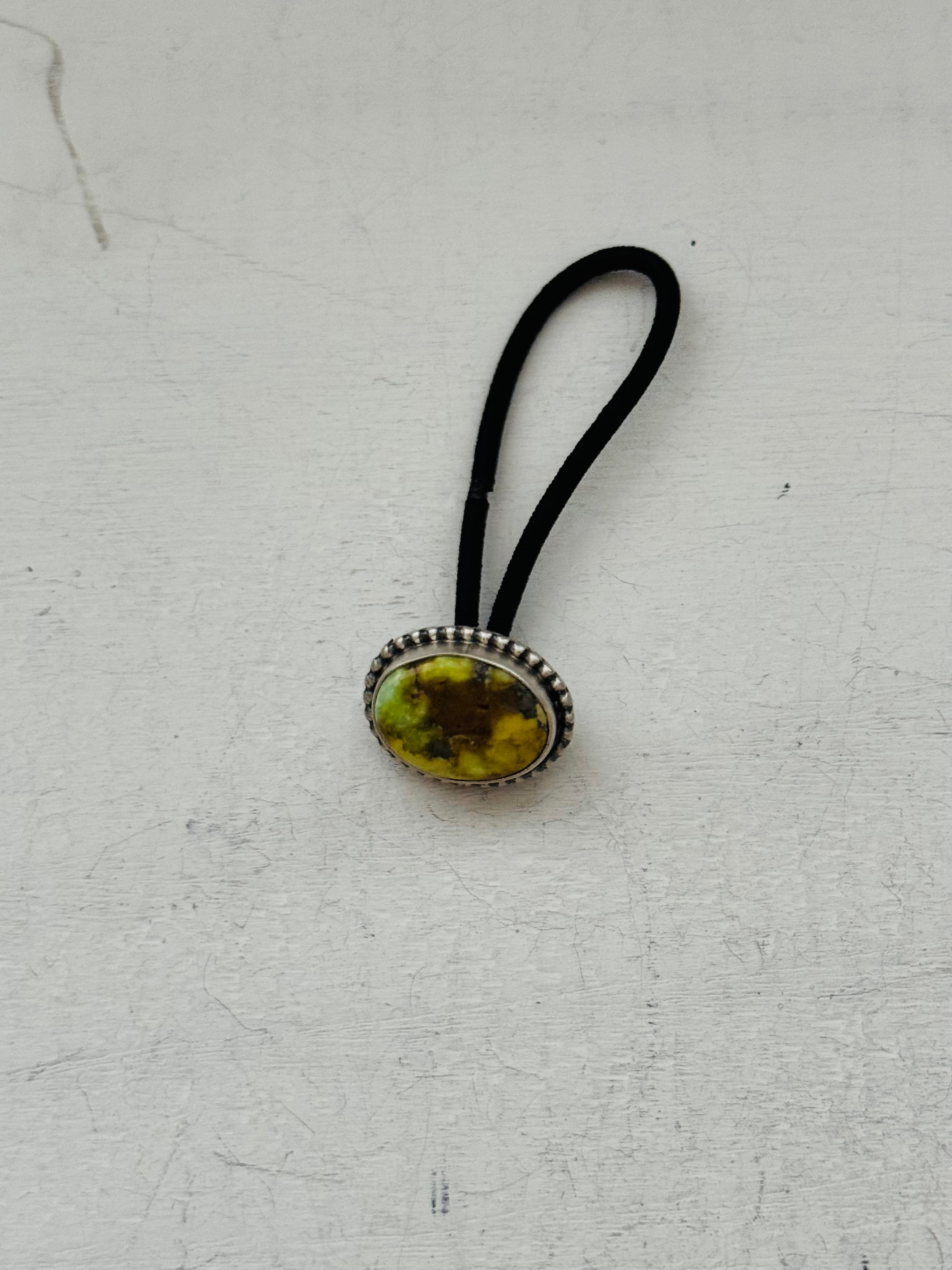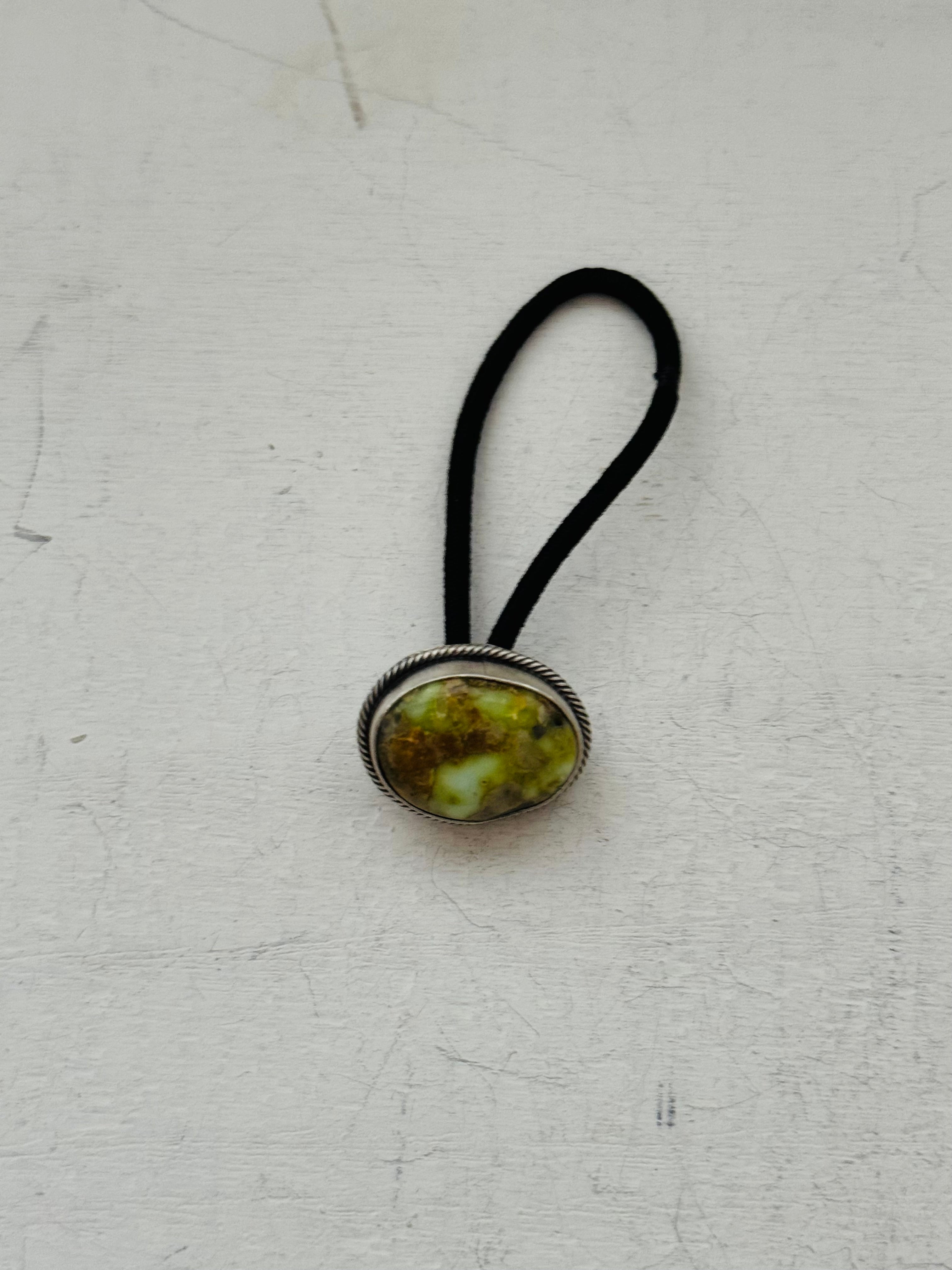 Eddie Yazzie Palomino Variscite & Sterling Silver Ponytail Holder