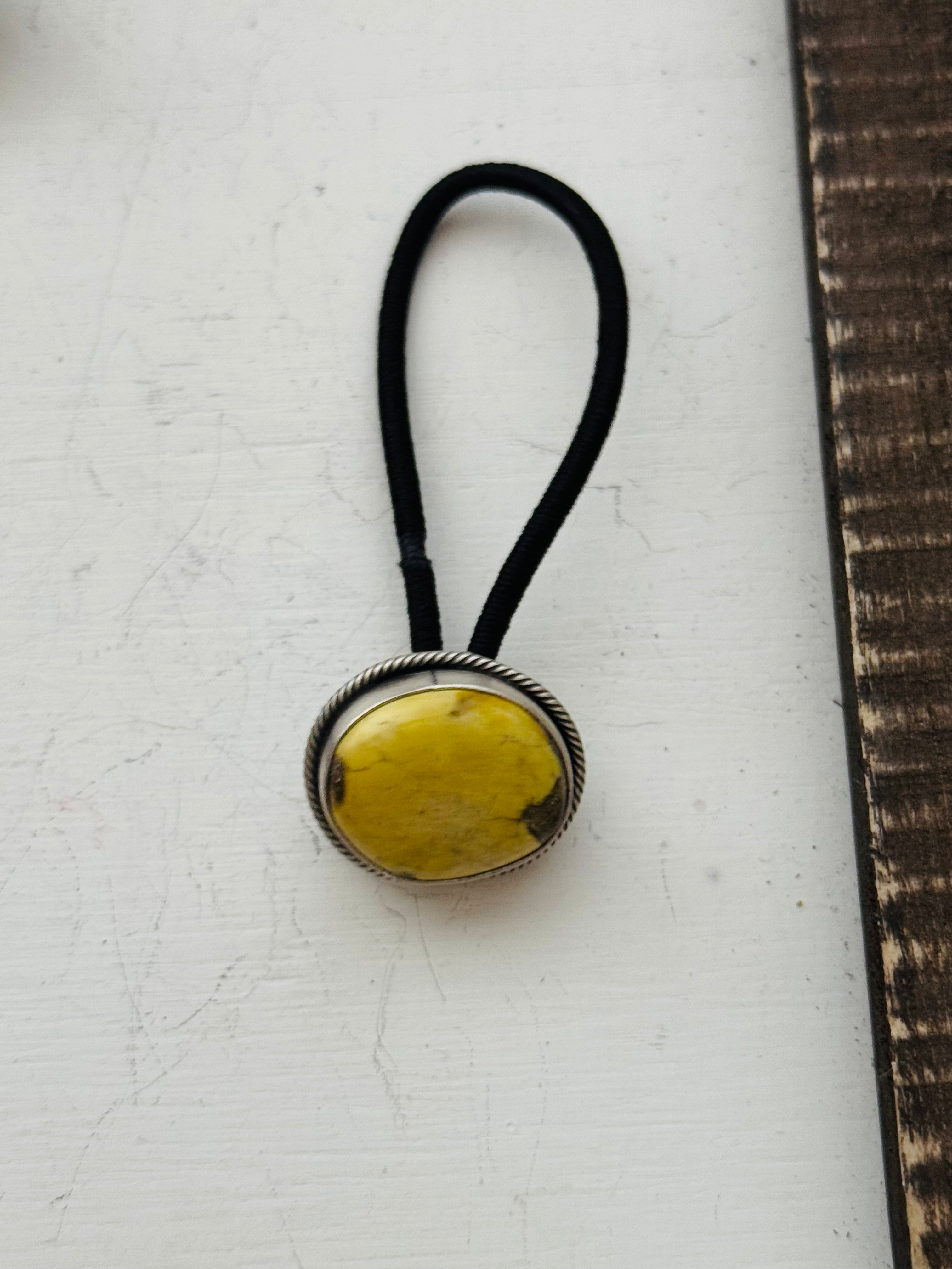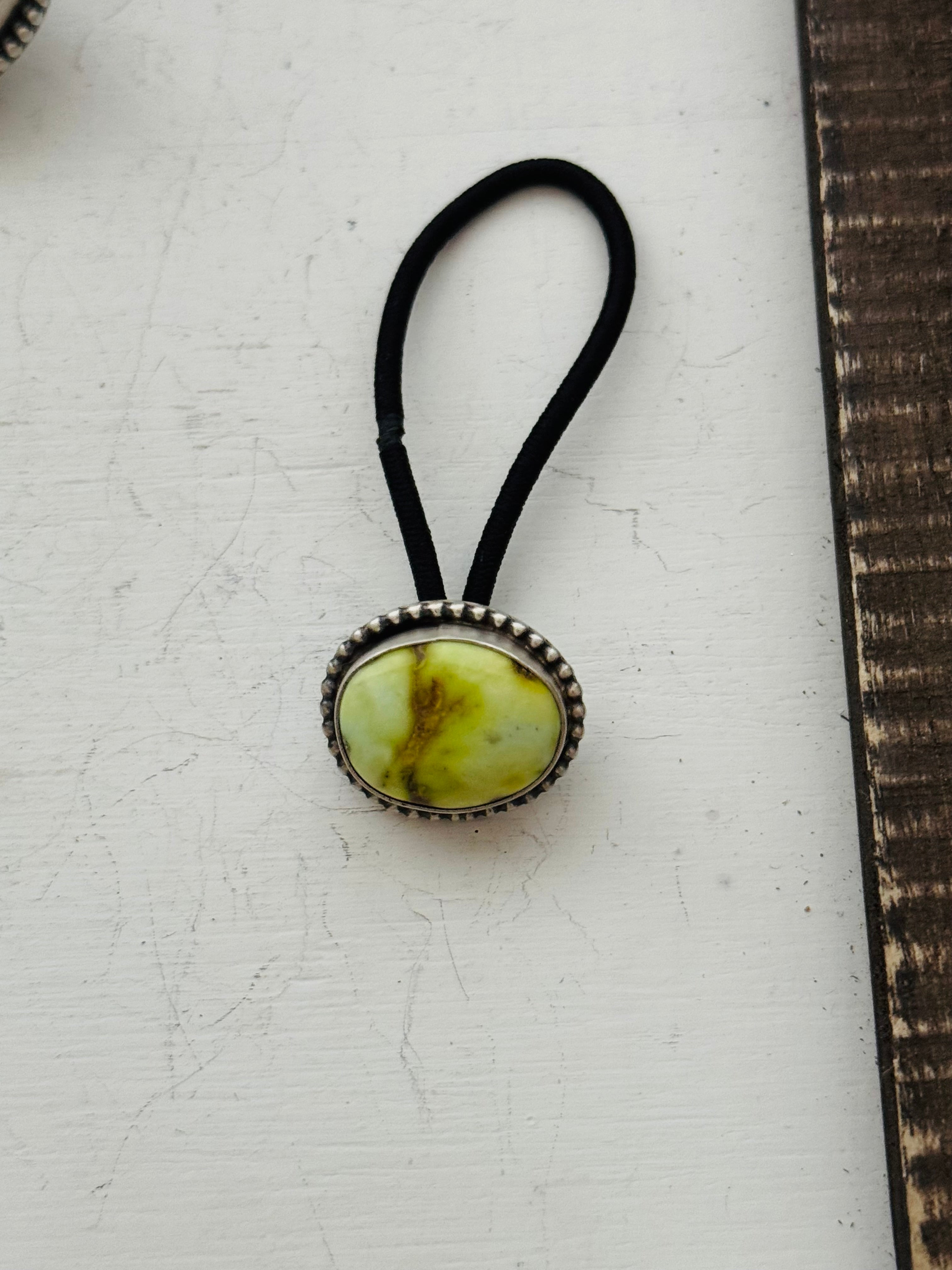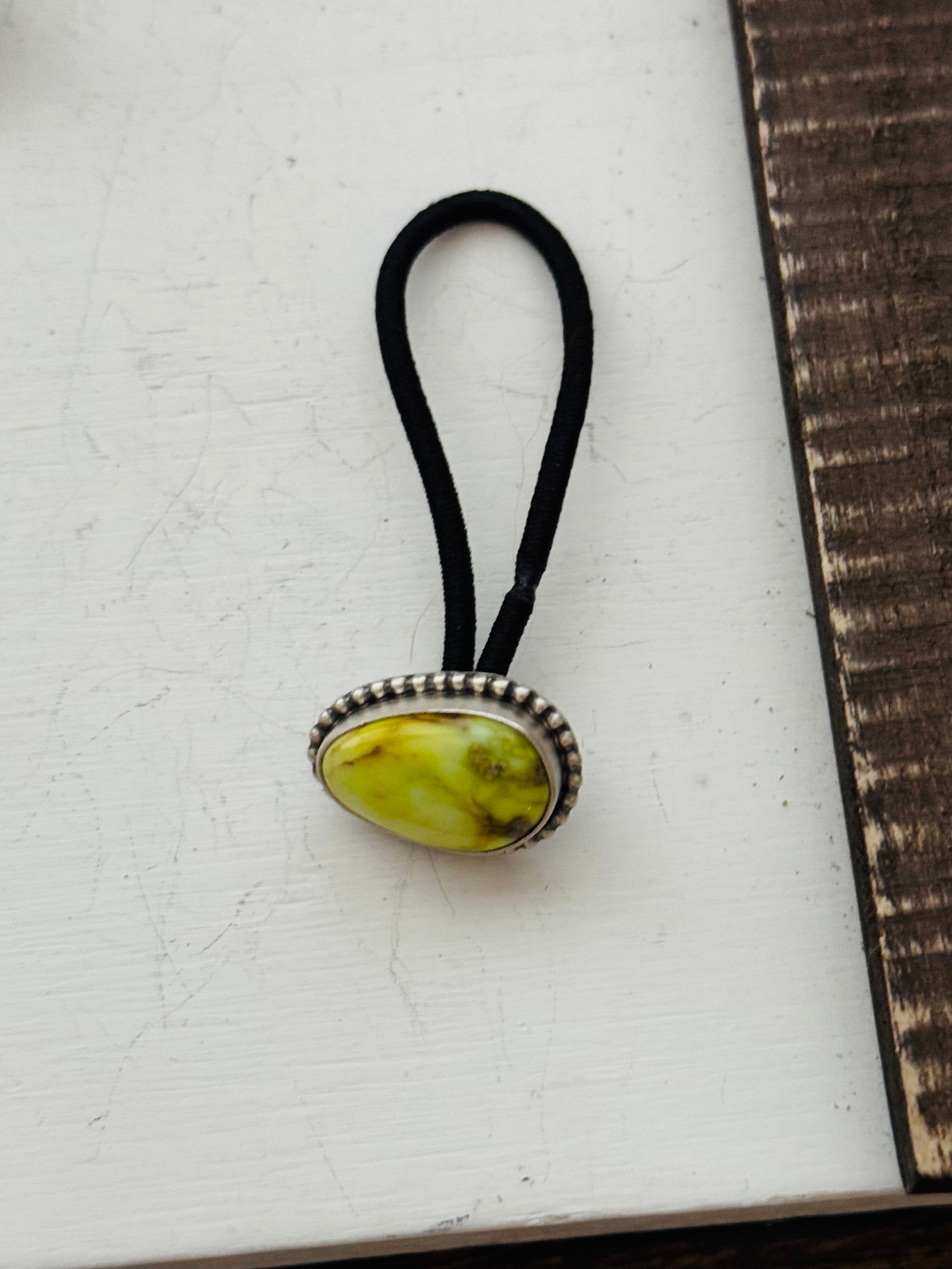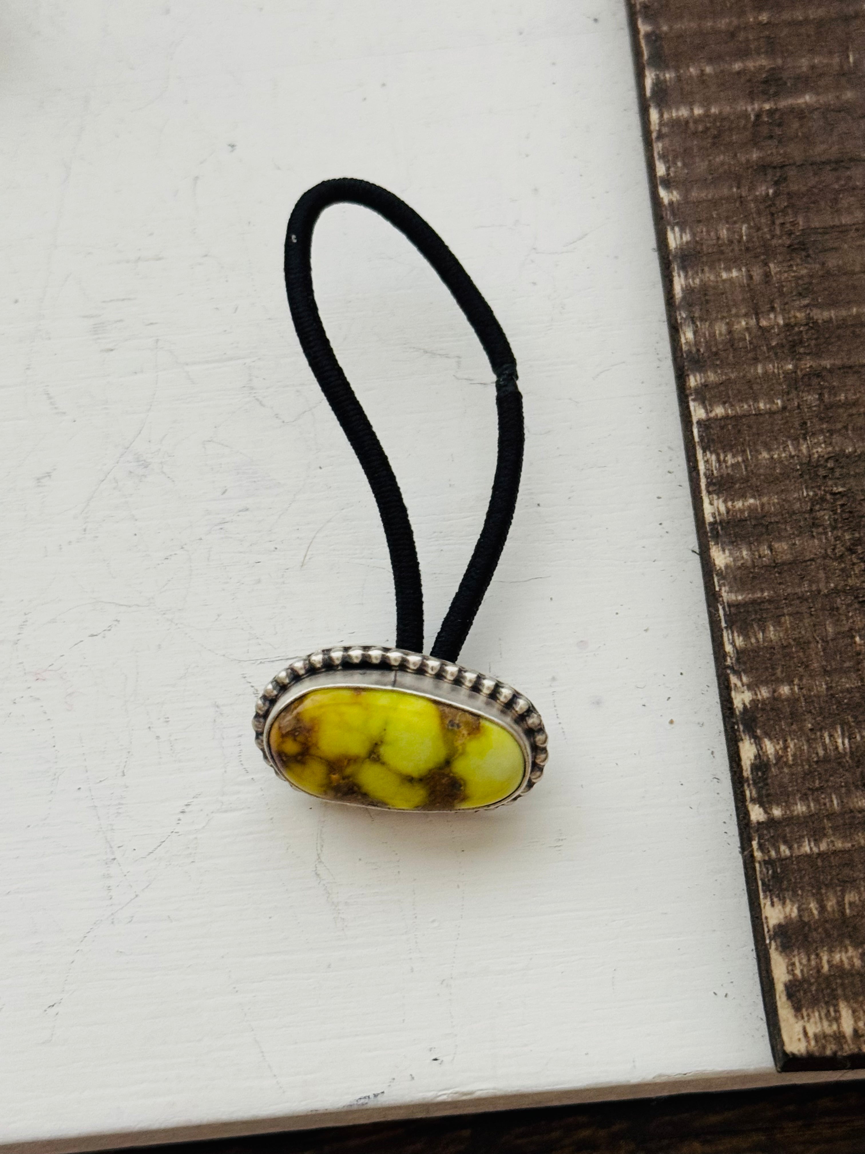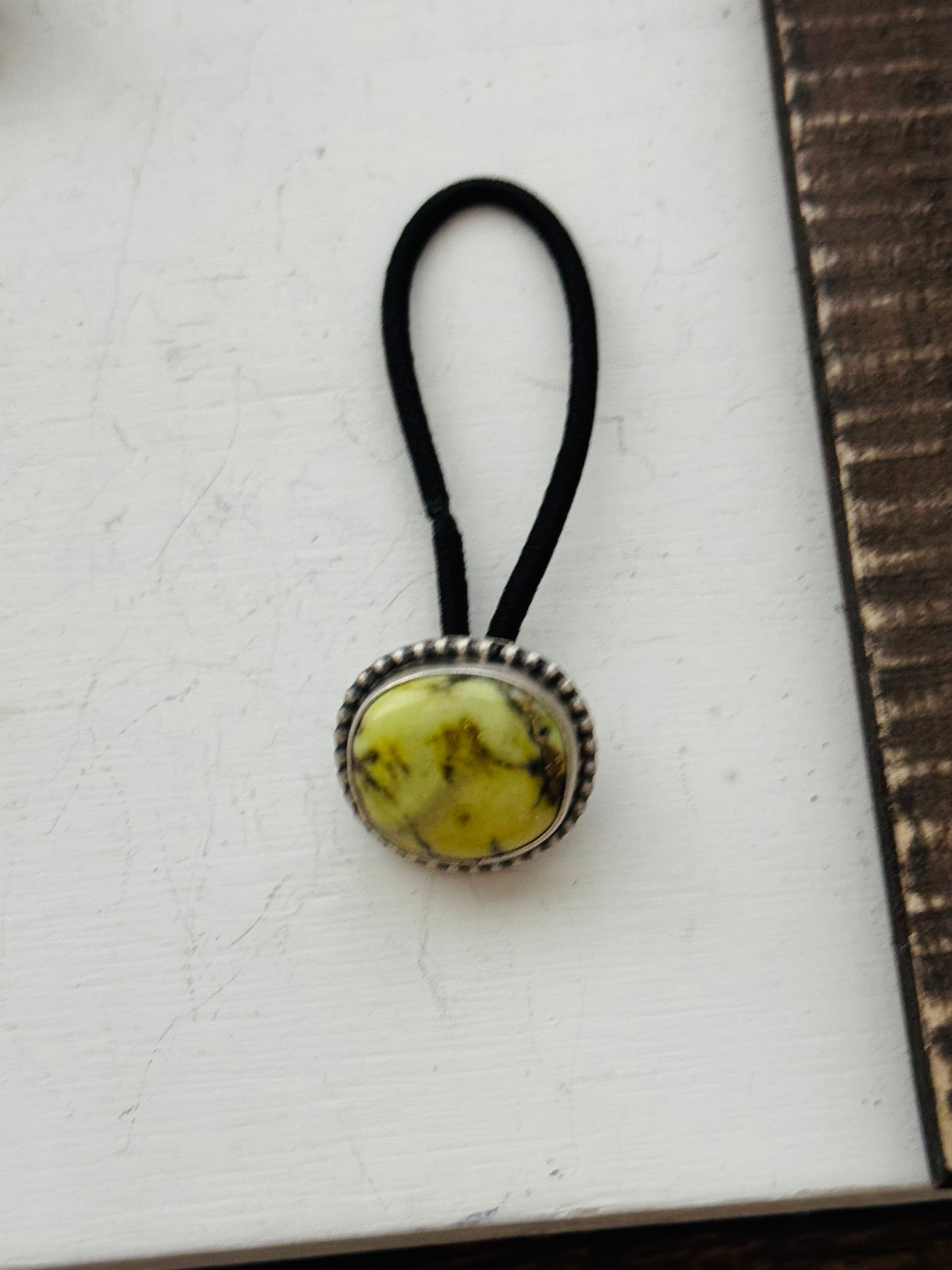 Eddie Yazzie Palomino Variscite & Sterling Silver Ponytail Holder