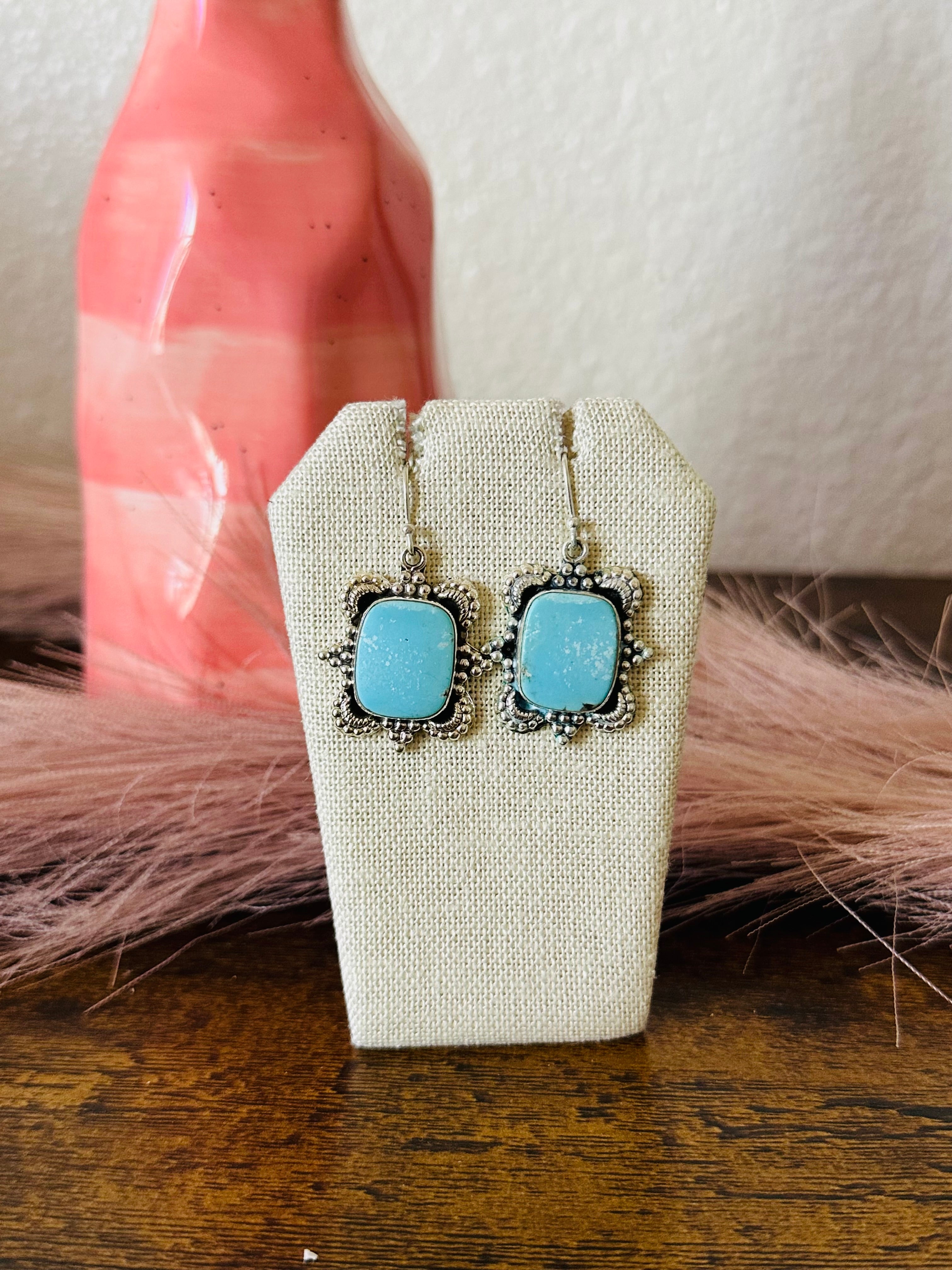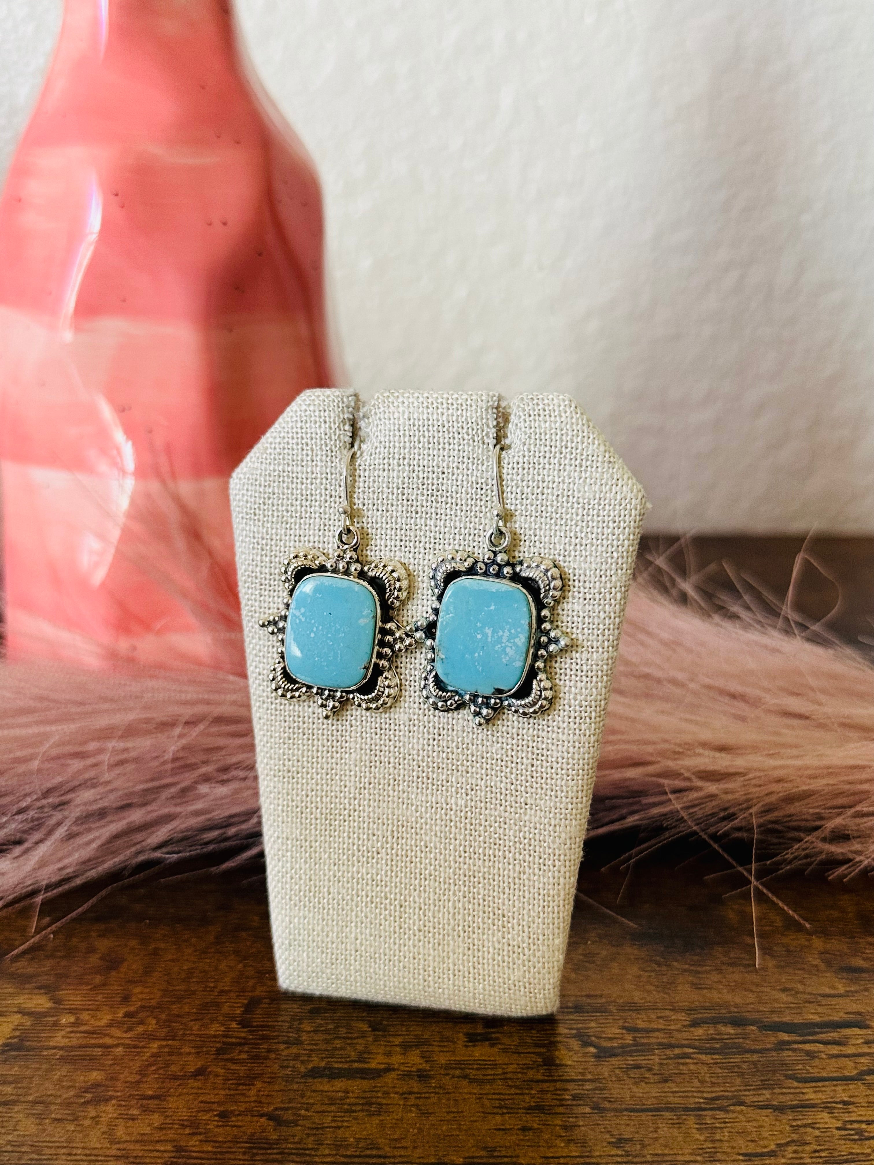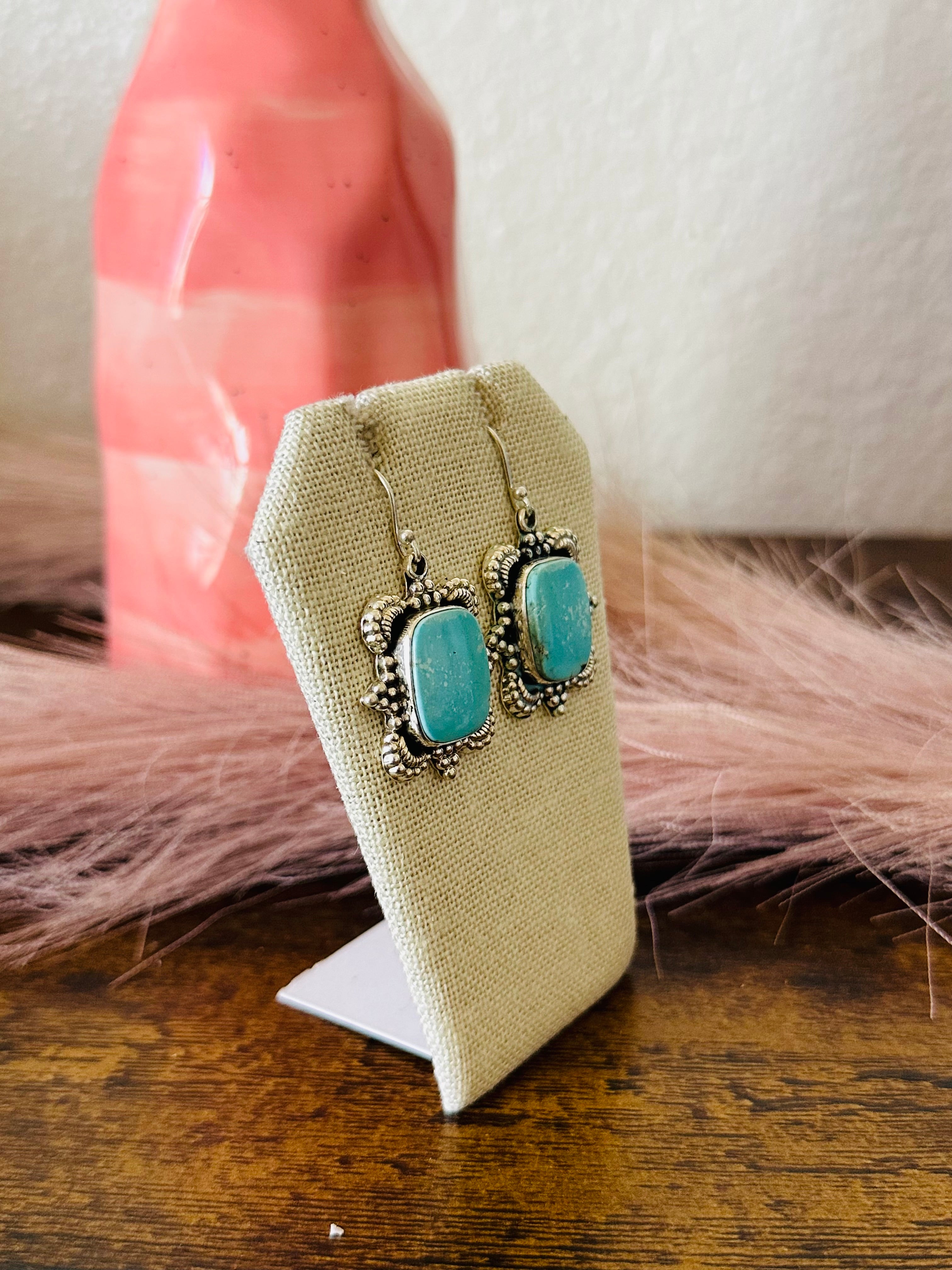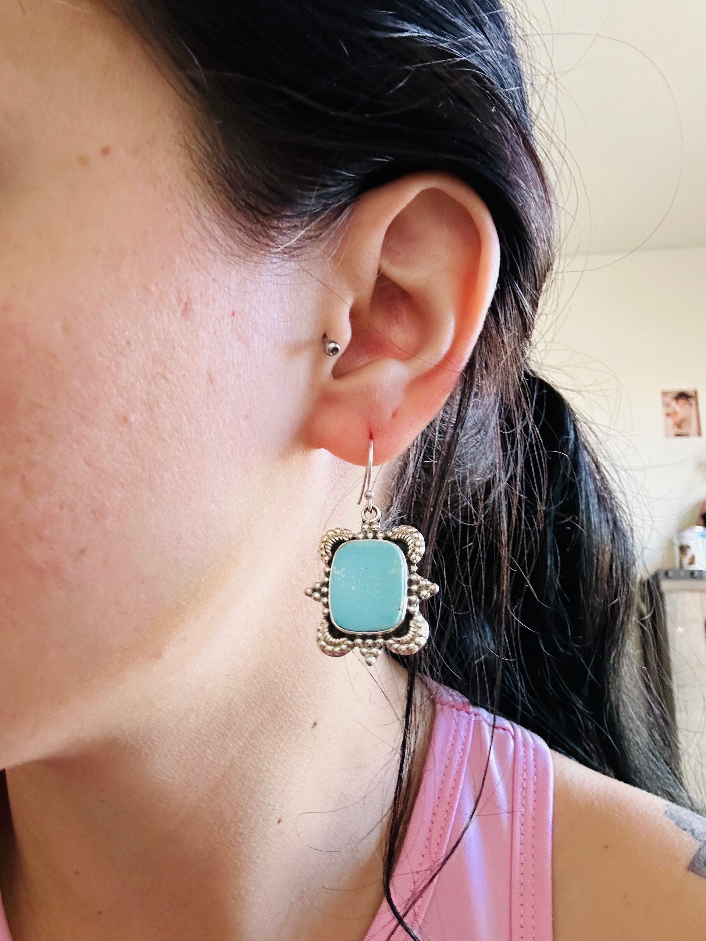Southwest Handmade #8 Turquoise & Sterling Silver Dangle Earrings