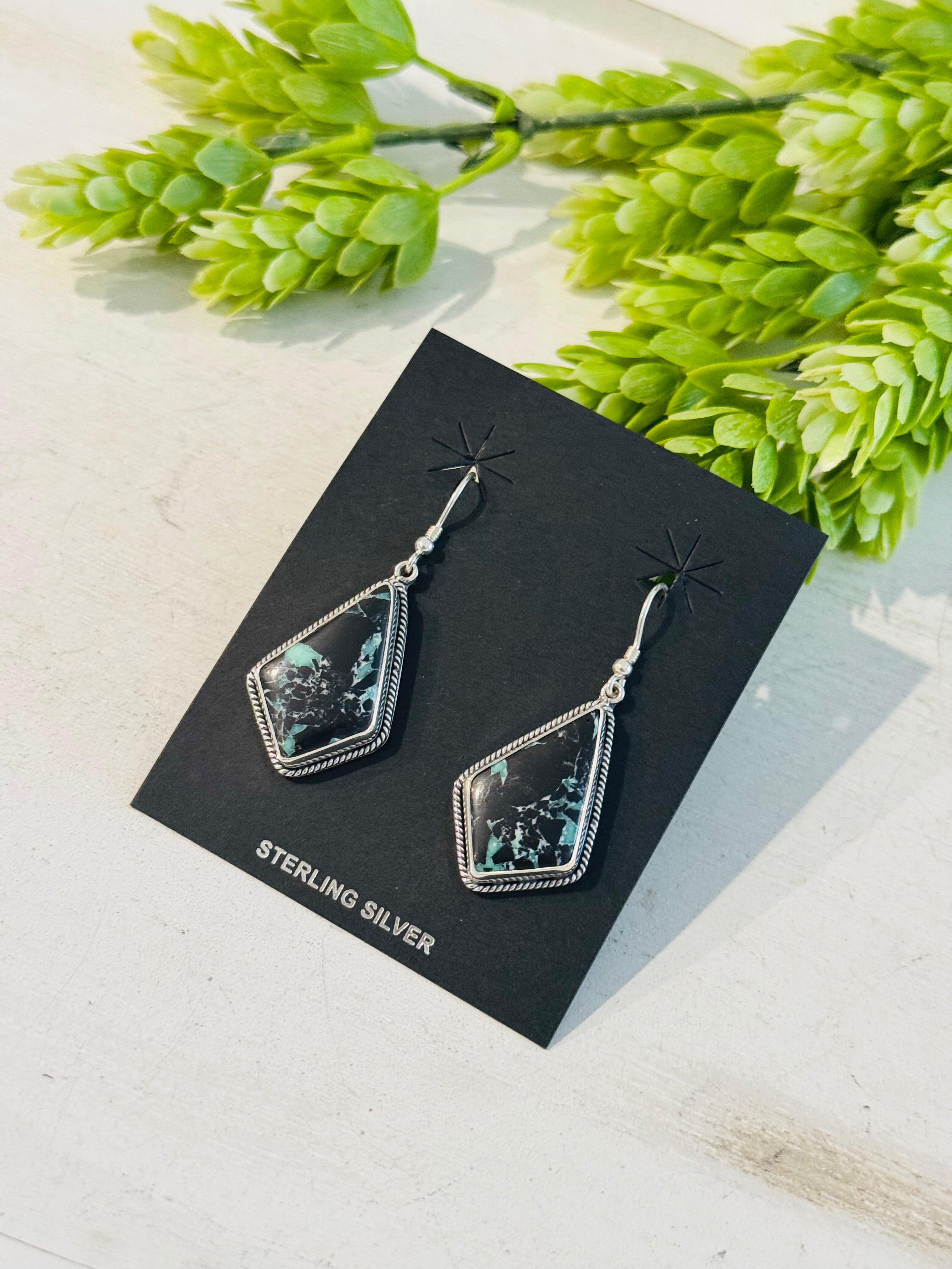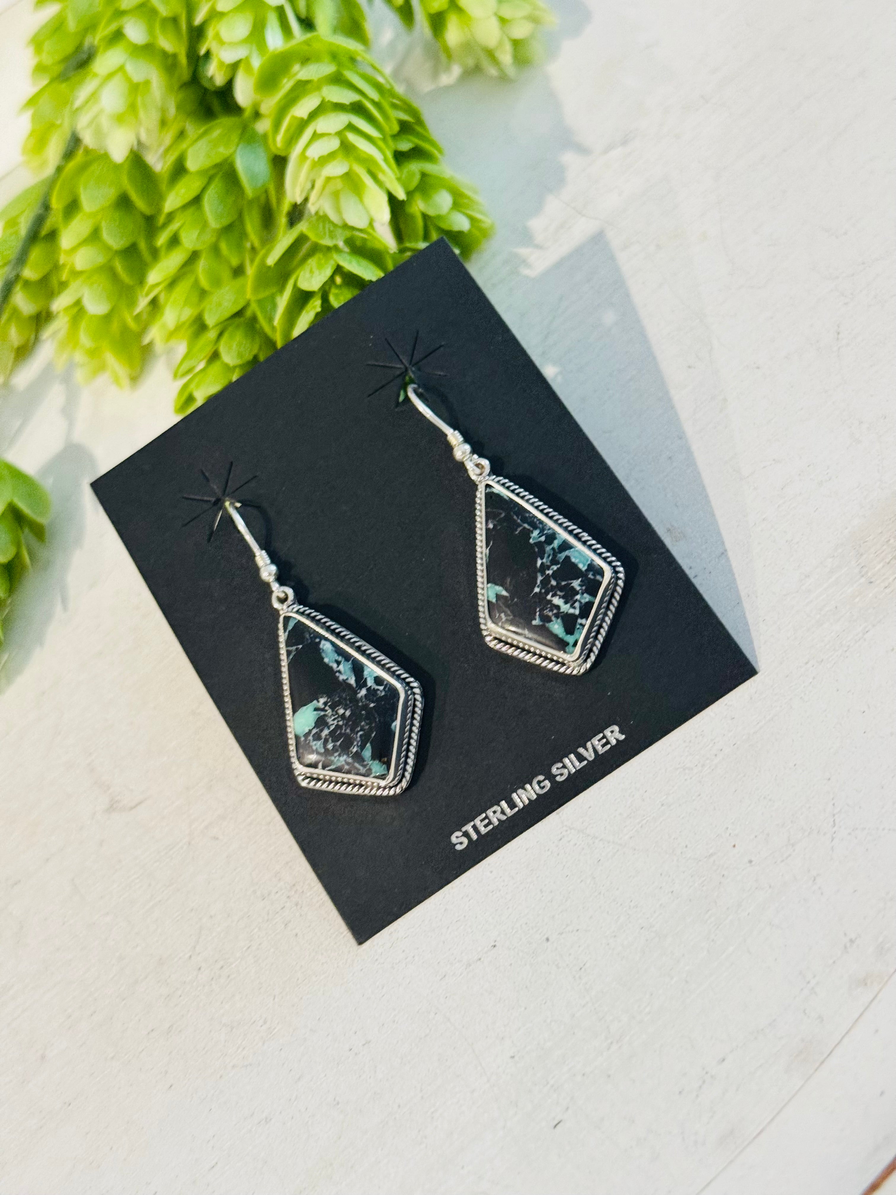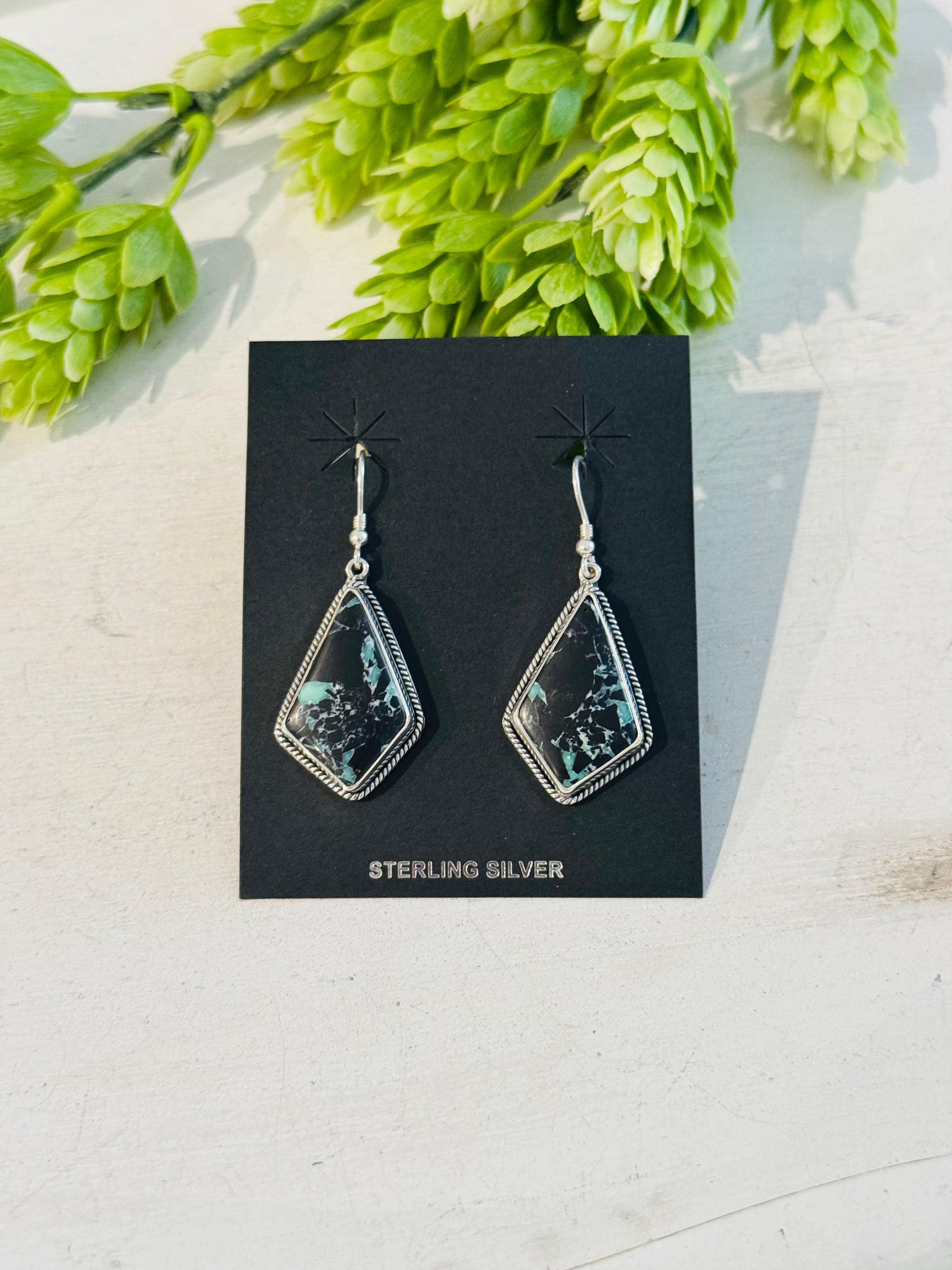 Southwest Handmade Black Jack Turquoise & Sterling Silver Dangle Earrings
