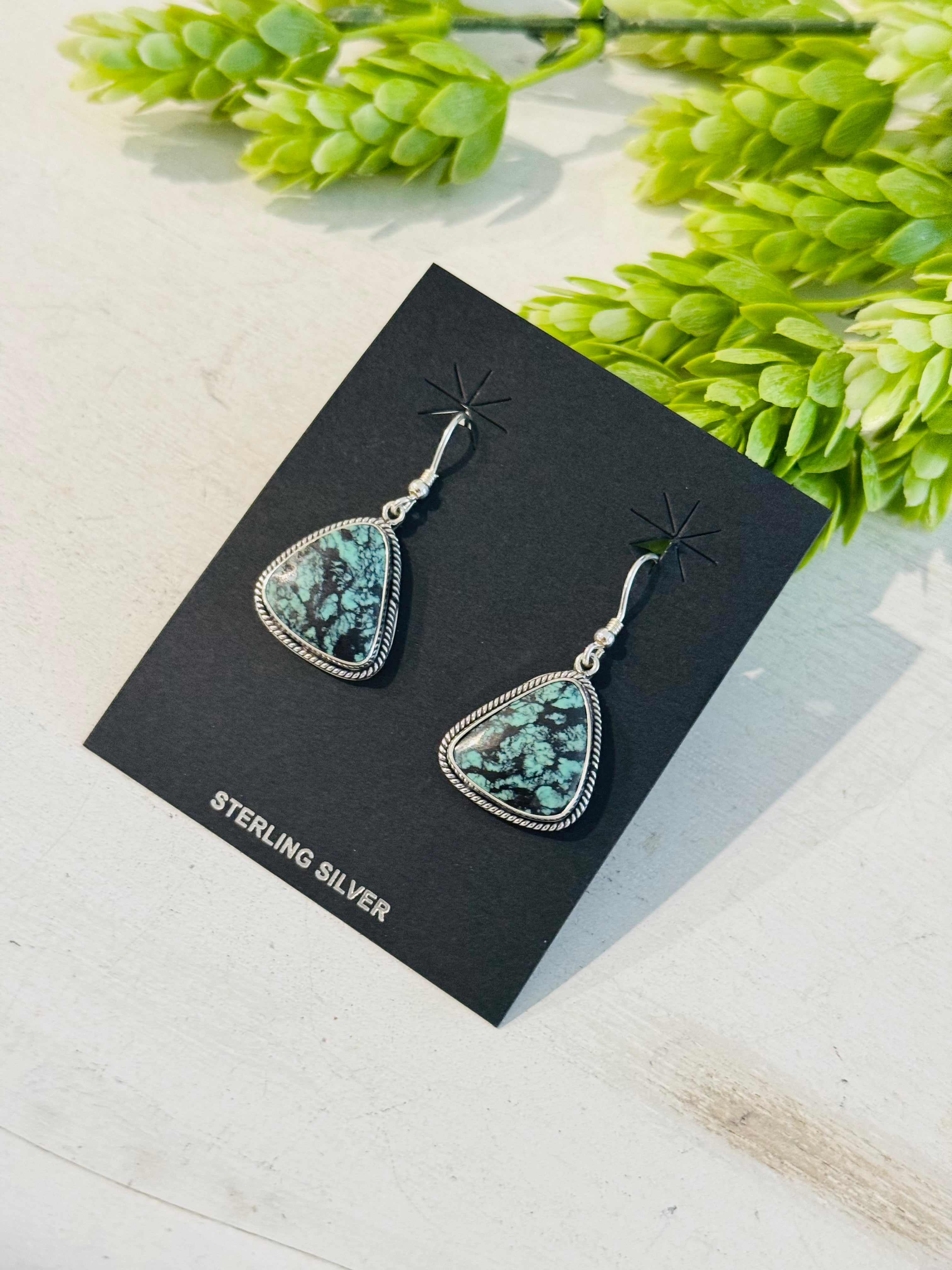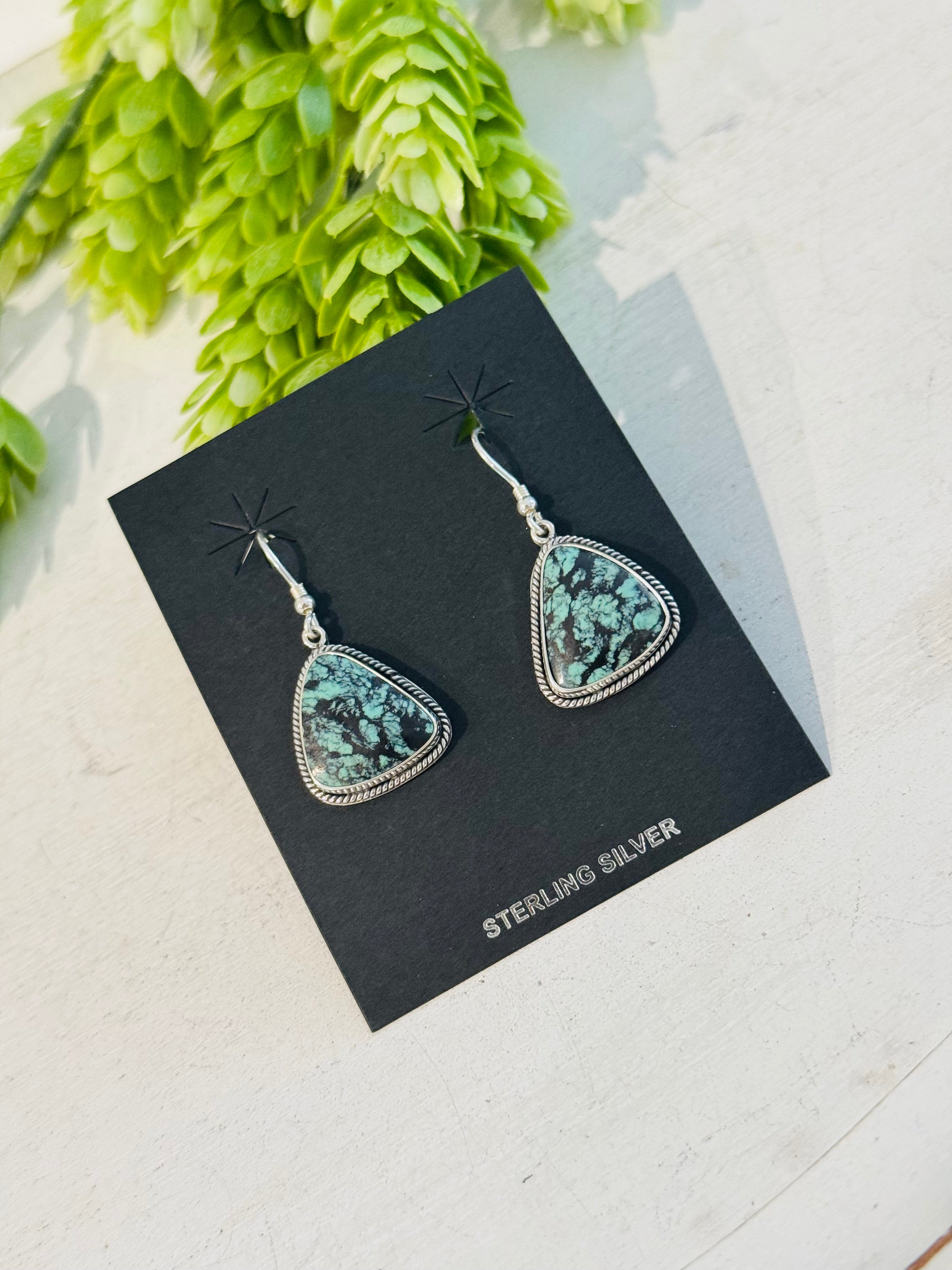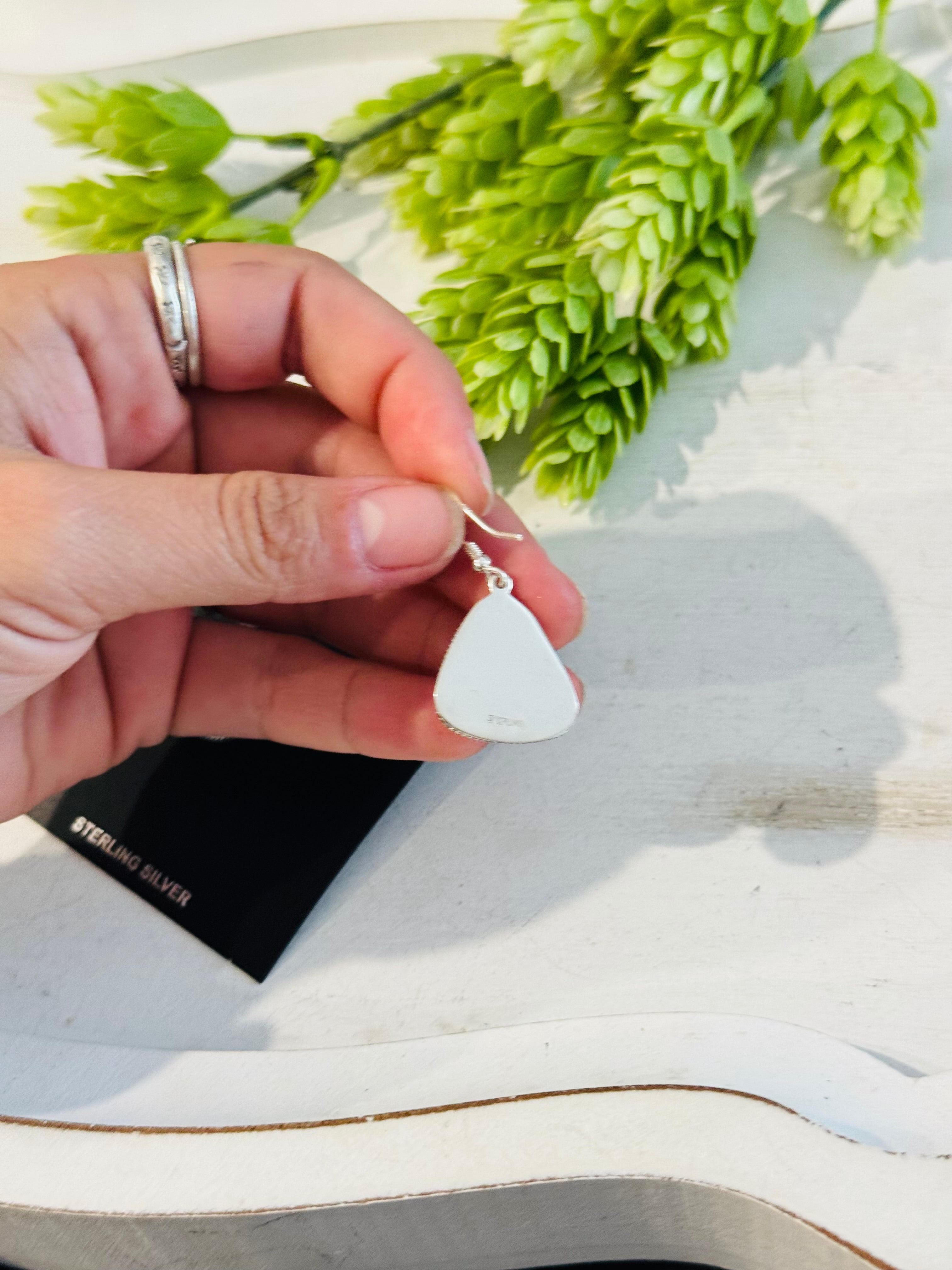 Southwest Handmade Emerald Rose Variscite & Sterling Silver Dangle Earrings