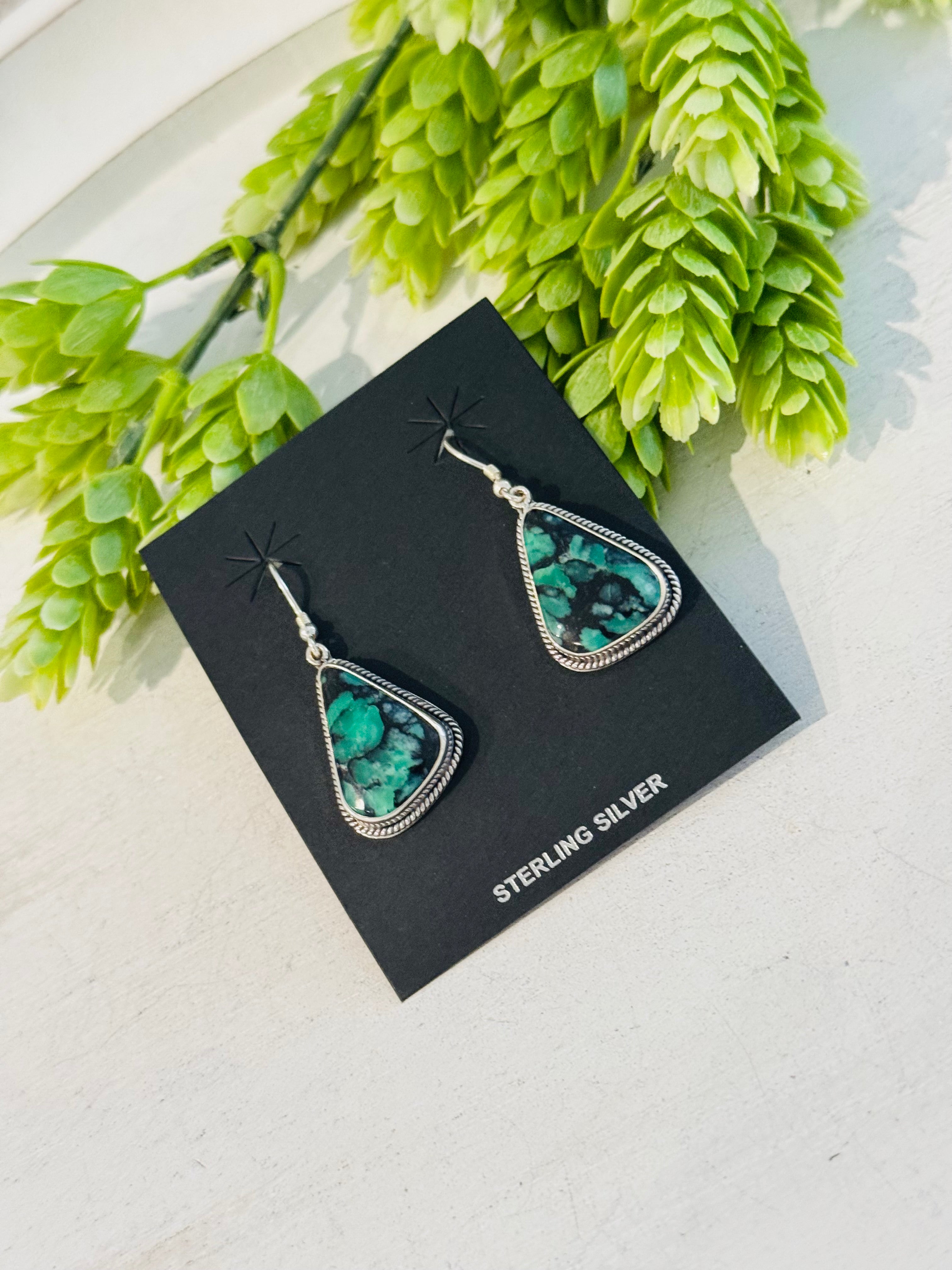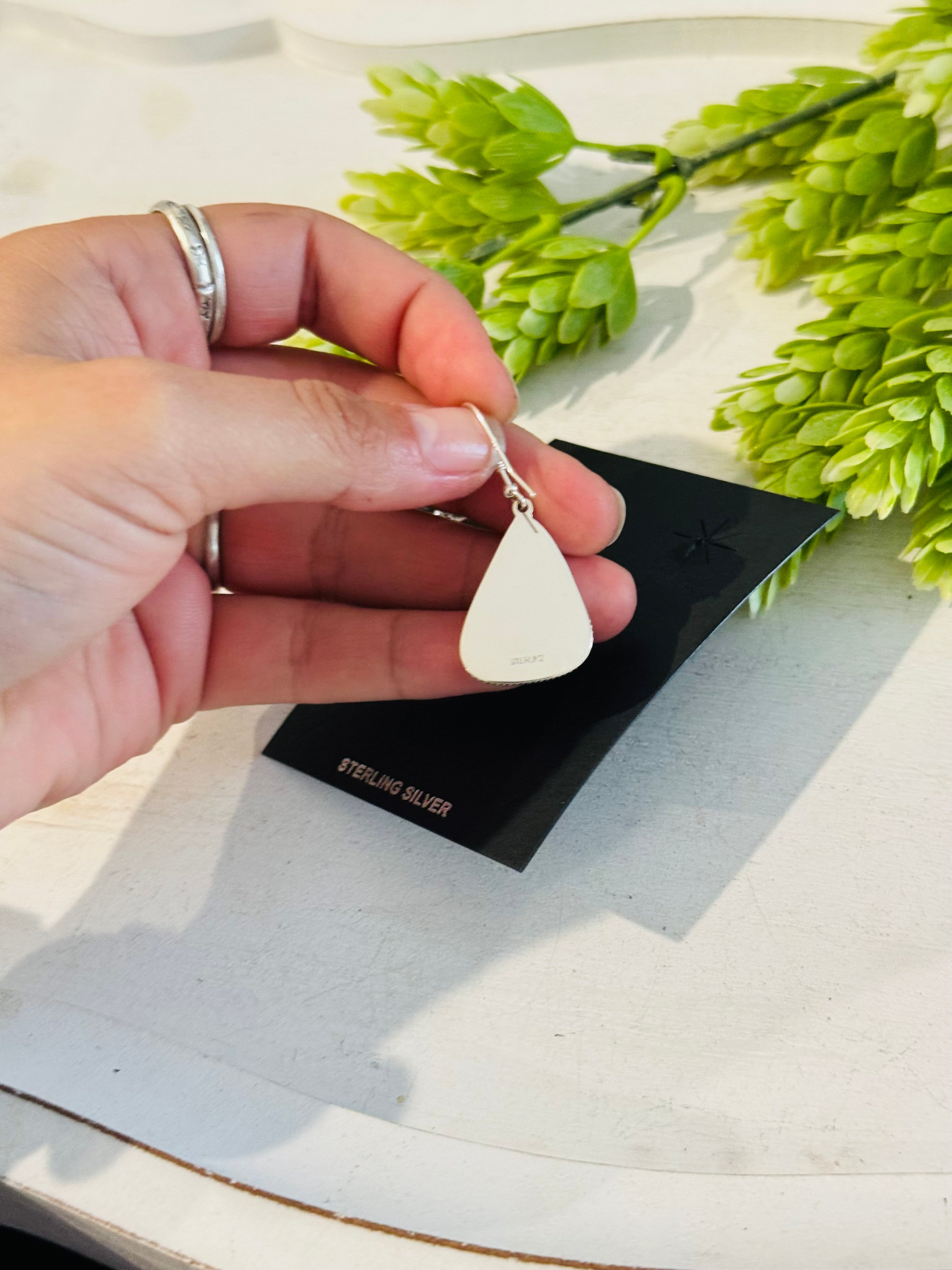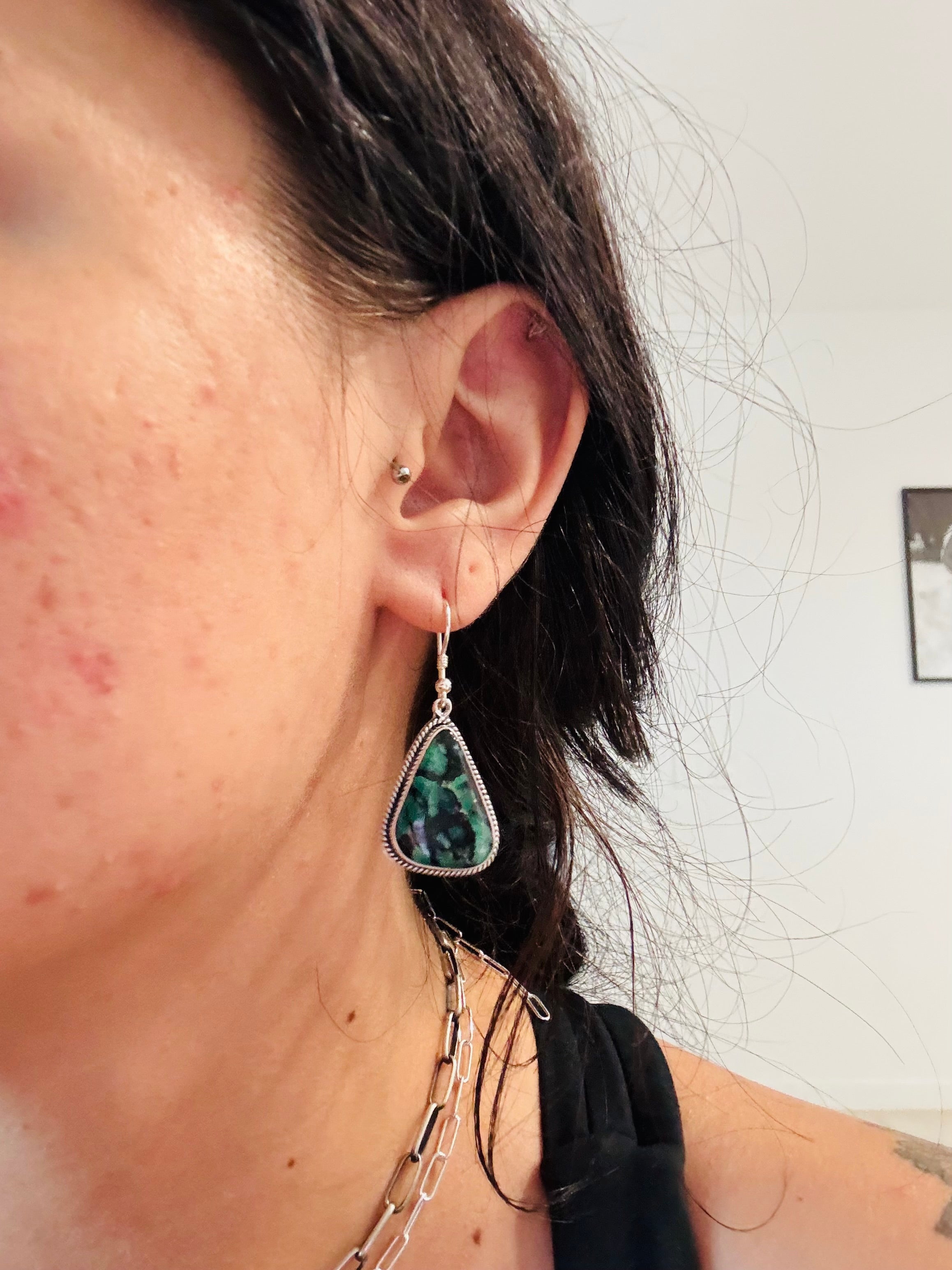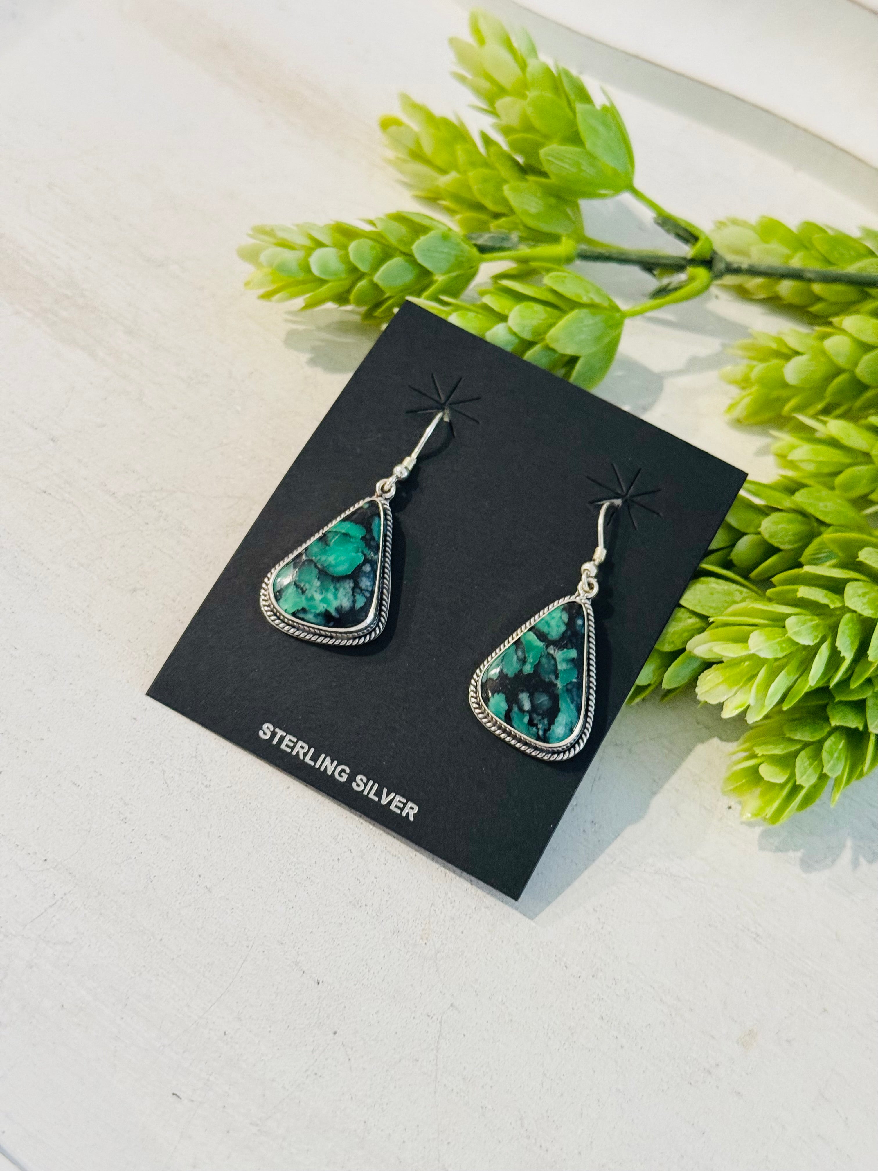 Southwest Handmade Emerald Rose Variscite & Sterling Silver Dangle Earrings