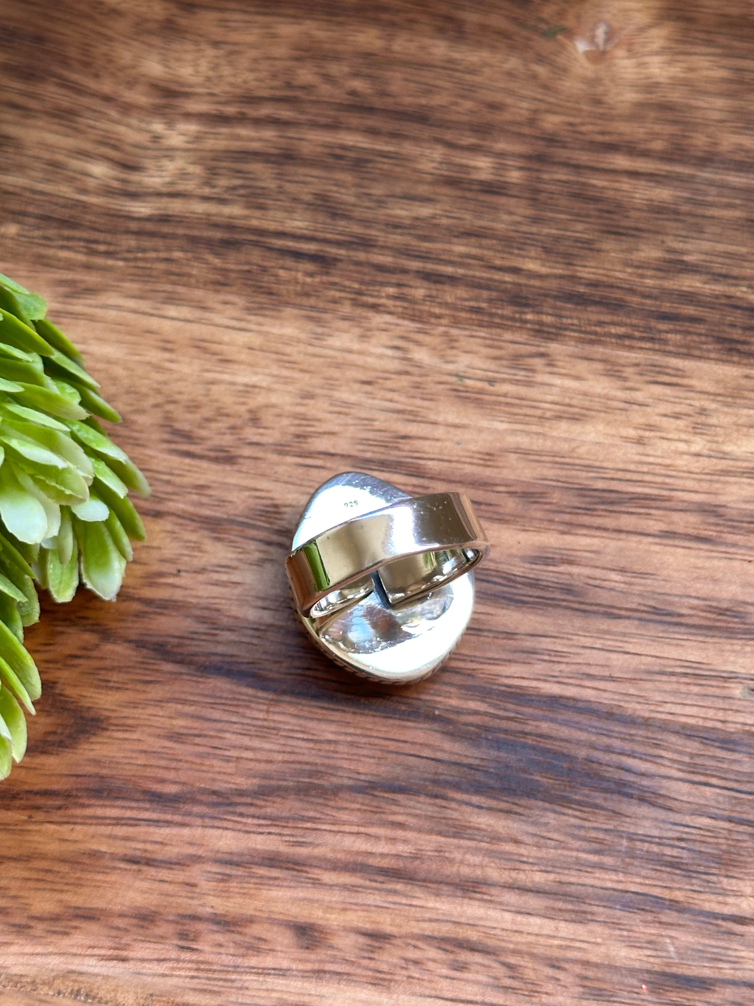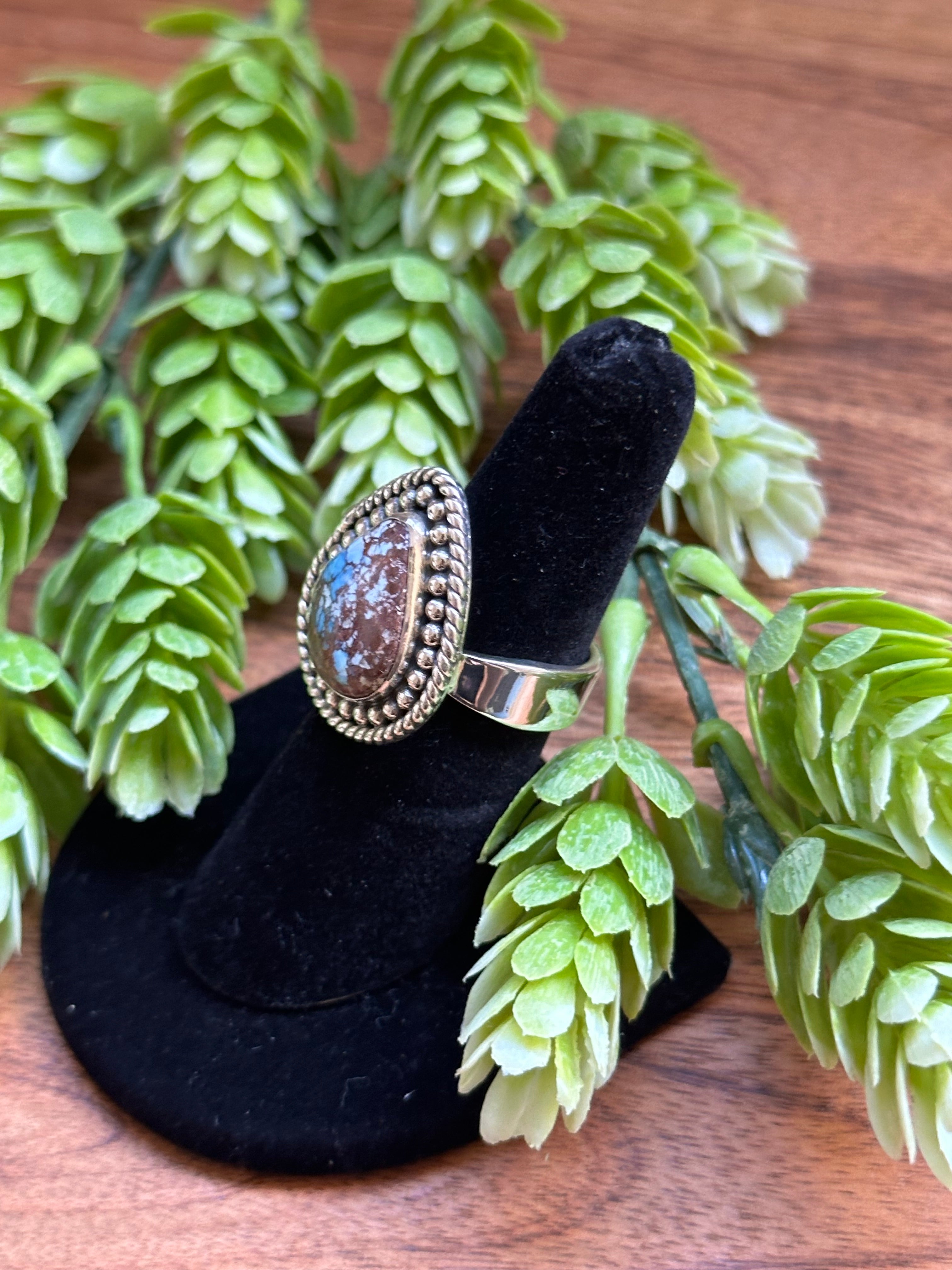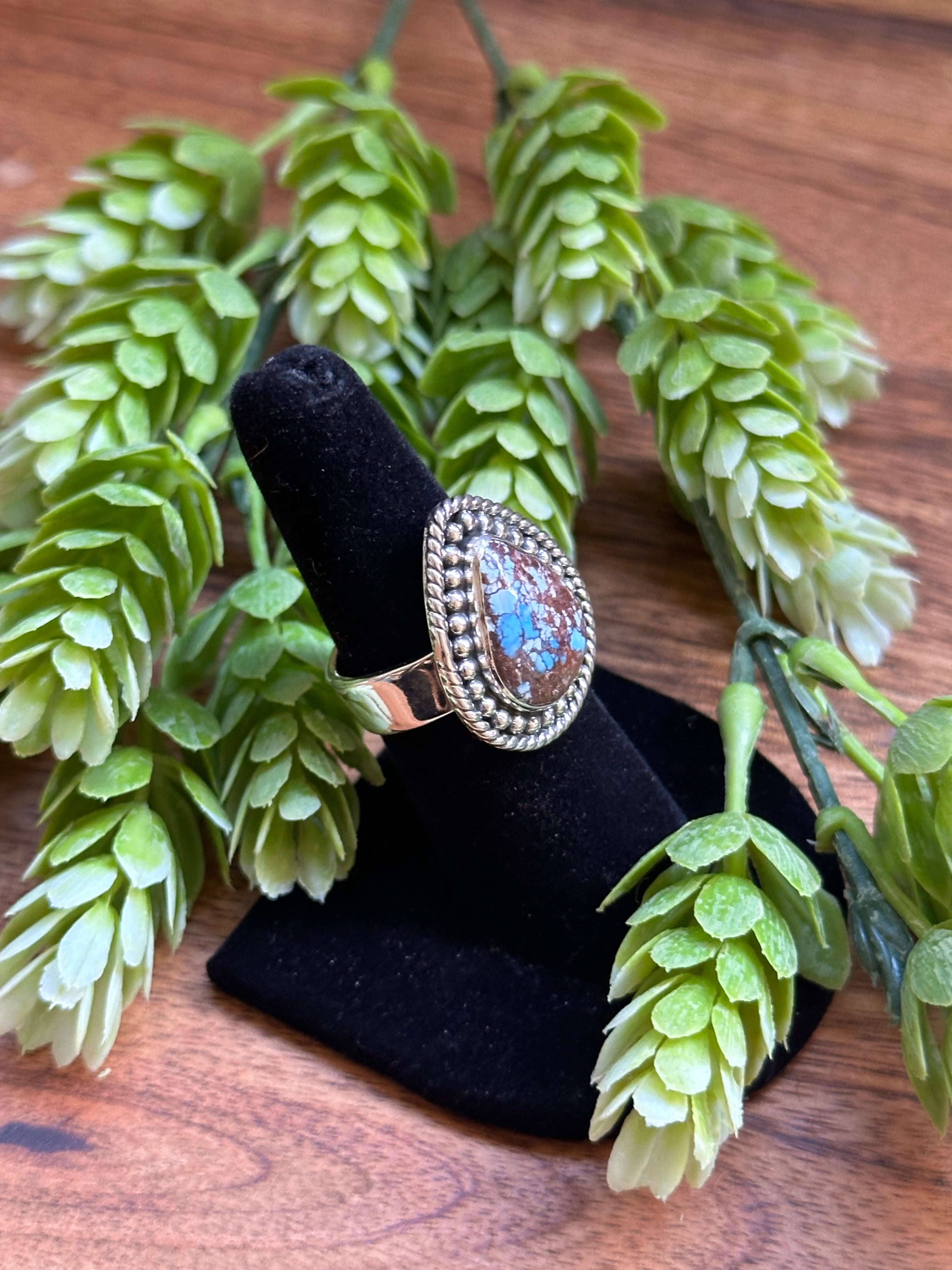 Beautiful ring. Southwest Handmade Golden Hills Turquoise & Sterling Silver Adjustable Ring. It measures 1 inch long and 7/8 of an inch wide. Signed by the artist and stamped sterling silver.