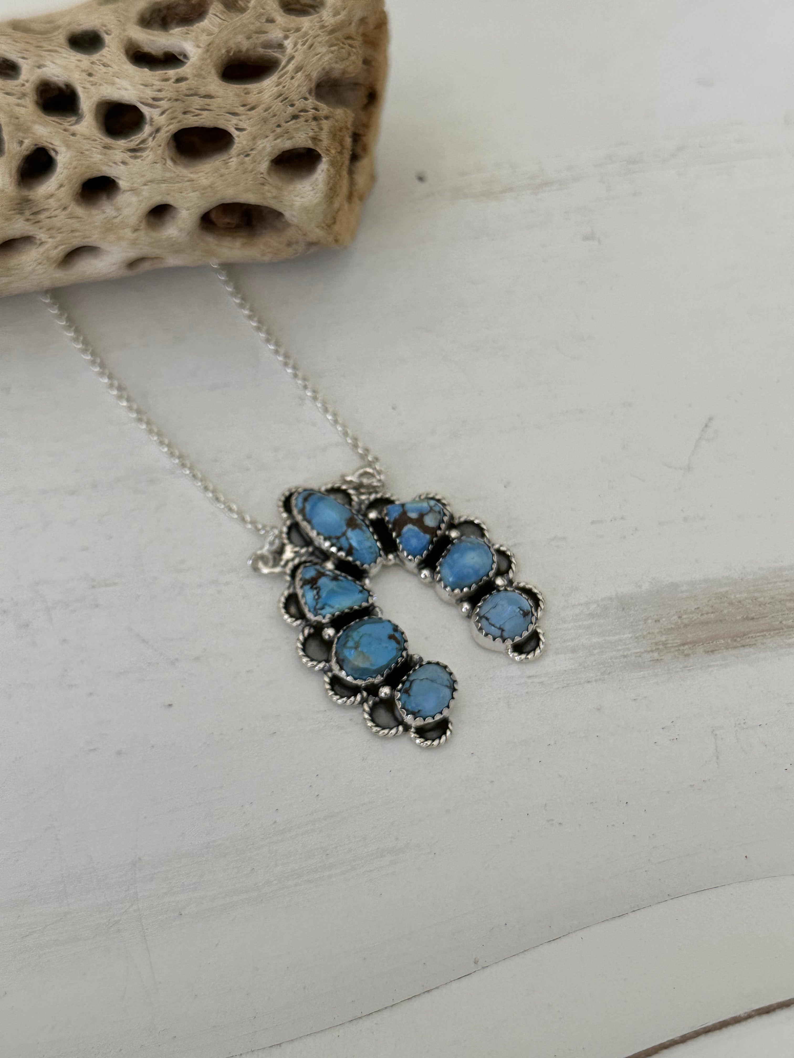 Southwest Handmade Golden Hills Turquoise & Sterling Silver Cluster Naja Necklace
