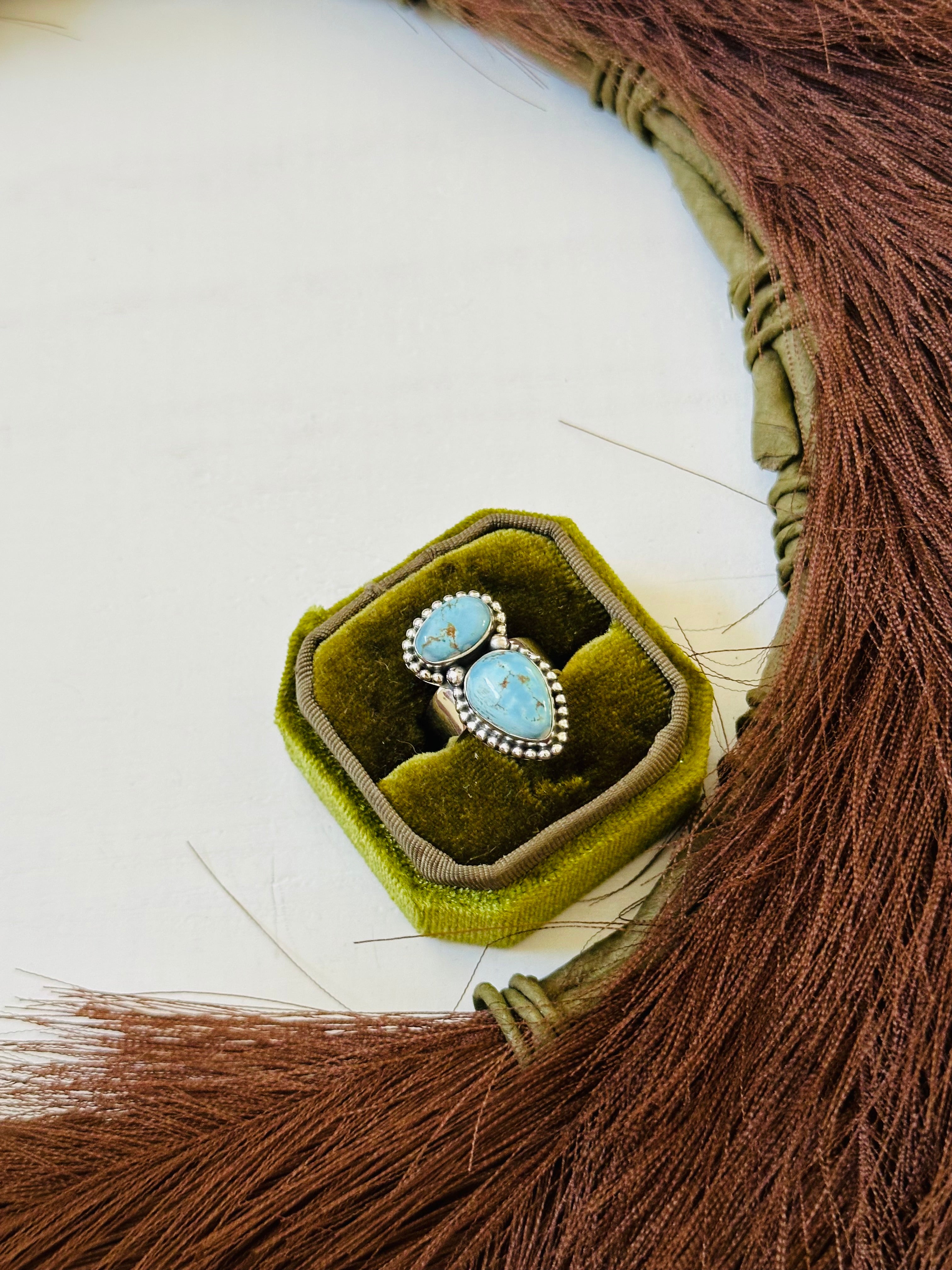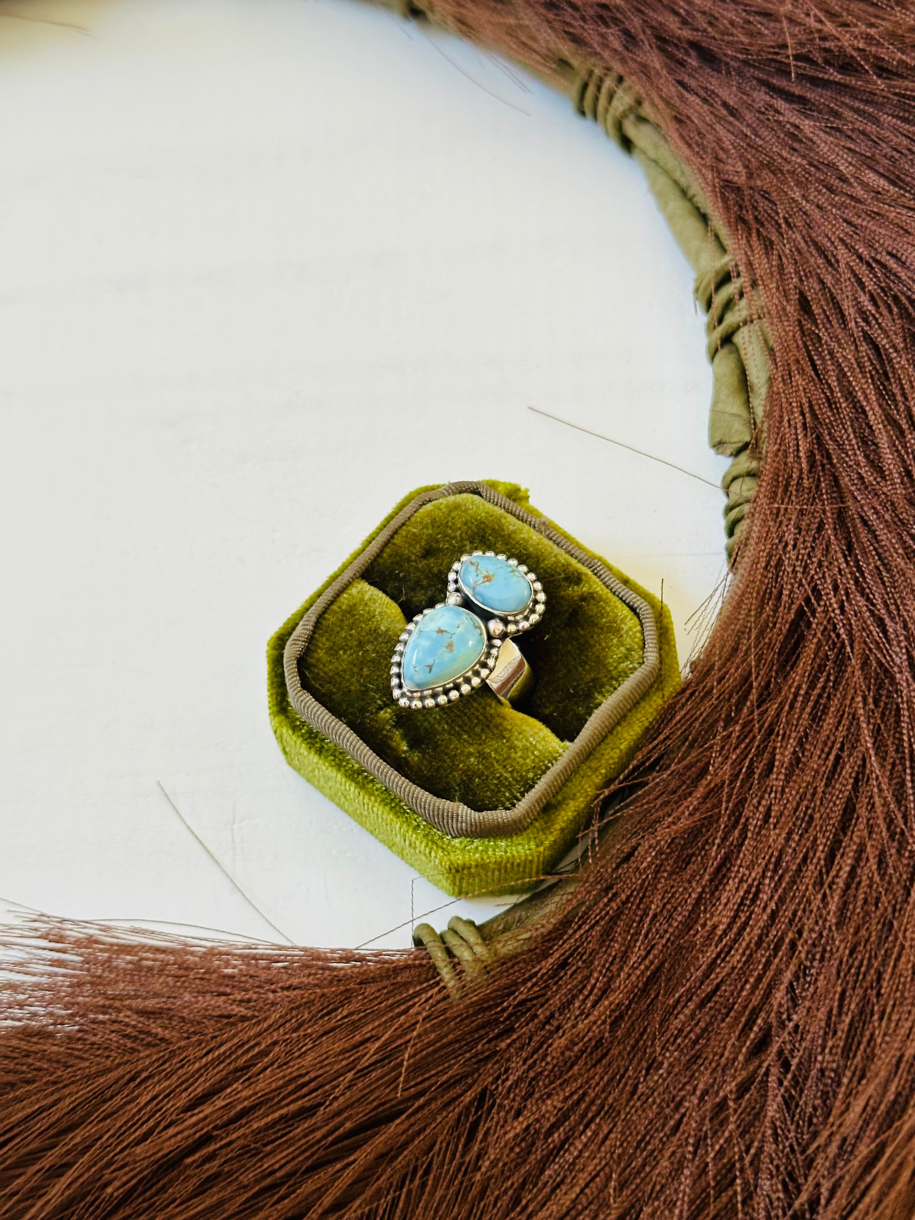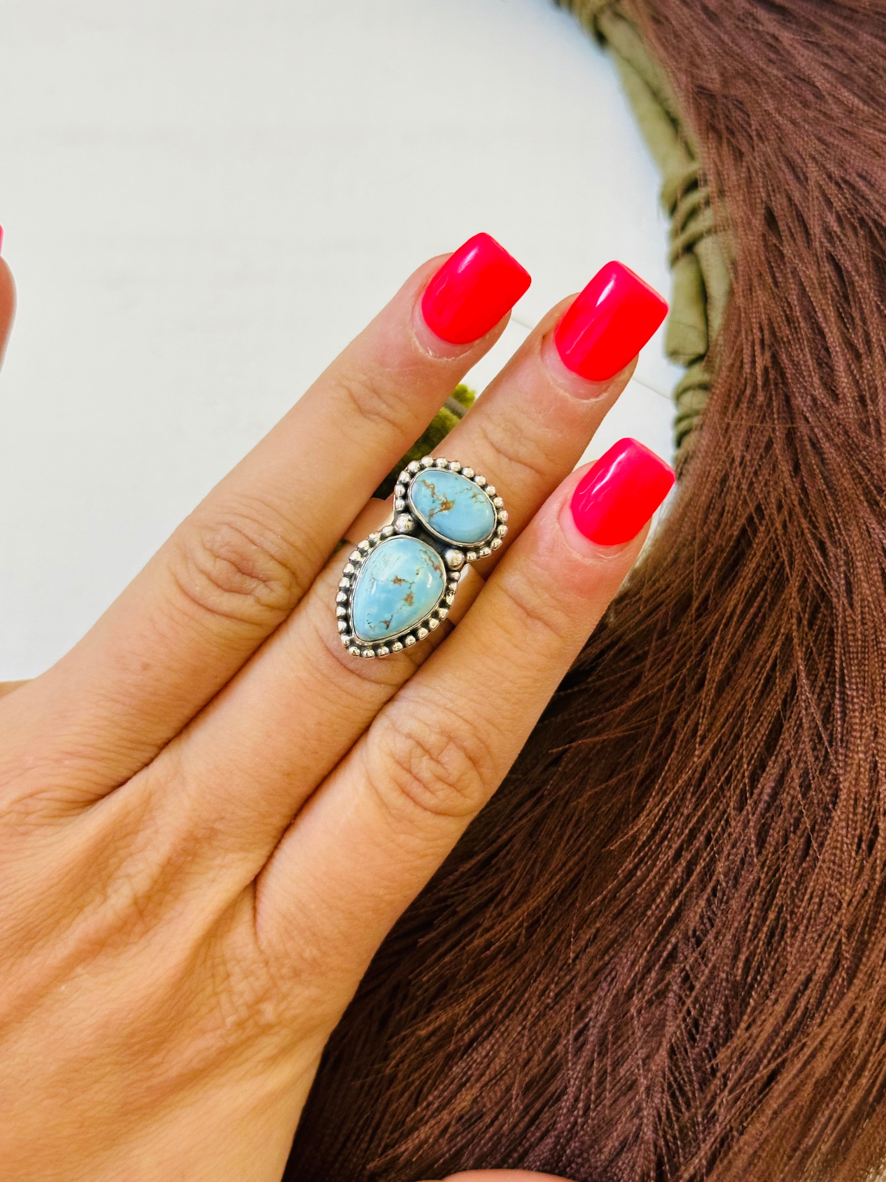 Southwest Handmade Golden Hills Turquoise & Sterling Silver Ring Size 6.25