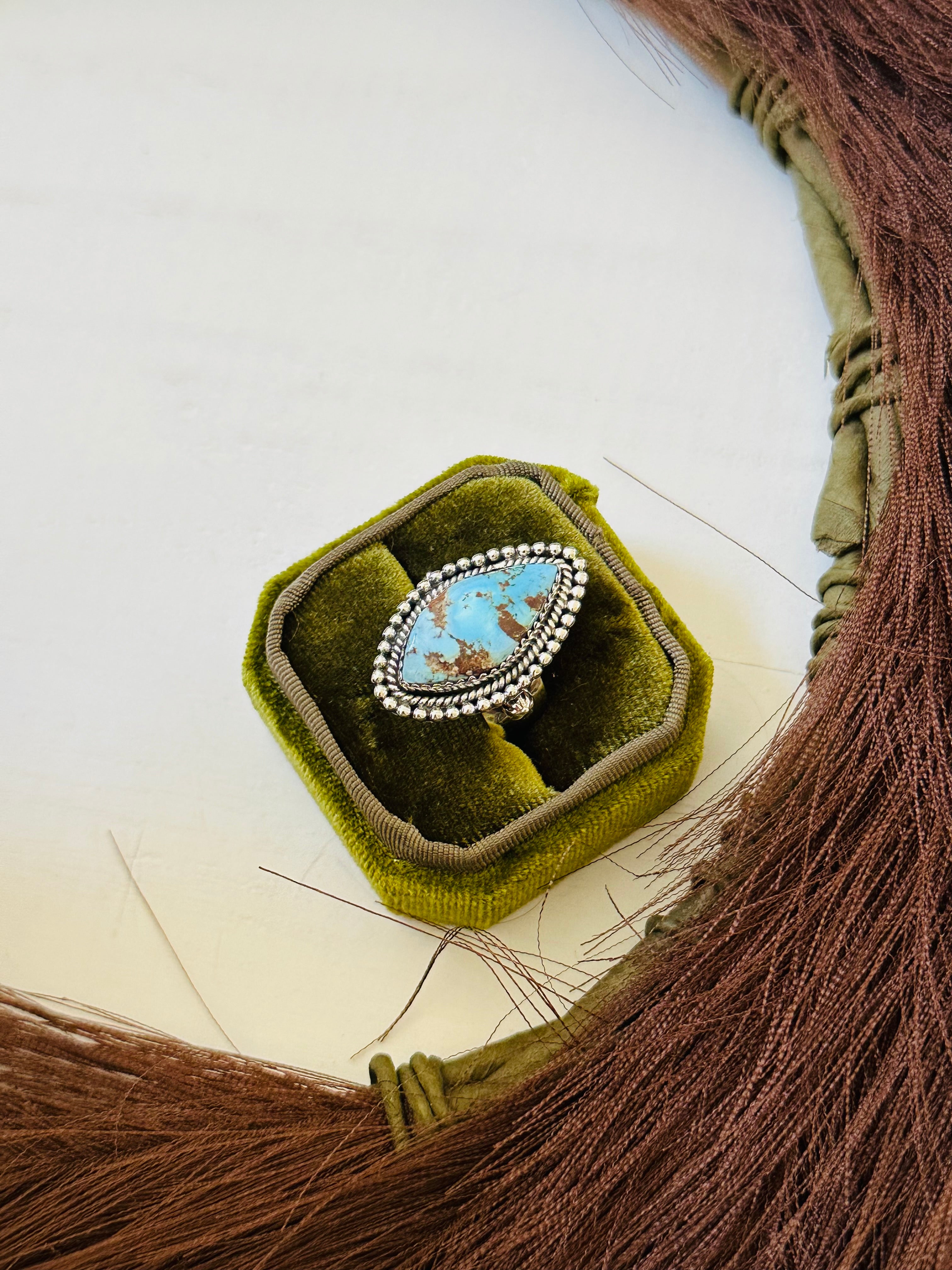 Southwest Handmade Golden Hills Turquoise & Sterling Silver Ring Size 7.75