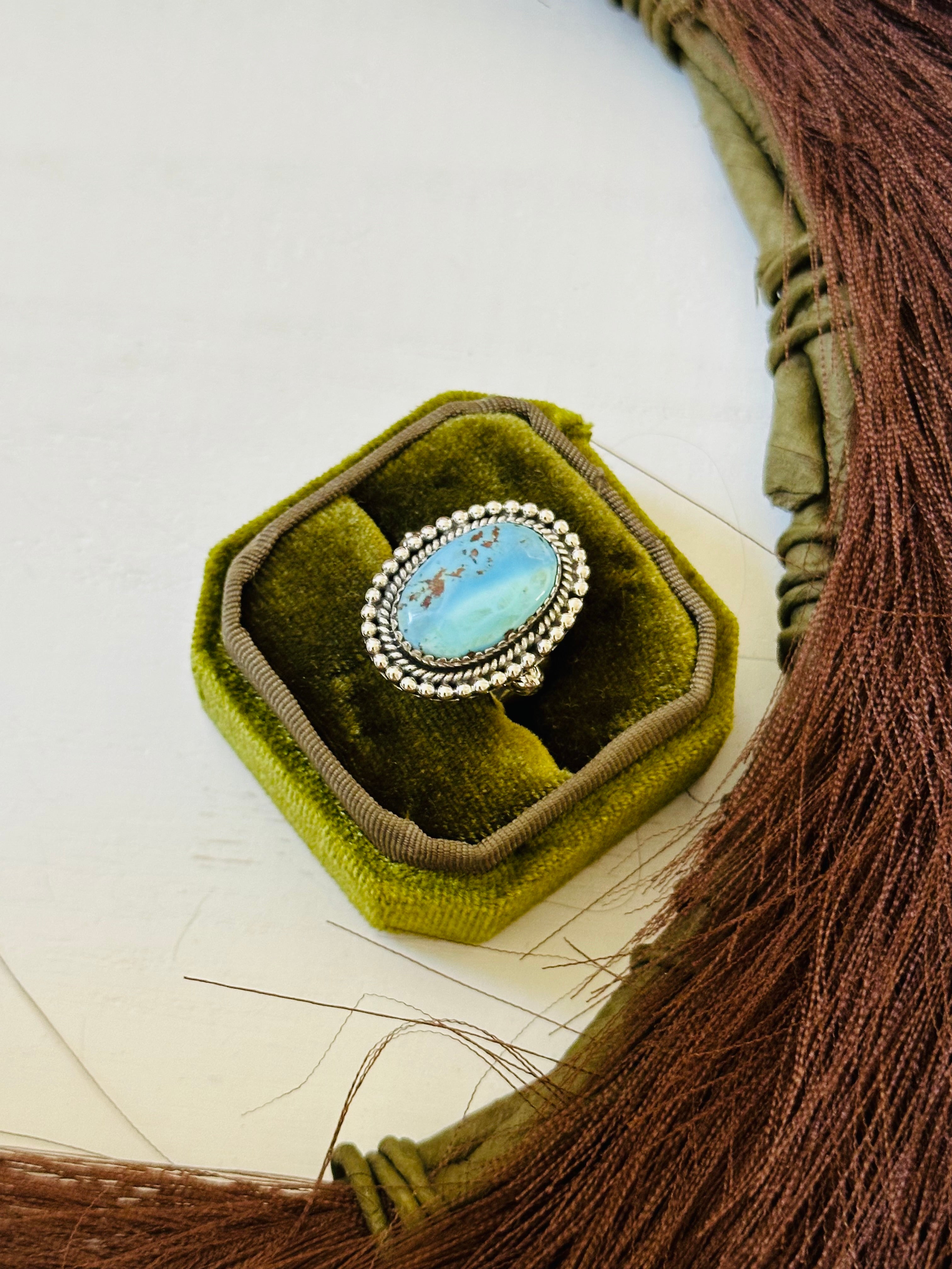 Southwest Handmade Golden Hills Turquoise & Sterling Silver Ring Size 7