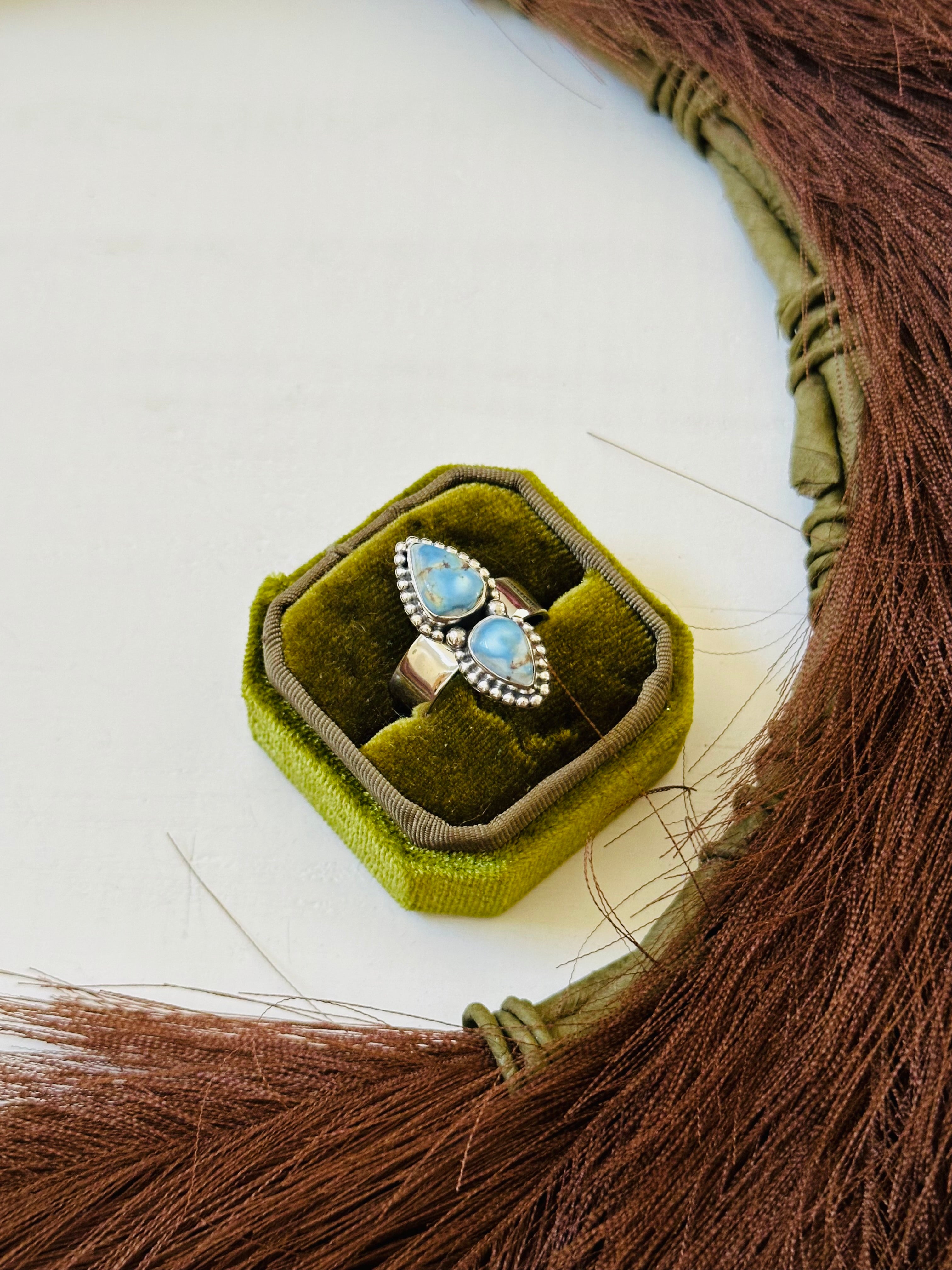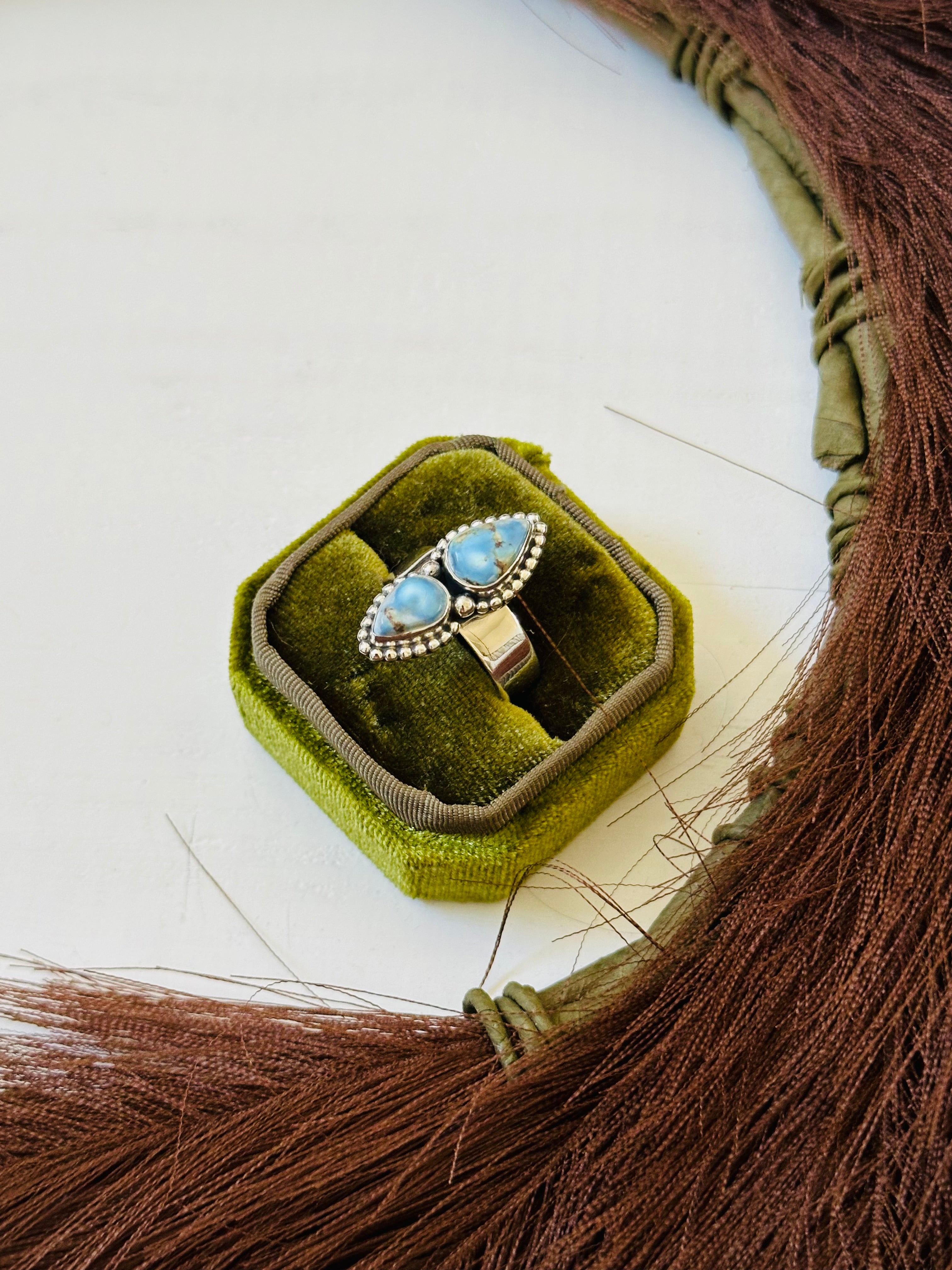 Southwest Handmade Golden Hills Turquoise & Sterling Silver Ring Size 10.25