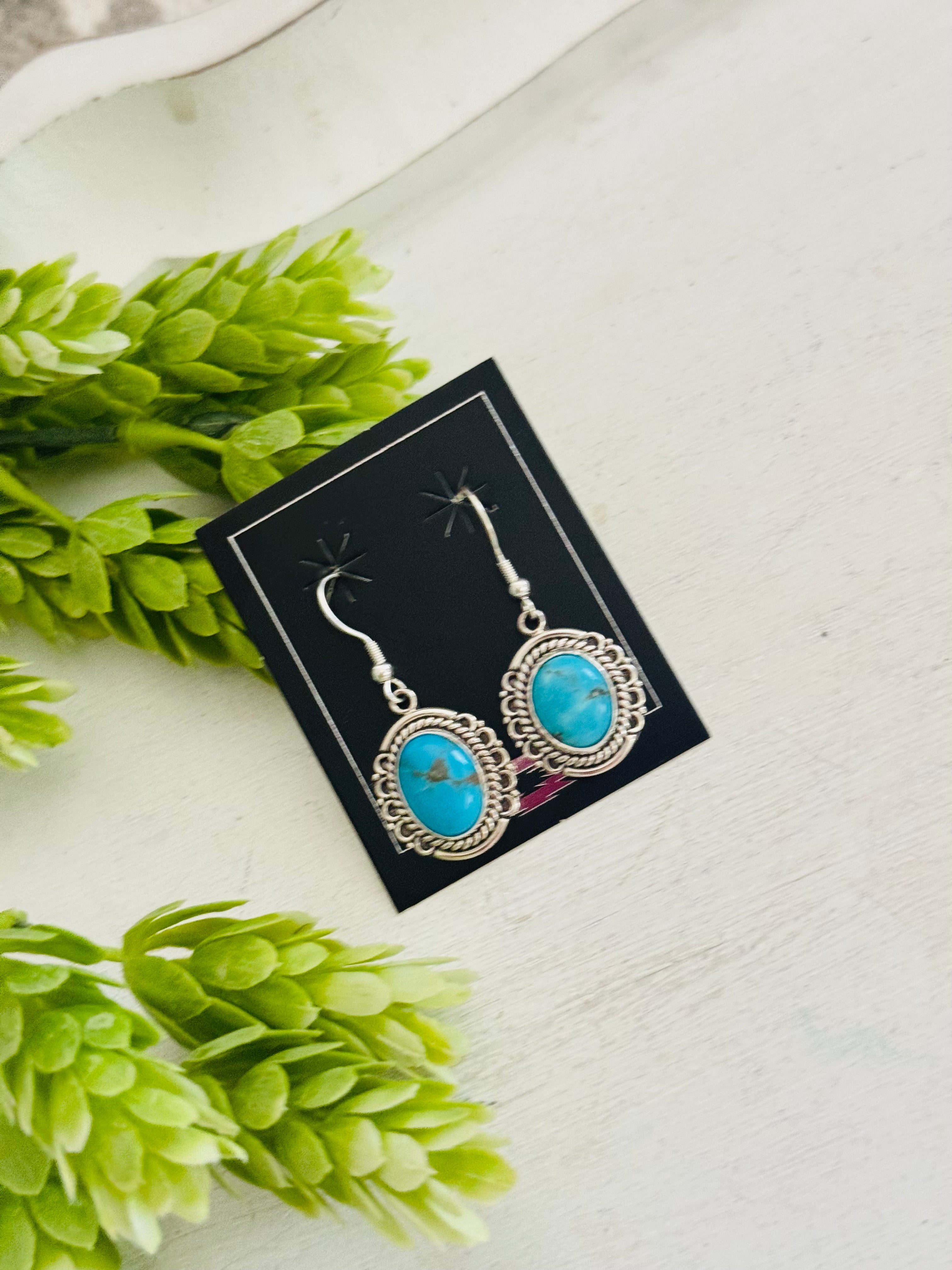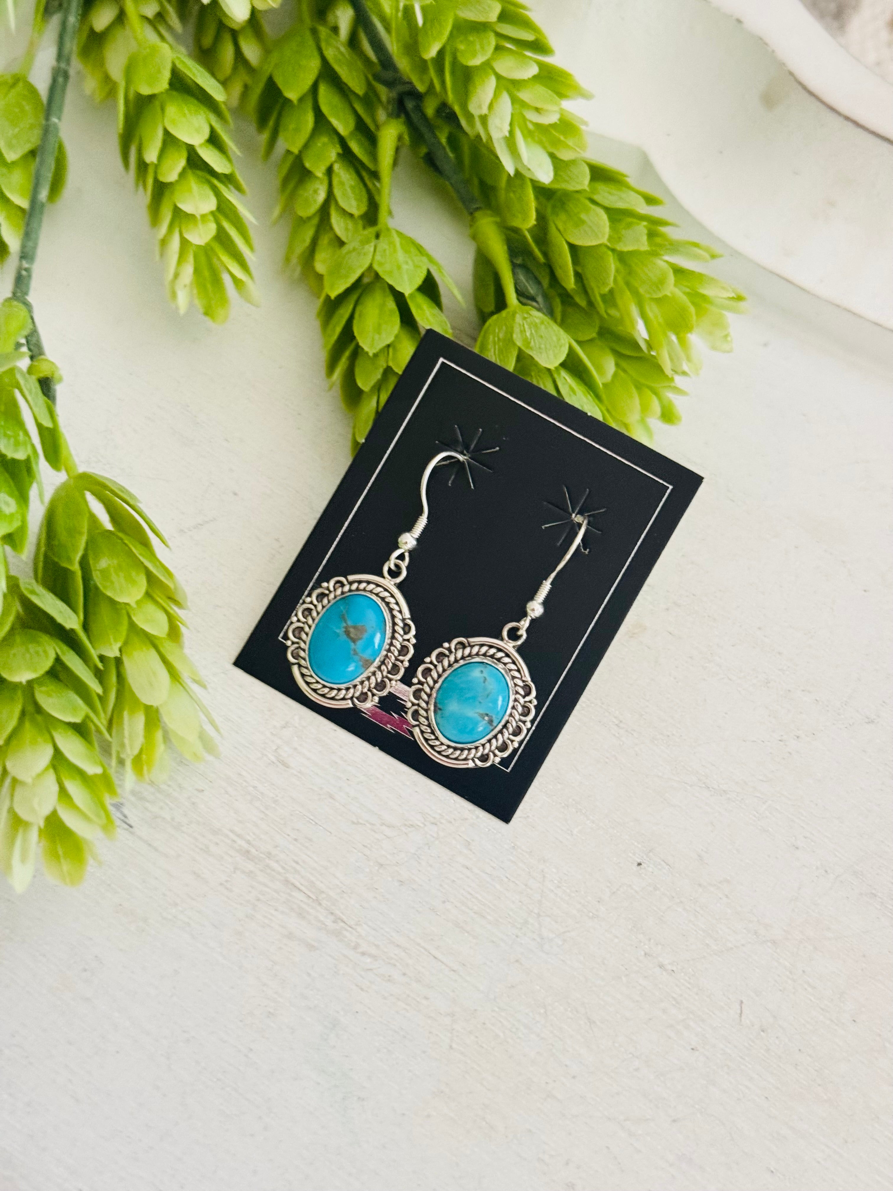 Southwest Handmade Kingman Turquoise & Sterling Silver Dangle Earrings