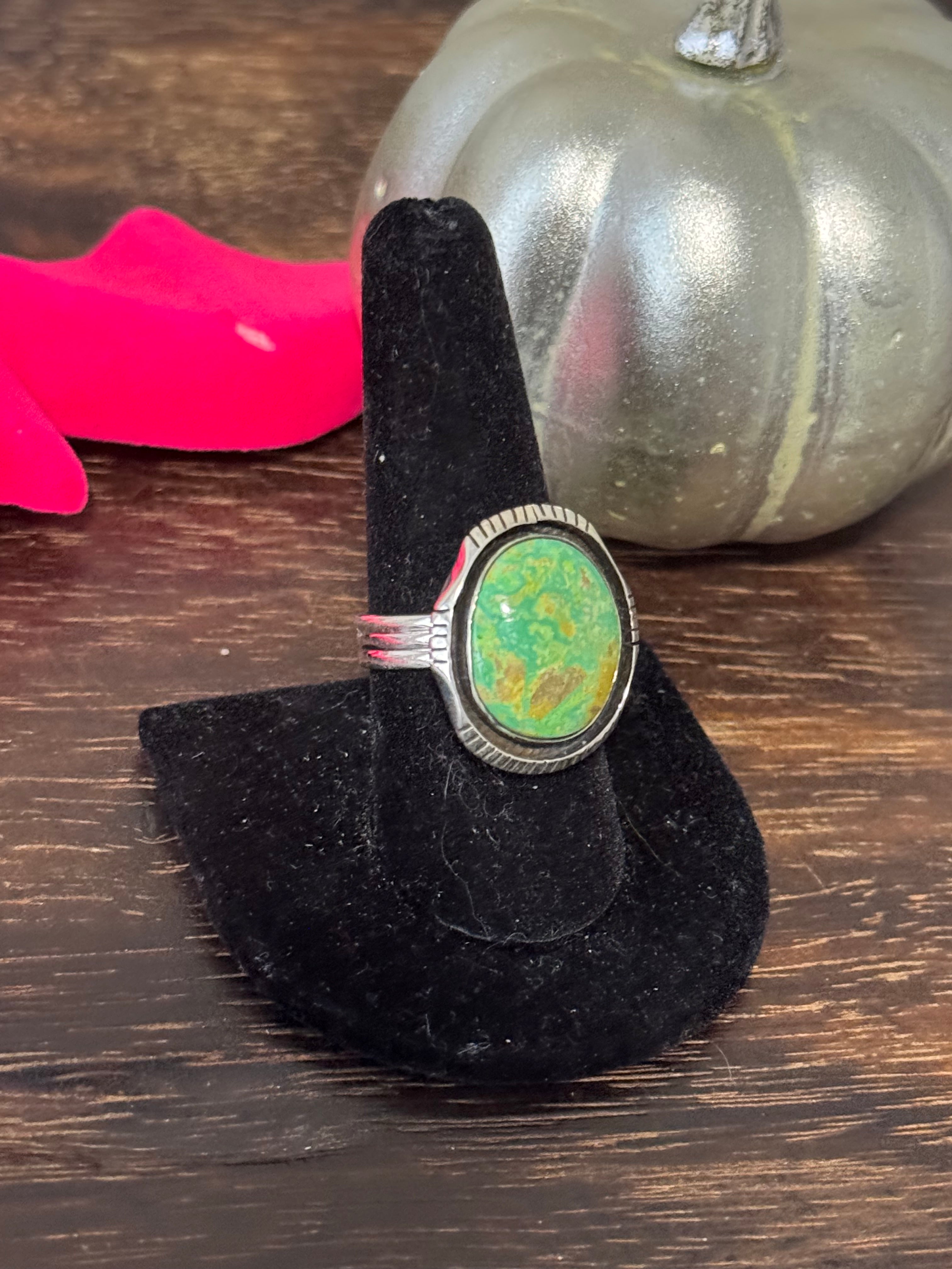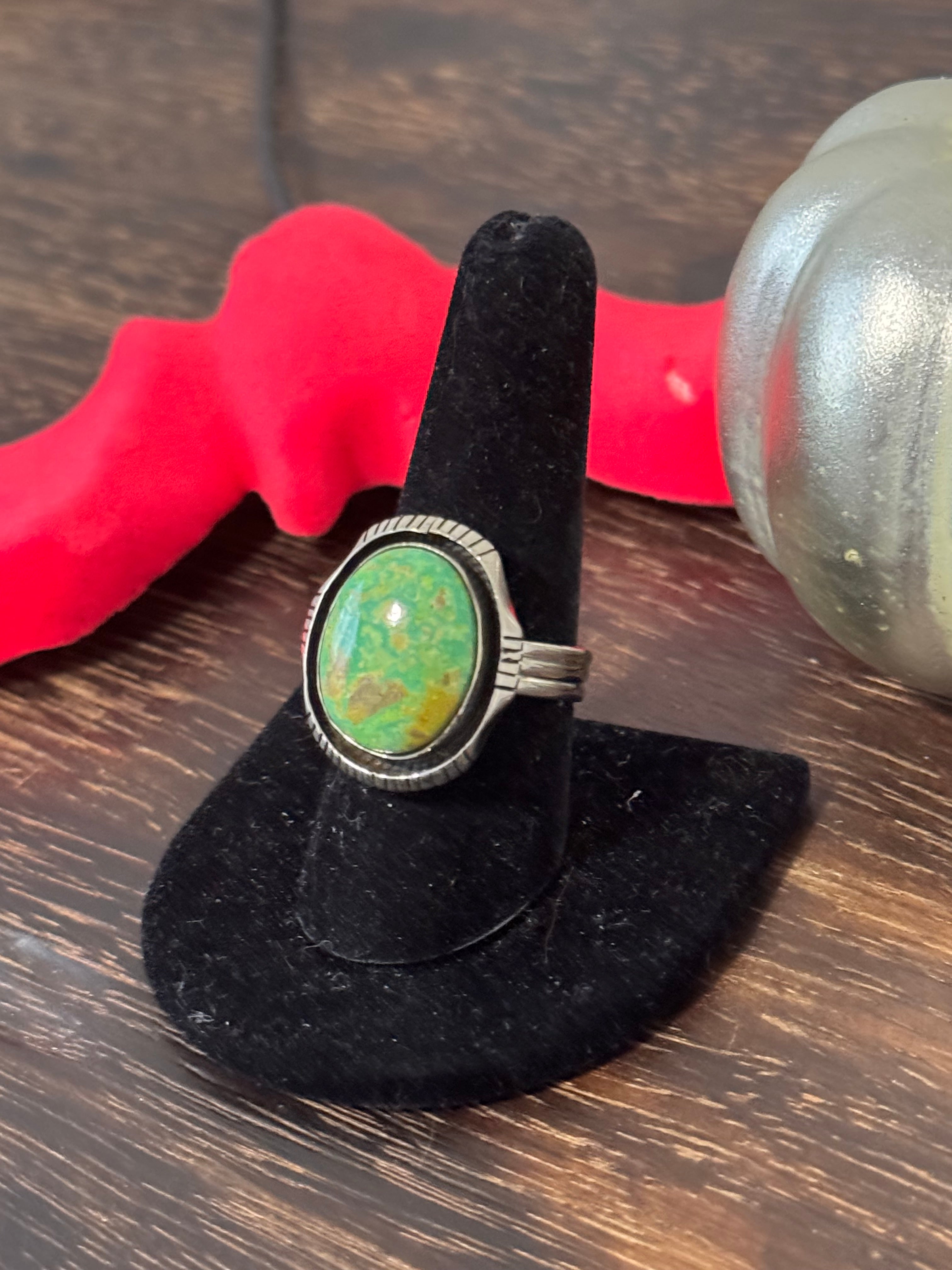 Southwest Handmade Pixie Turquoise & Sterling Silver Ring Size 8.75