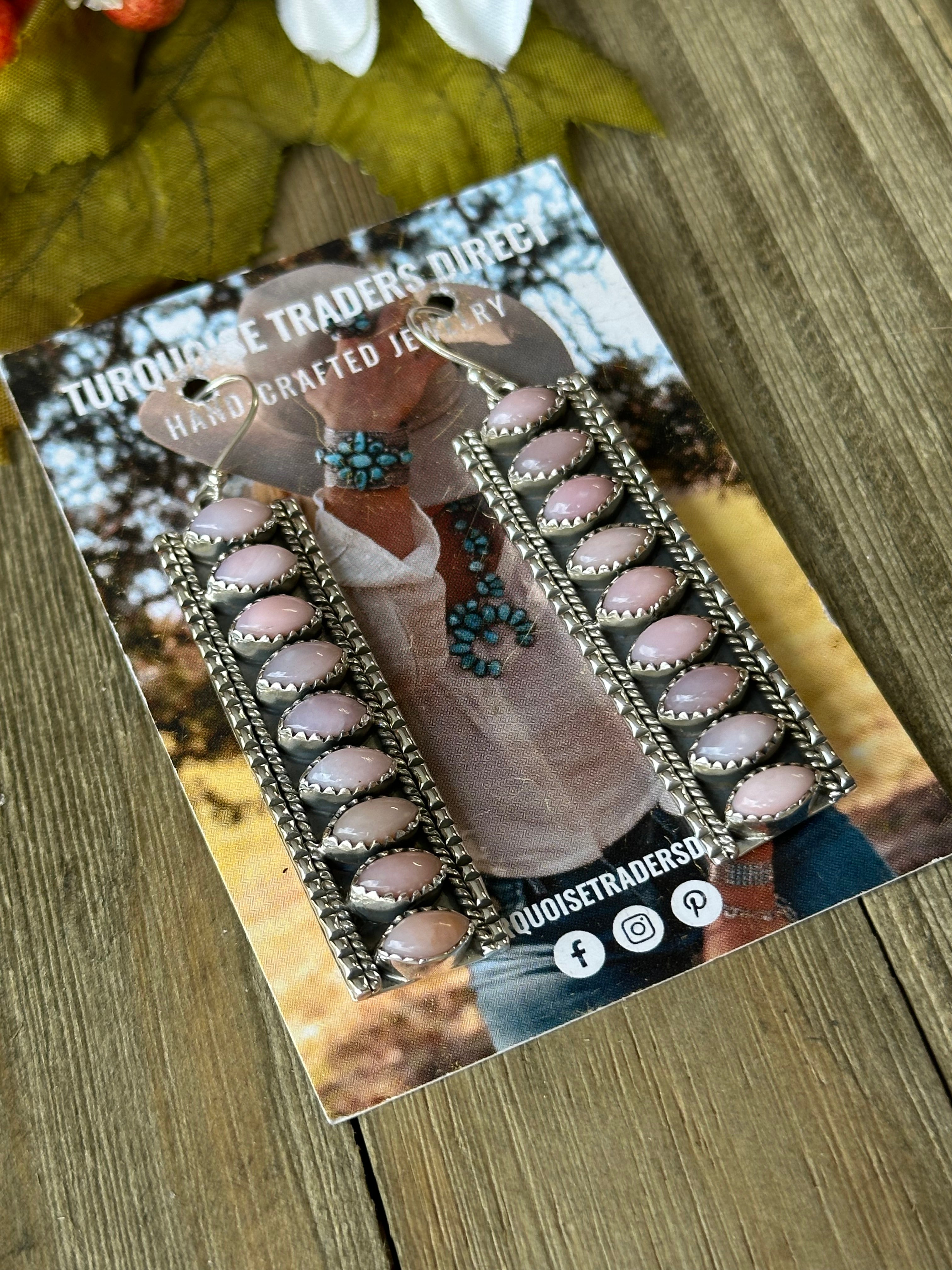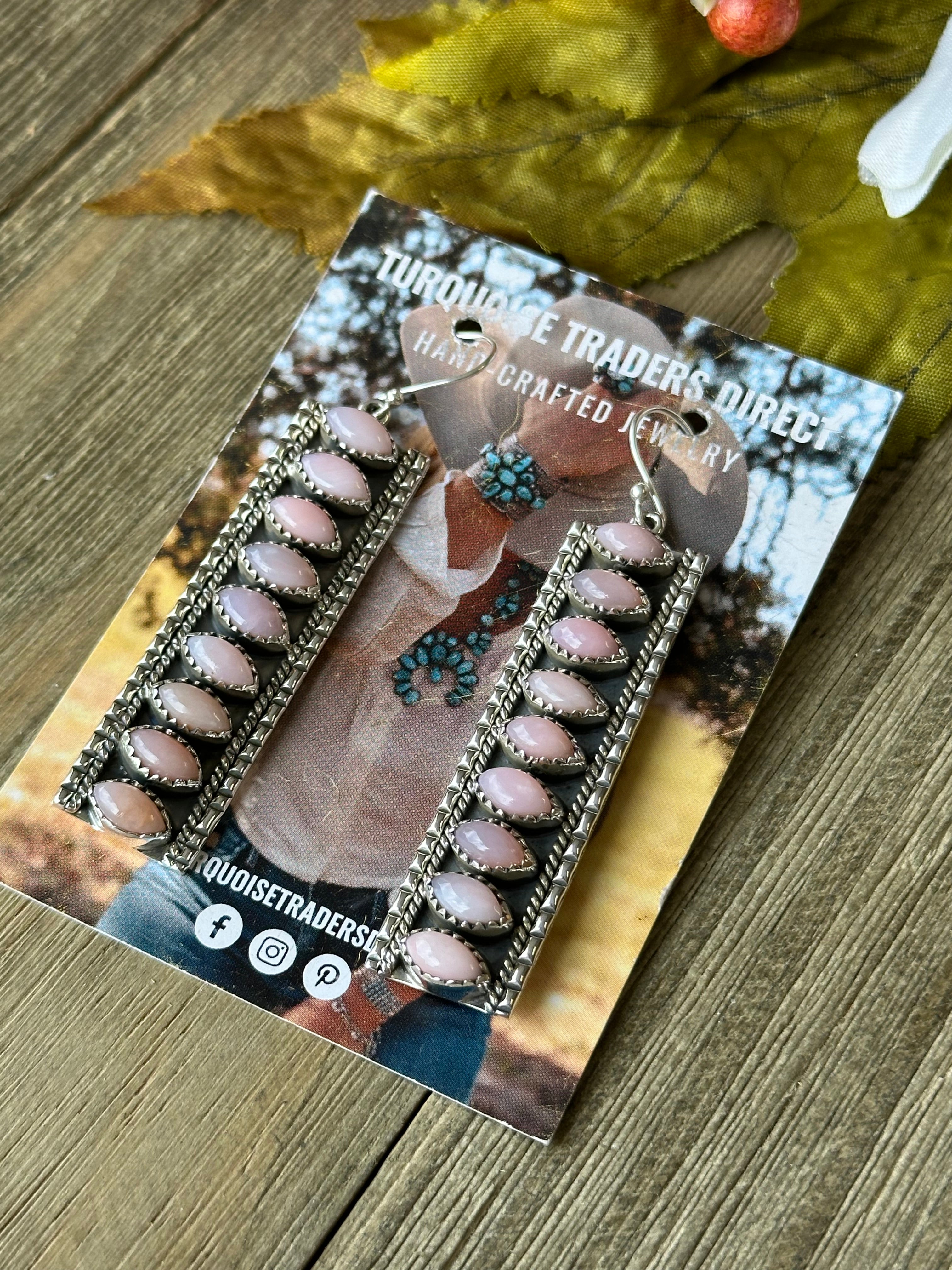 Southwest Handmade Peruvian Pink Opal & Sterling Silver Dangle Cluster Earrings
