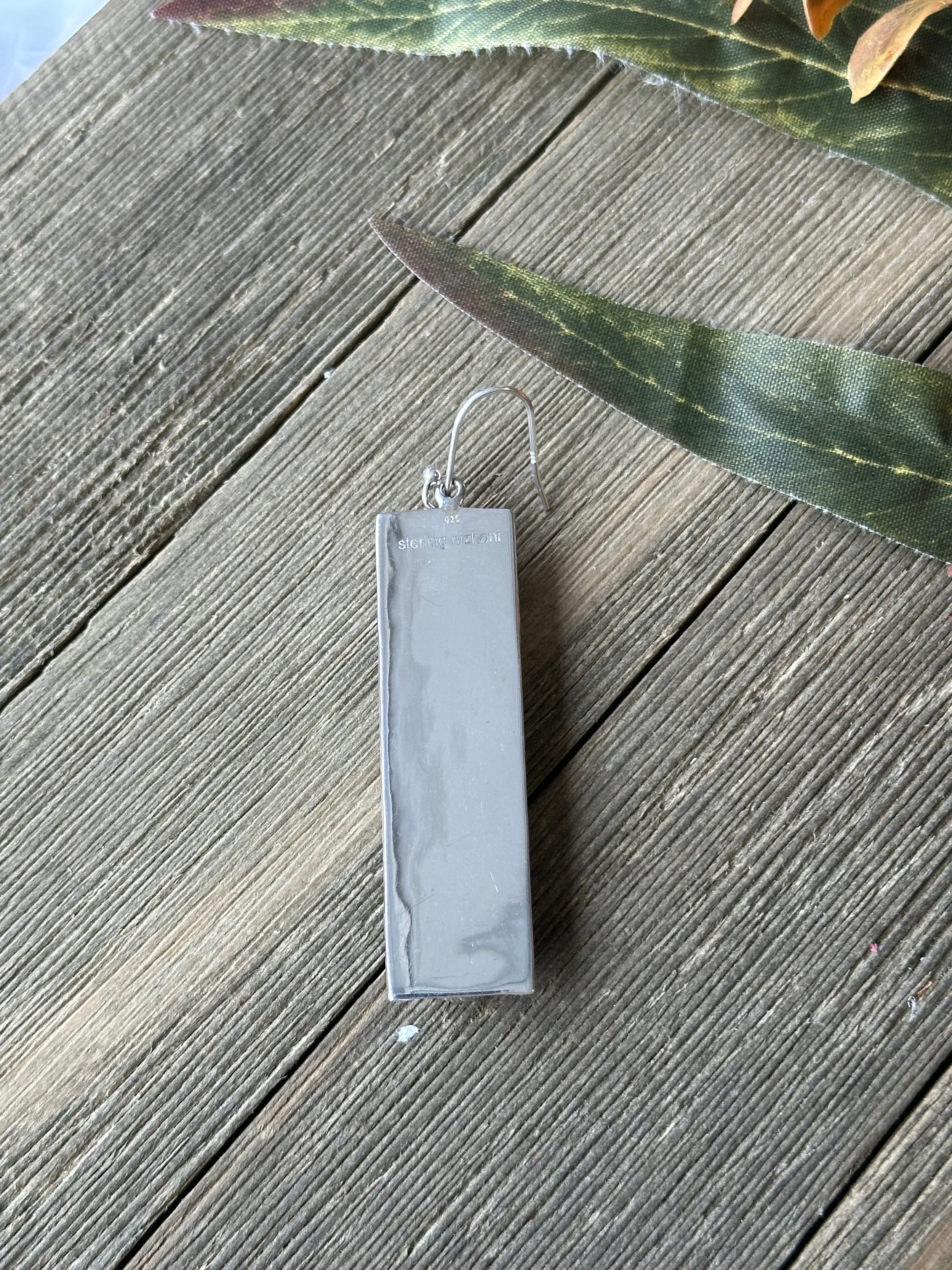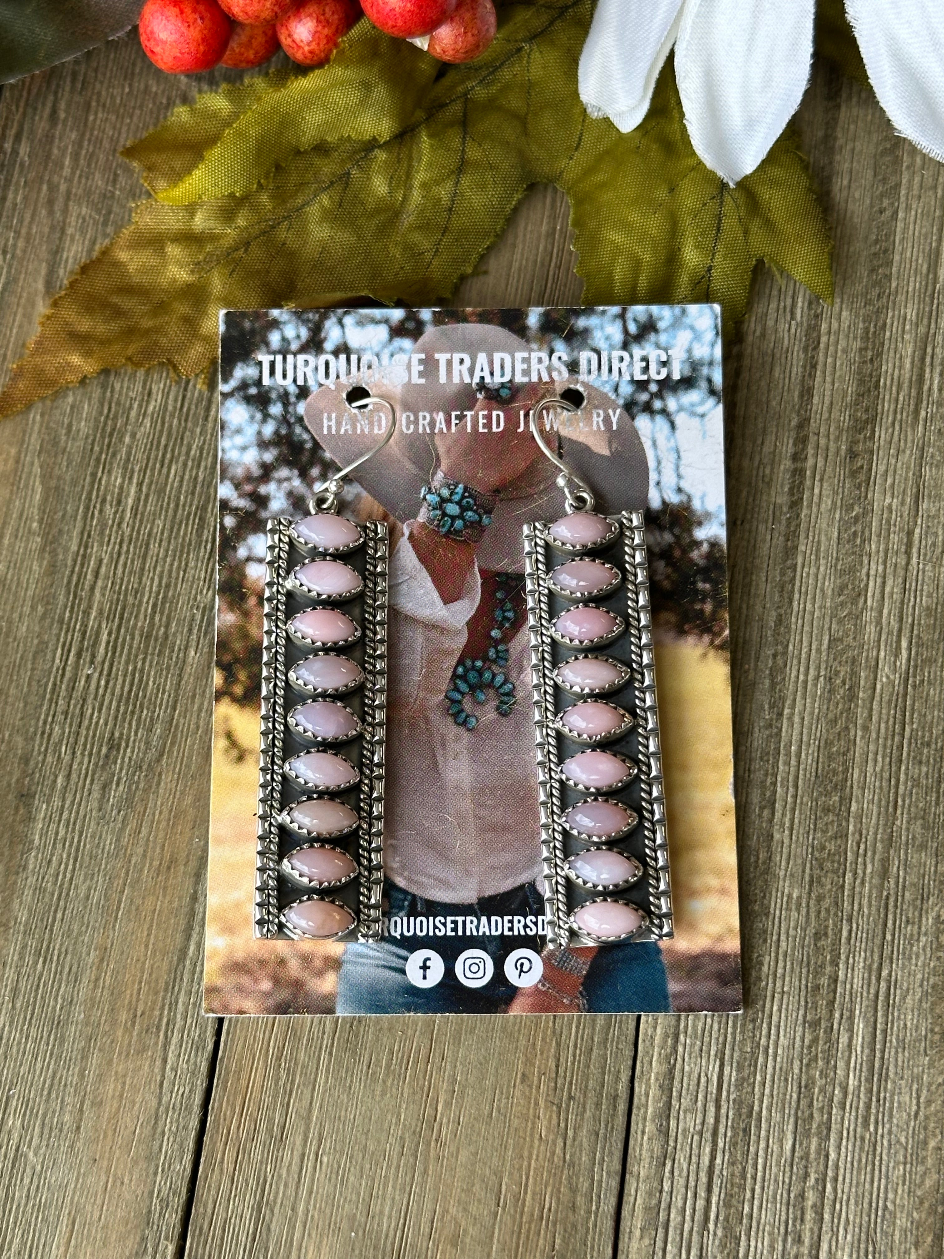 Breathtaking earrings. Southwest Handmade Peruvian Pink Opal & Sterling Silver Post Dangle Cluster Earrings. It measures 2 3/4 inches long and 5/8 of an inch wide. Signed by the artist and stamped sterling silver. Stones will differ due to natural stones.