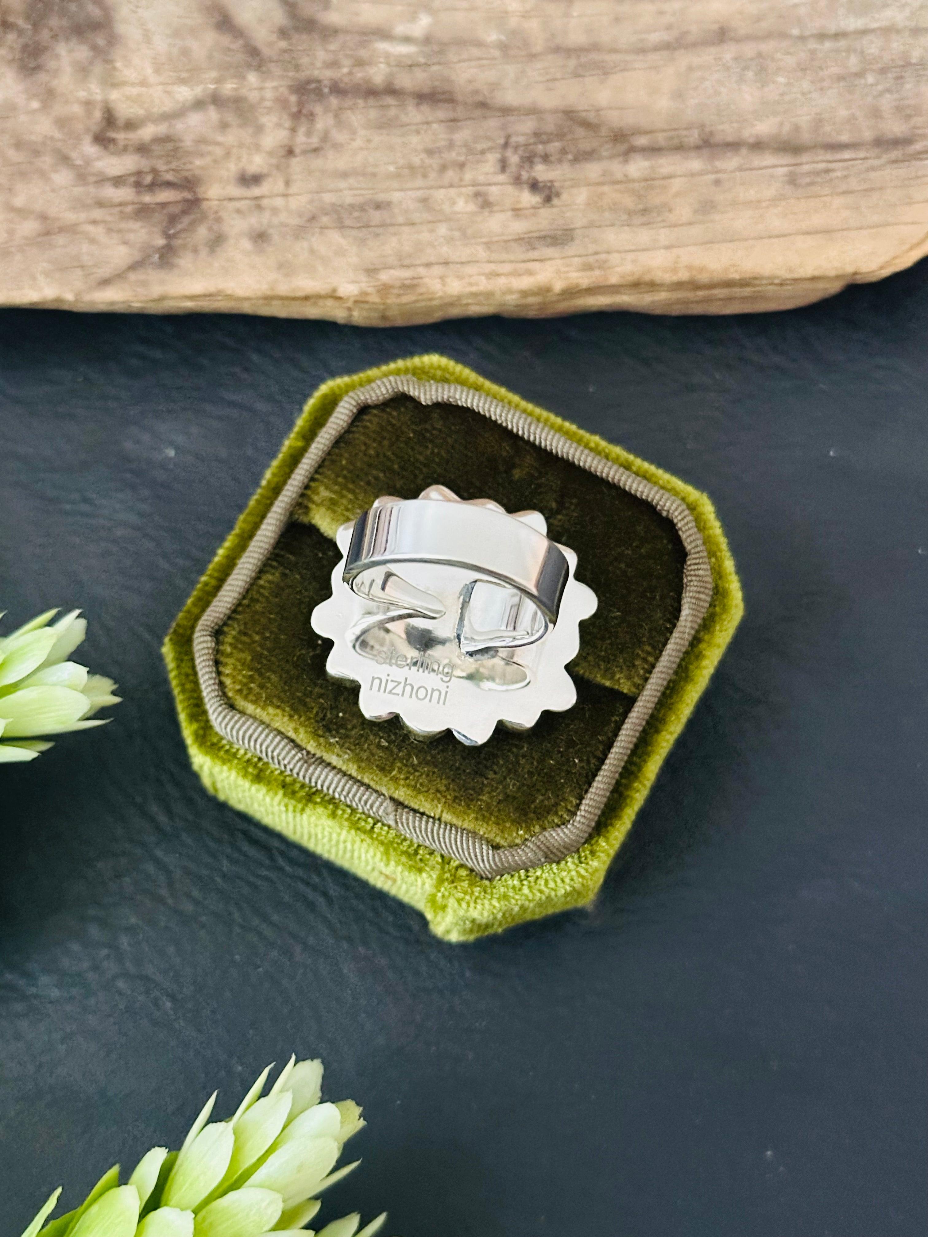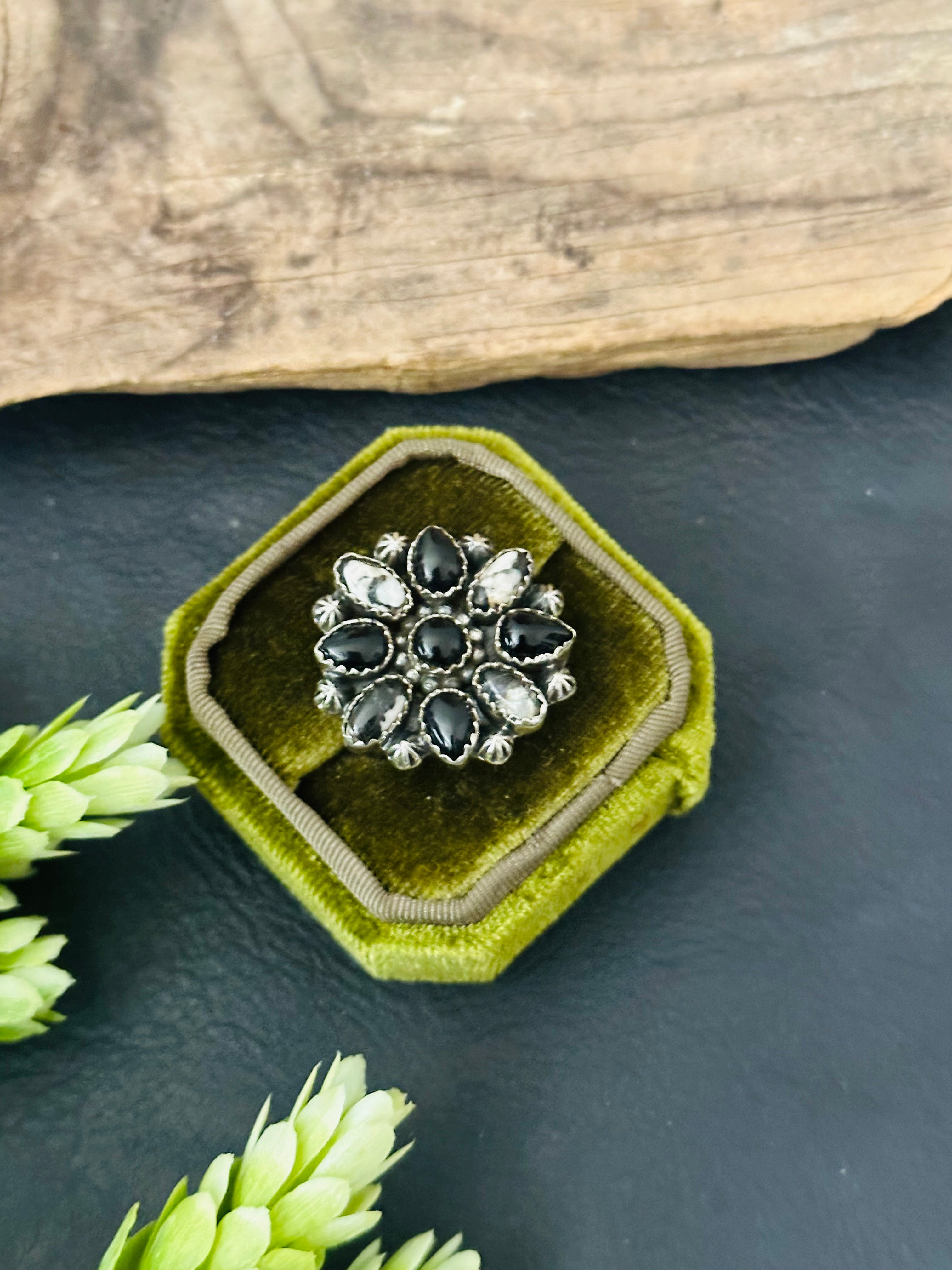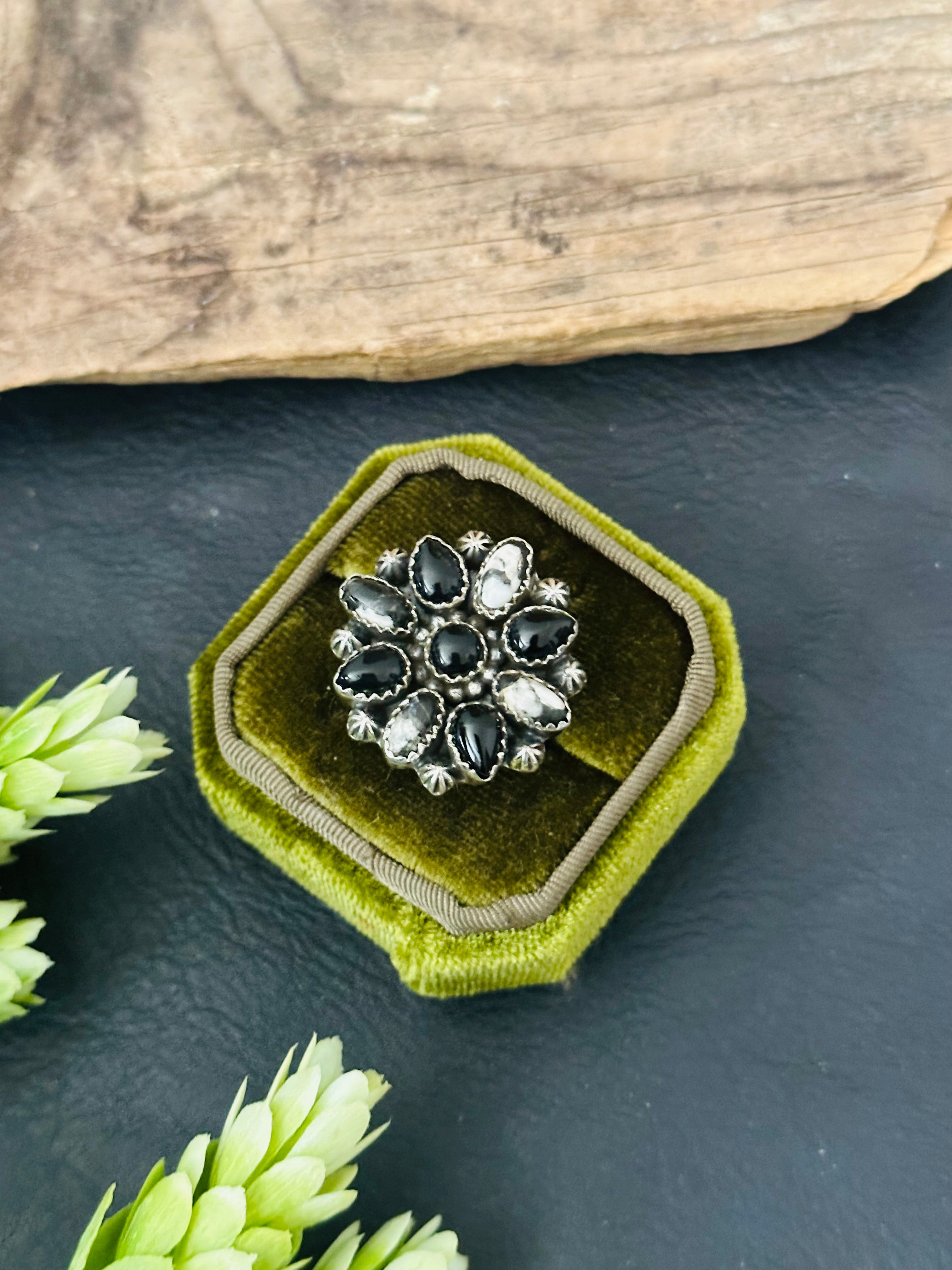 - Beautiful cluster rings. Southwest Handmade Multi Stone & Sterling Silver Cluster Adjustable Ring. It measures 1 3/4 inch round. Signed by the artist and stamped sterling silver.