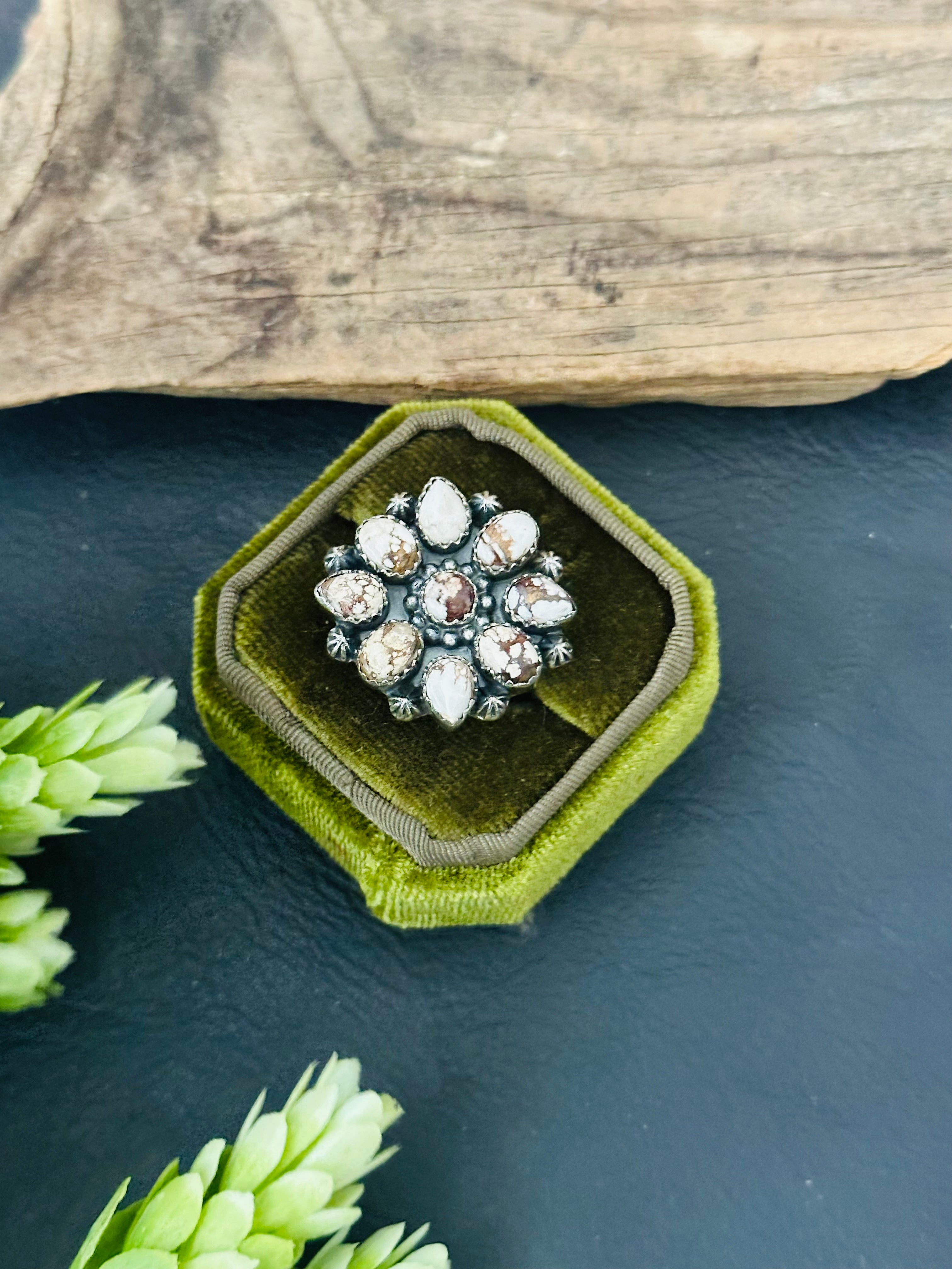 - Beautiful cluster rings. Southwest Handmade Wild Horse & Sterling Silver Cluster Adjustable Ring. It measures 1 3/4 inch round. Signed by the artist and stamped sterling silver.